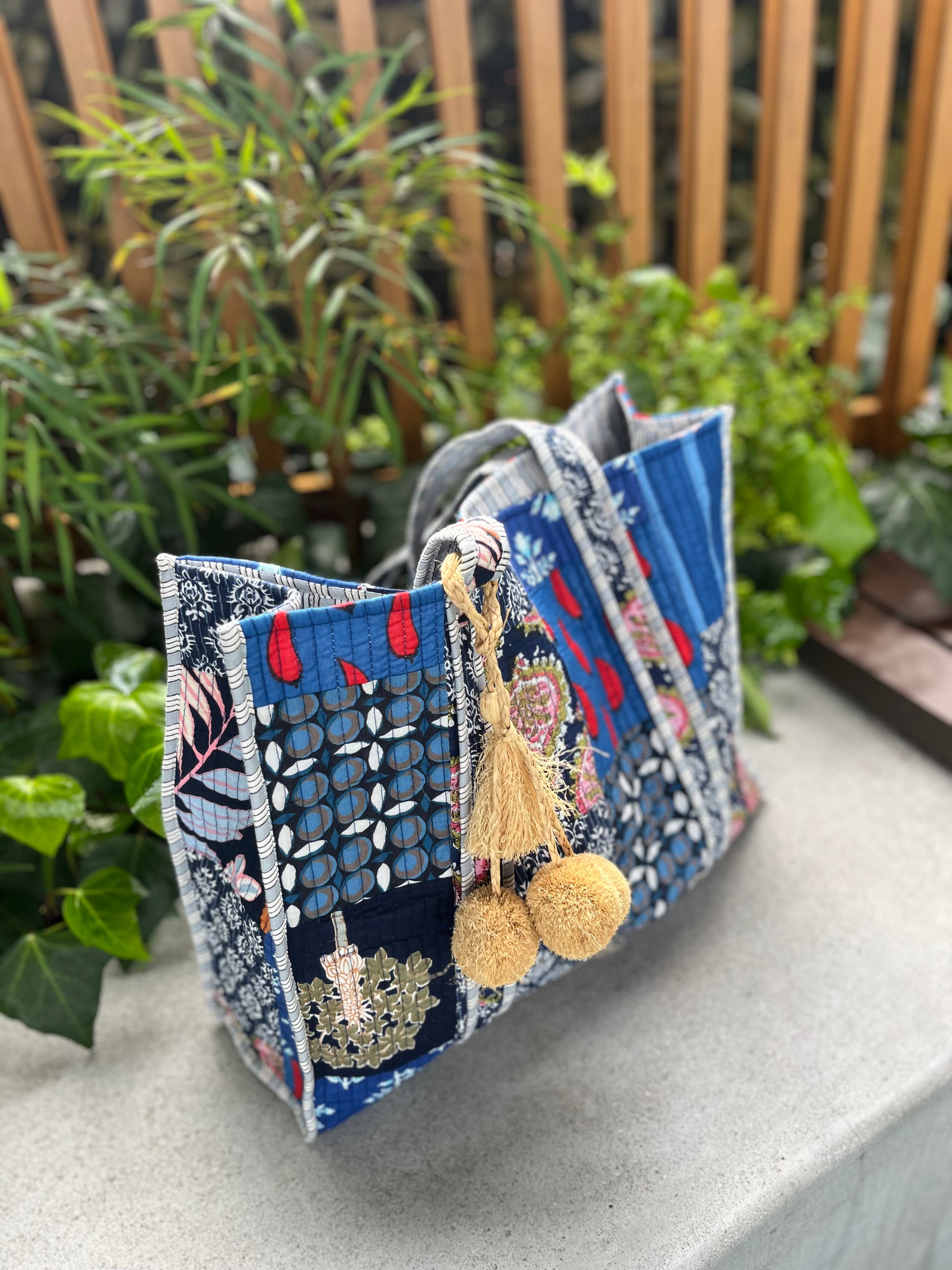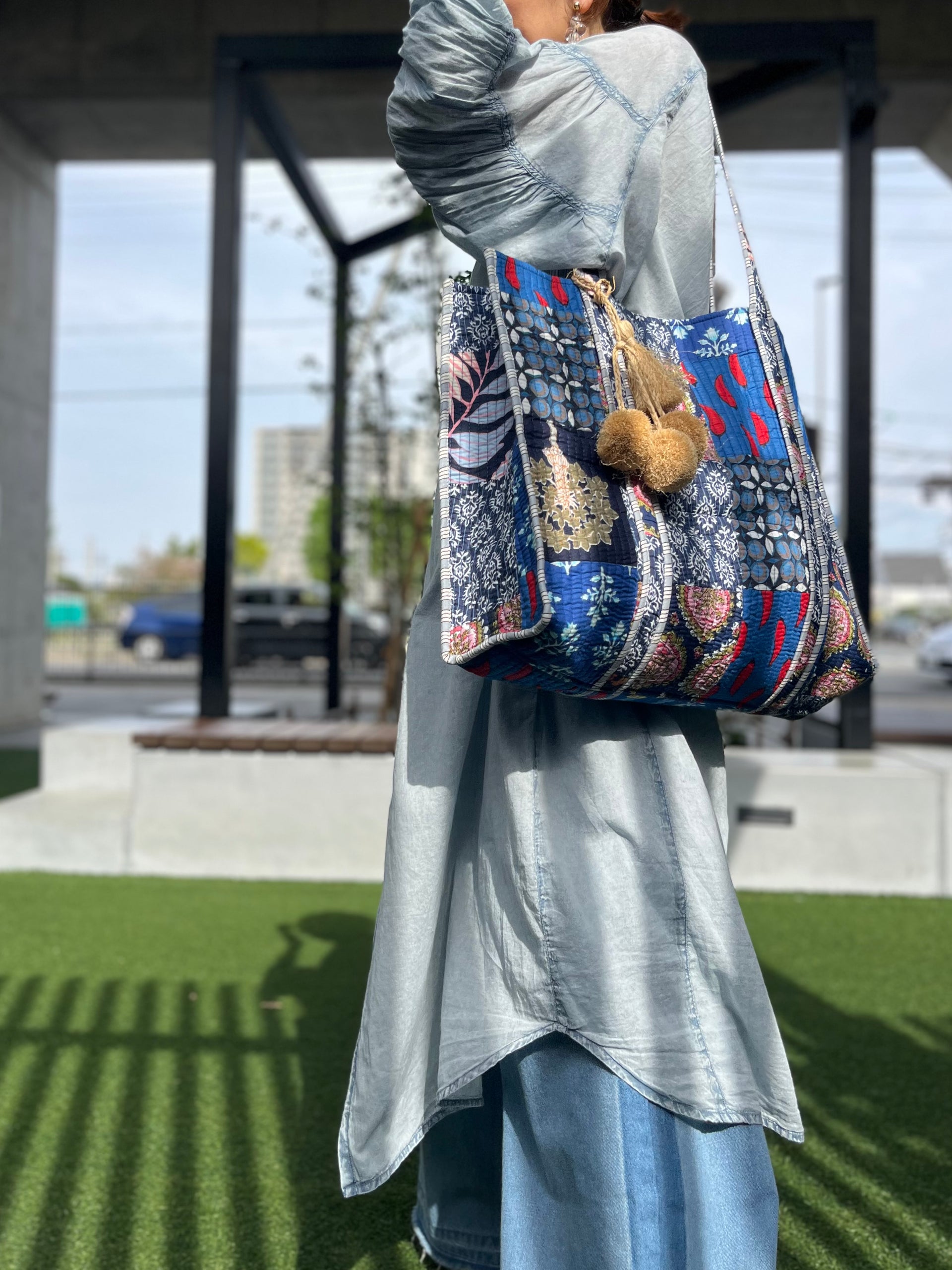 Made in INDIAのブロックプリントパッチワークBIG tote。