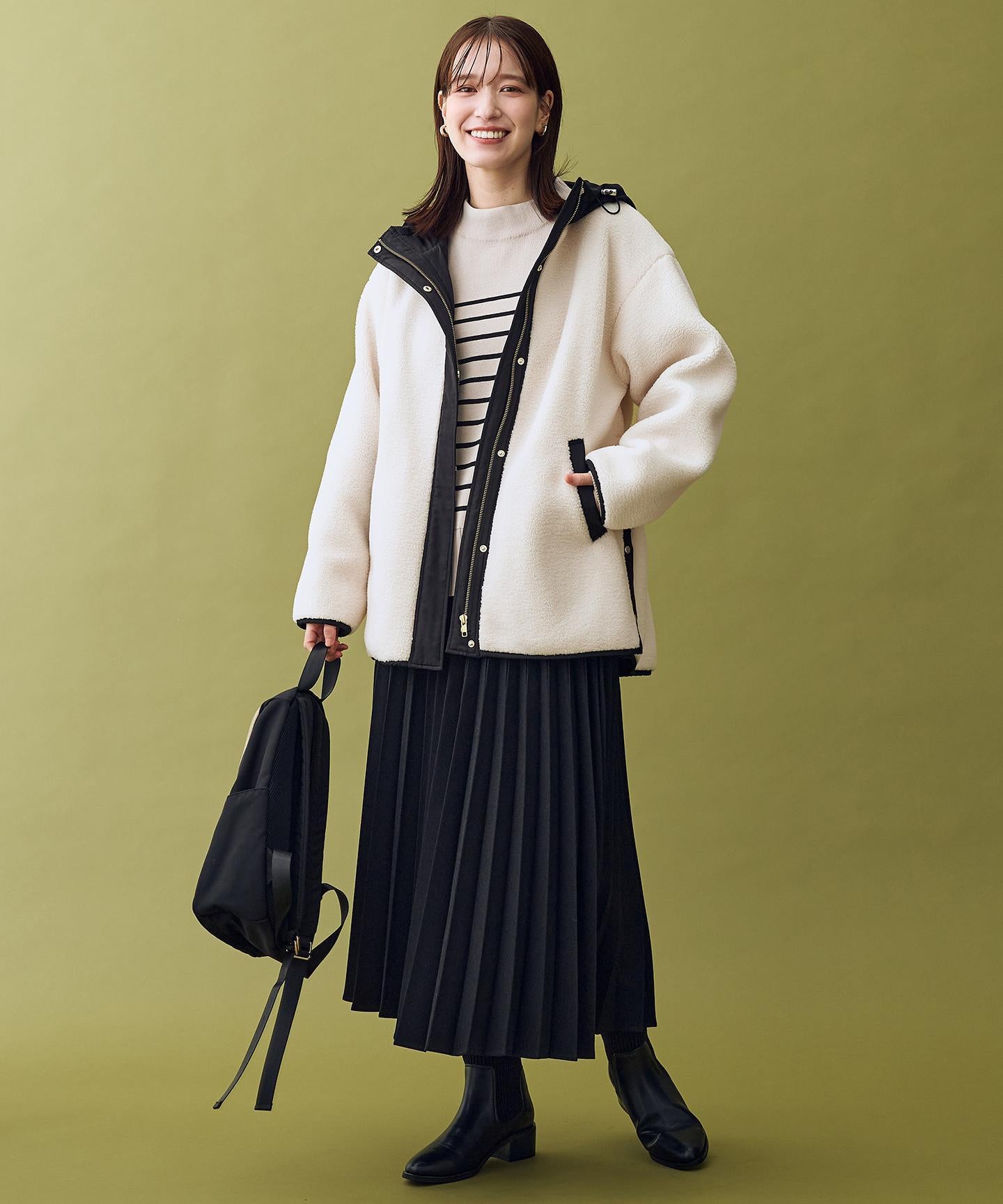 バイカラーがおしゃれな大人カジュアルボアコート