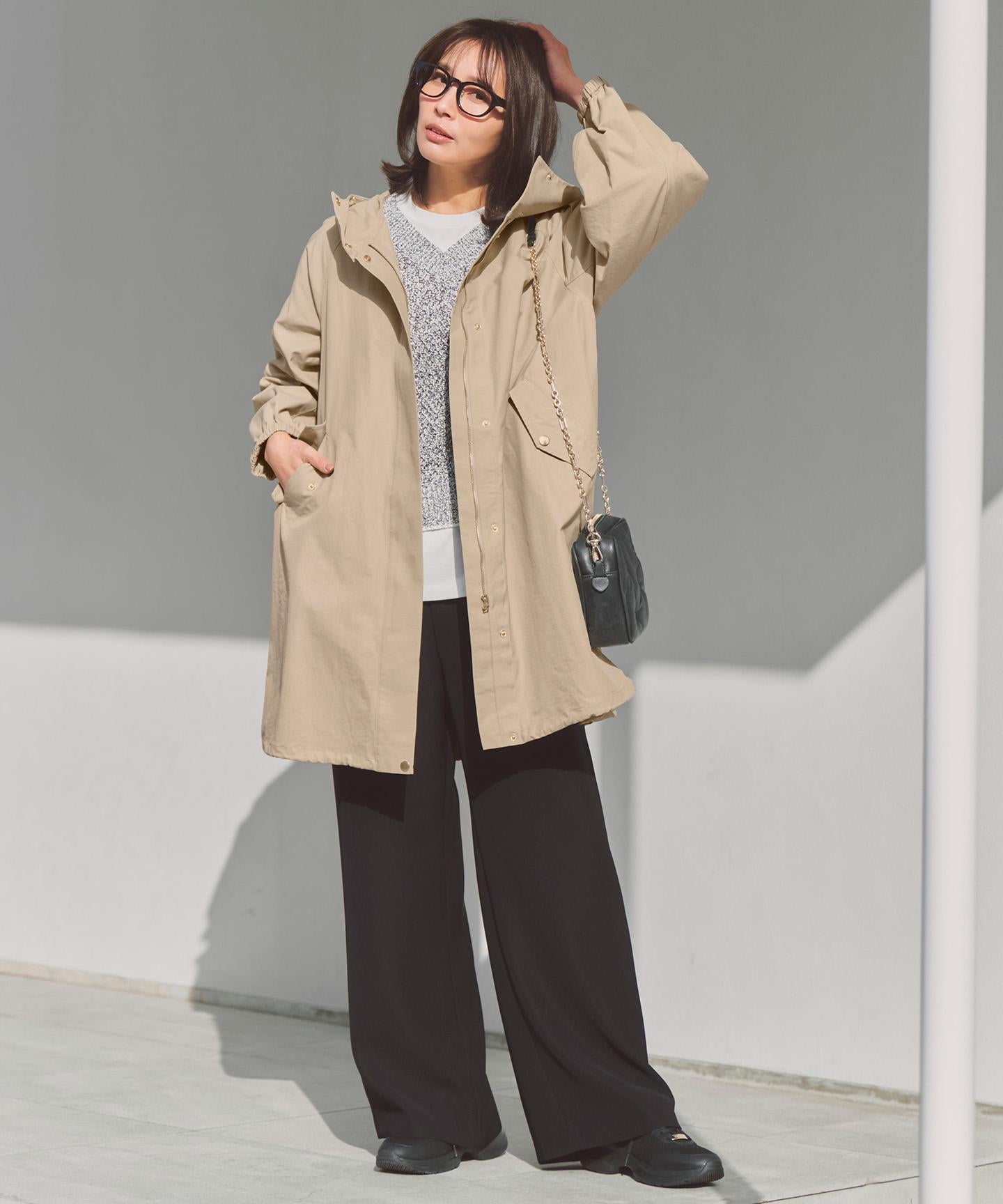ゆったりとしたサイズ感で、デイリーに羽織りやすいフーディコート