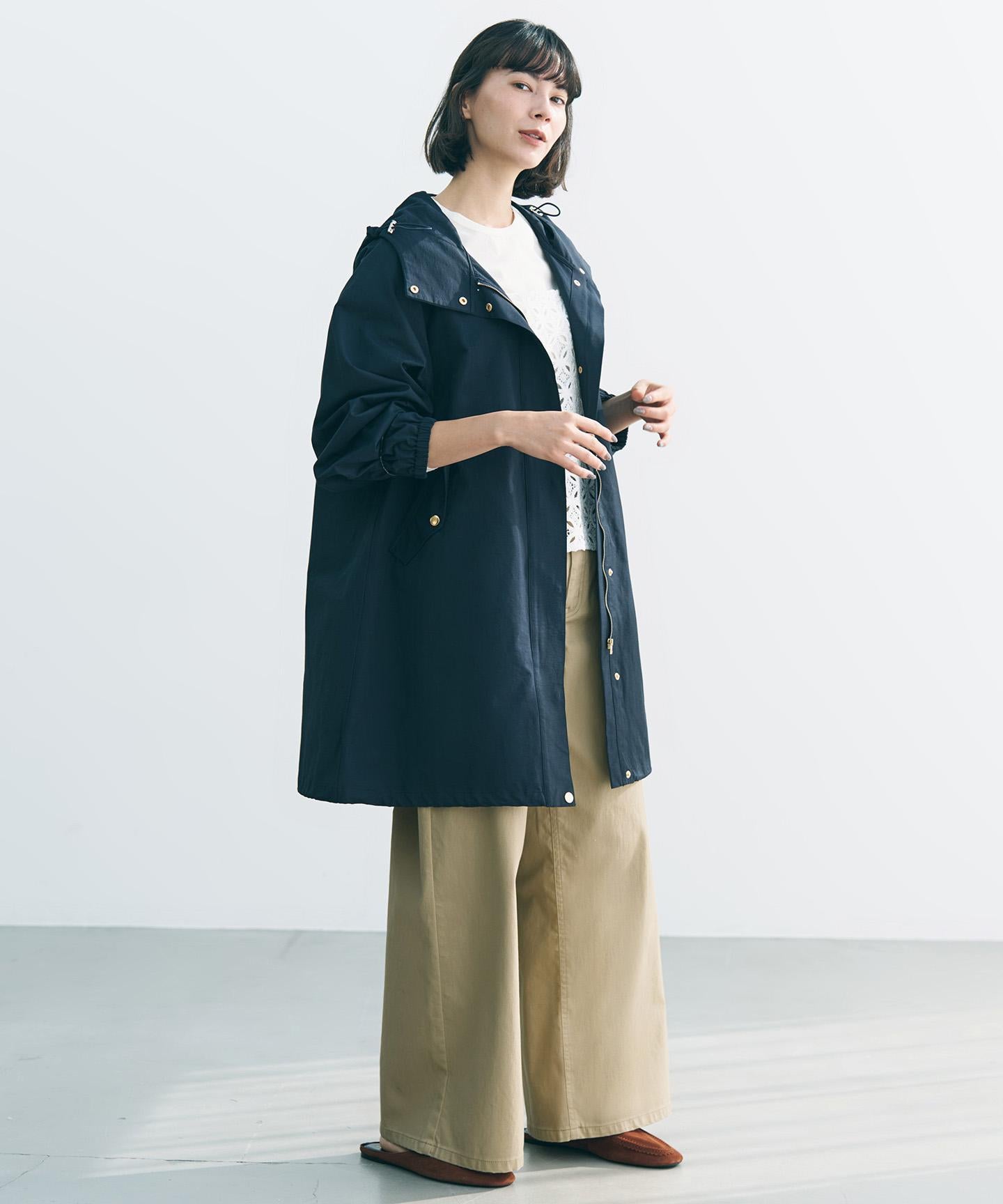 ■素材コットン×ナイロンの交織ツイル素材。程よい光沢感にワッシャー加工でナチュラル感をプラスし、こなれた雰囲気に仕上げました。軽く、肌離れの良い風合いも魅力です。