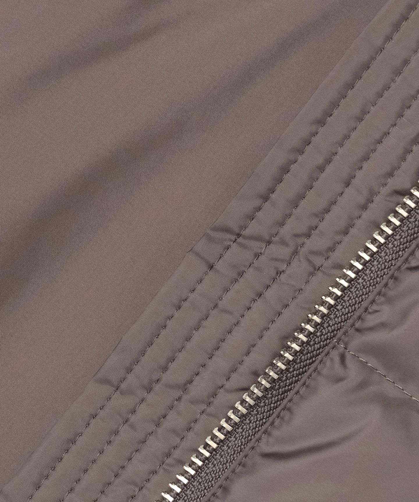 ■素材・003・005・030カラー(無地タフタ):高密度に織ったタフタ素材で、滑らかな表面感と光沢感が特長です。軽量で糸の膨らみによってソフトな肌触りになっています。・575・504カラー(ツイード調):グレー×白の糸で織ったヘリンボーン組織の生地をベースに、さらに奥行き感を表現したツイード調の柄をプリント。仕上げで表面を微起毛することでウールのような暖かさ、上品で立体的なやわらかい表情はありながらも、ウールでは難しい軽さのある素材に仕上げています。