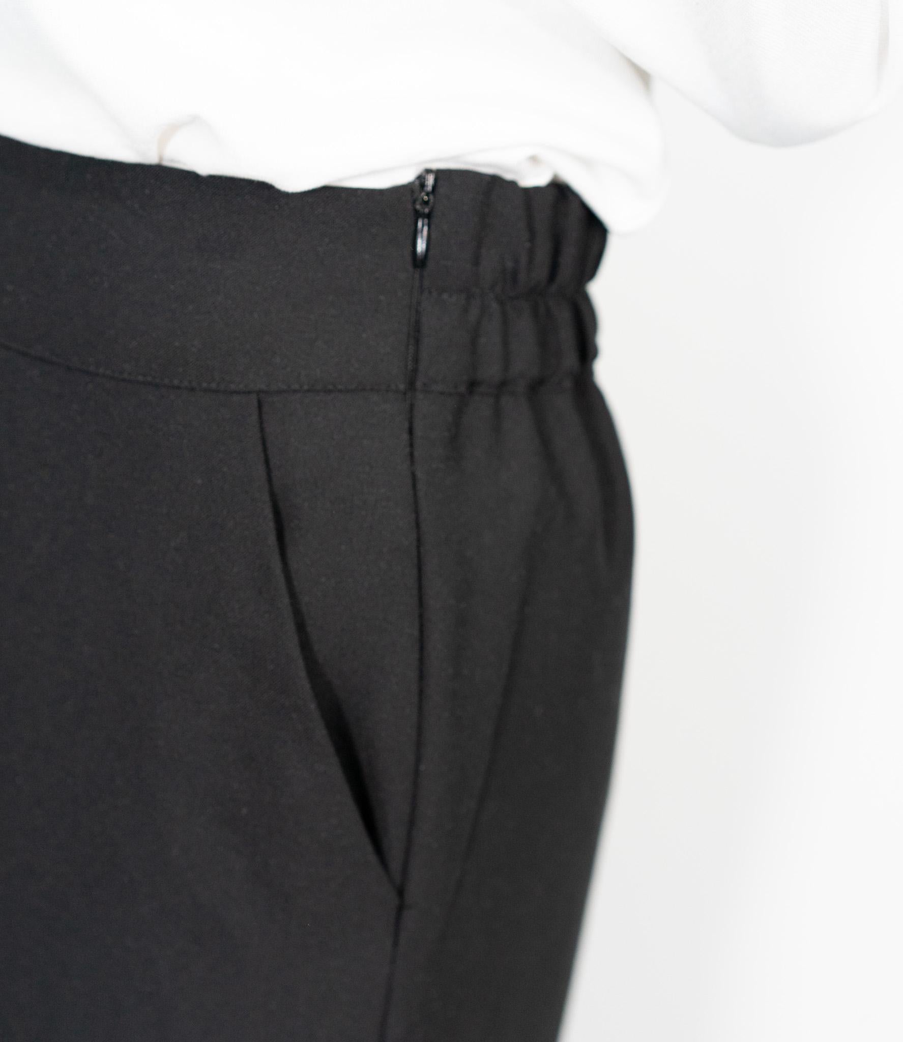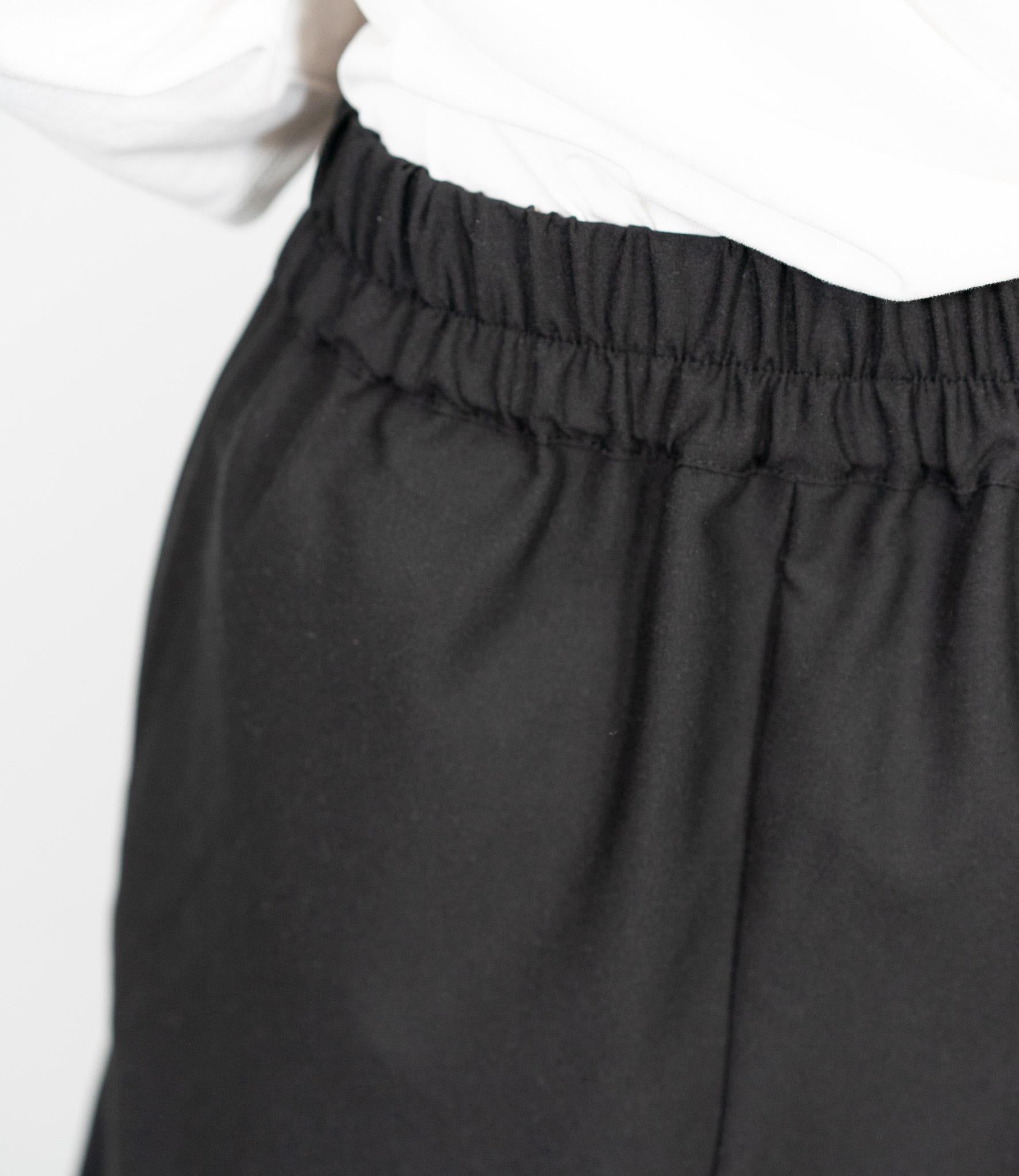 ウエストの後ろ部分は幅広のゴム仕様になっておりフロントの端正なルックスを維持しながら、一日中ストレスフリーに過ごせる着用感を実現しました。