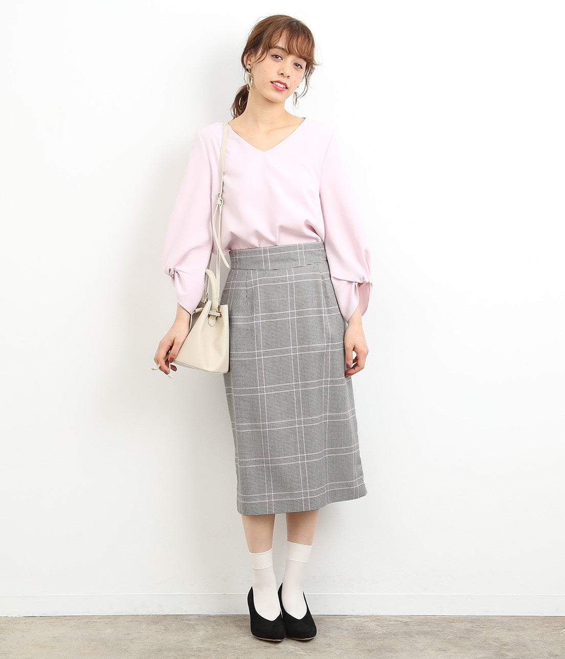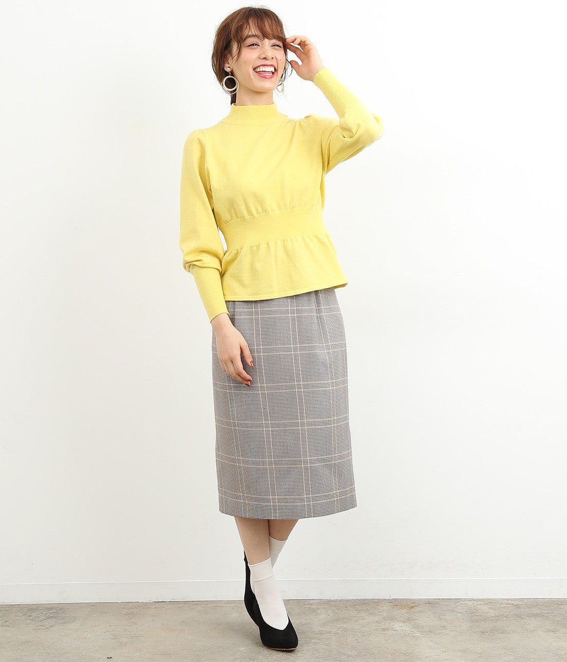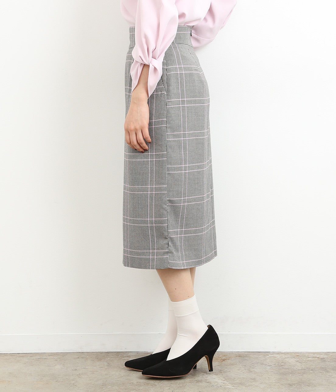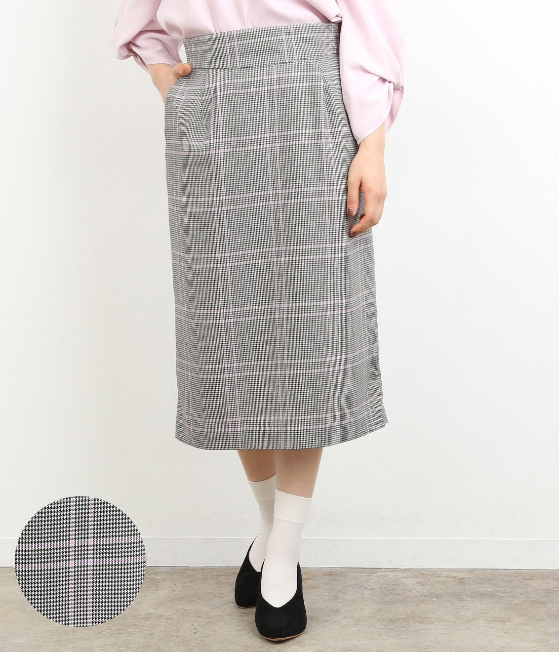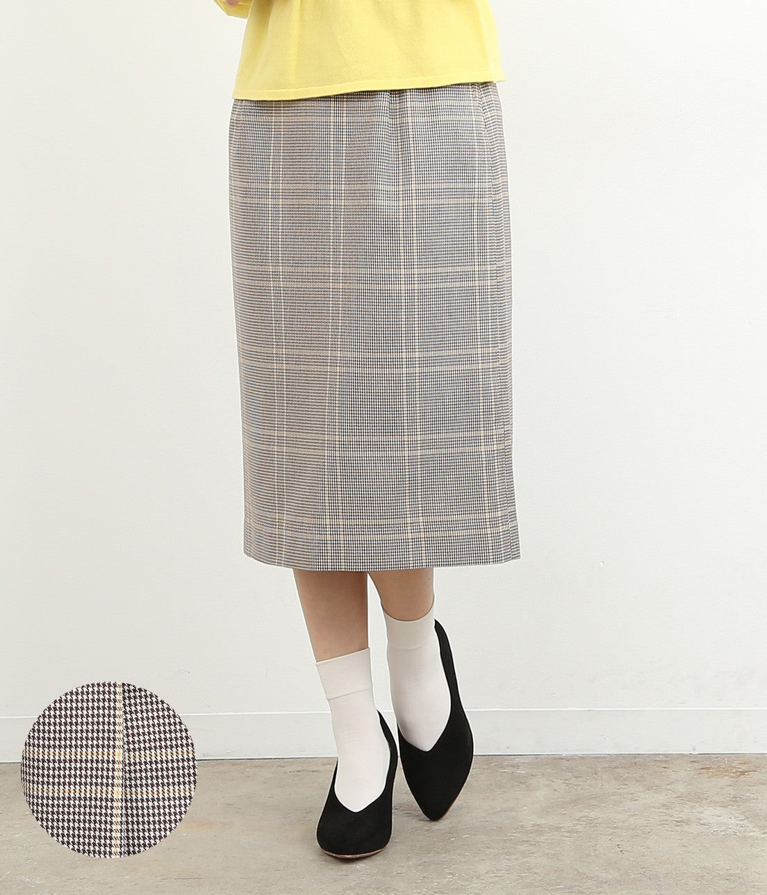 オリジナルカラーのチェック柄がポイントのスカートは、やや長めの丈感で今年らしい雰囲気に。 タイトになりすぎないAラインのシルエットで、トップスインでもアウトでもバランス良くきまります。 明るめのカラートップスとも相性抜群。