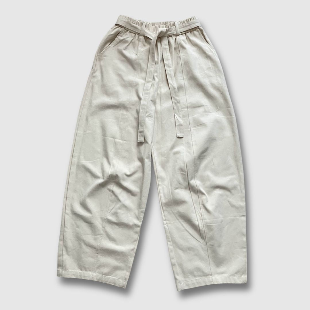 コットン素材のナチュラルな雰囲気が魅力なカーブシルエットパンツ。
