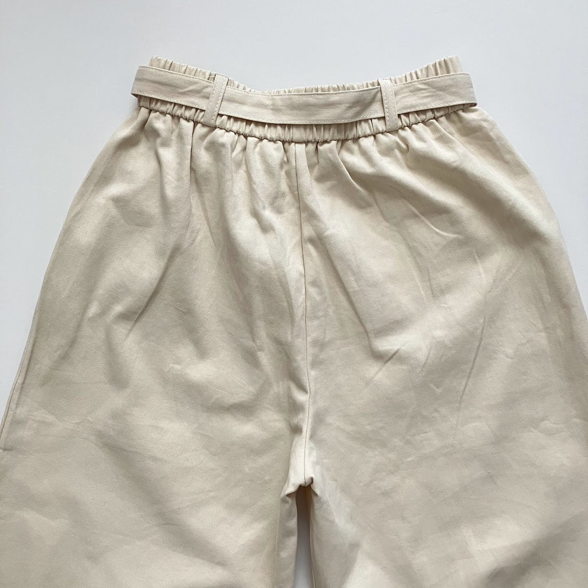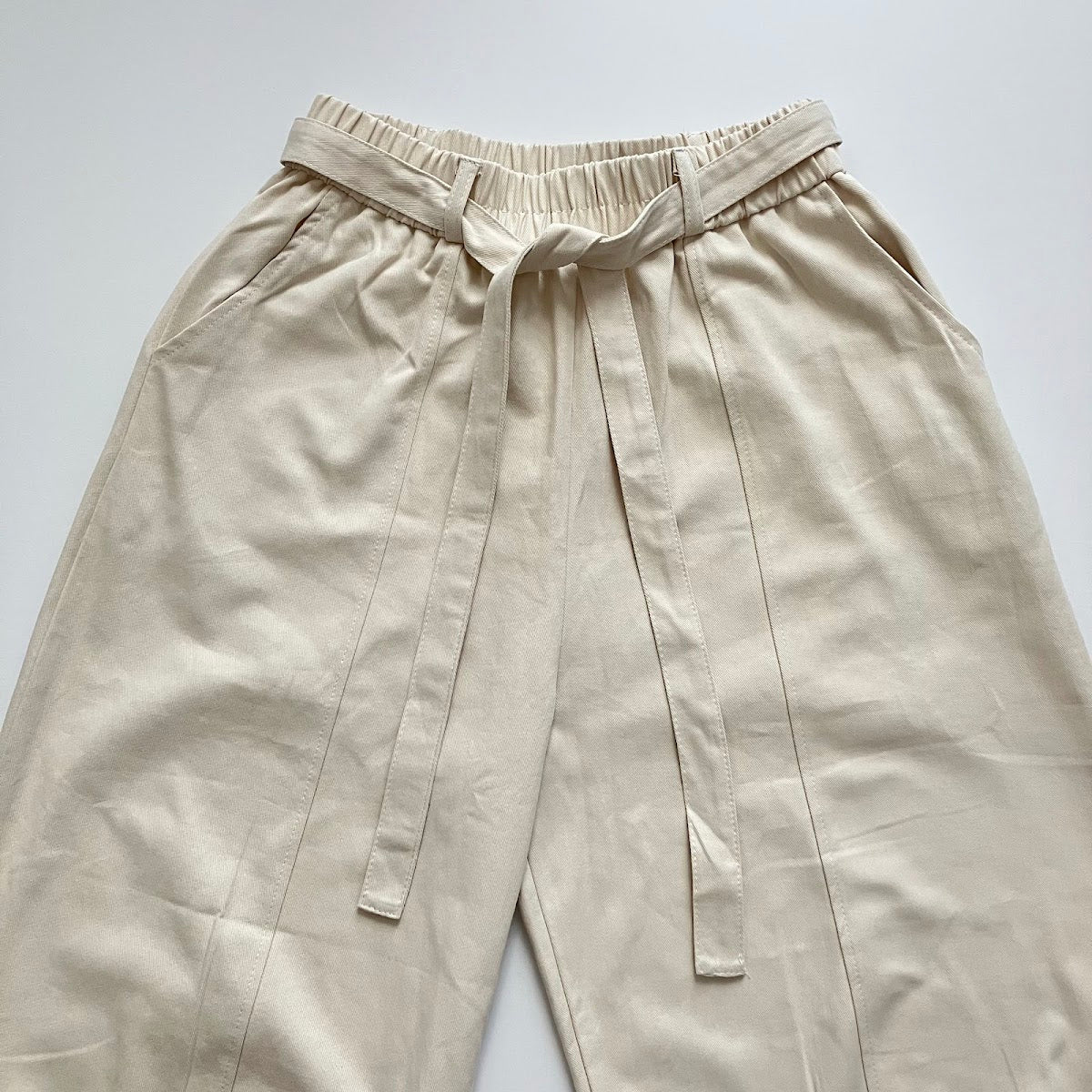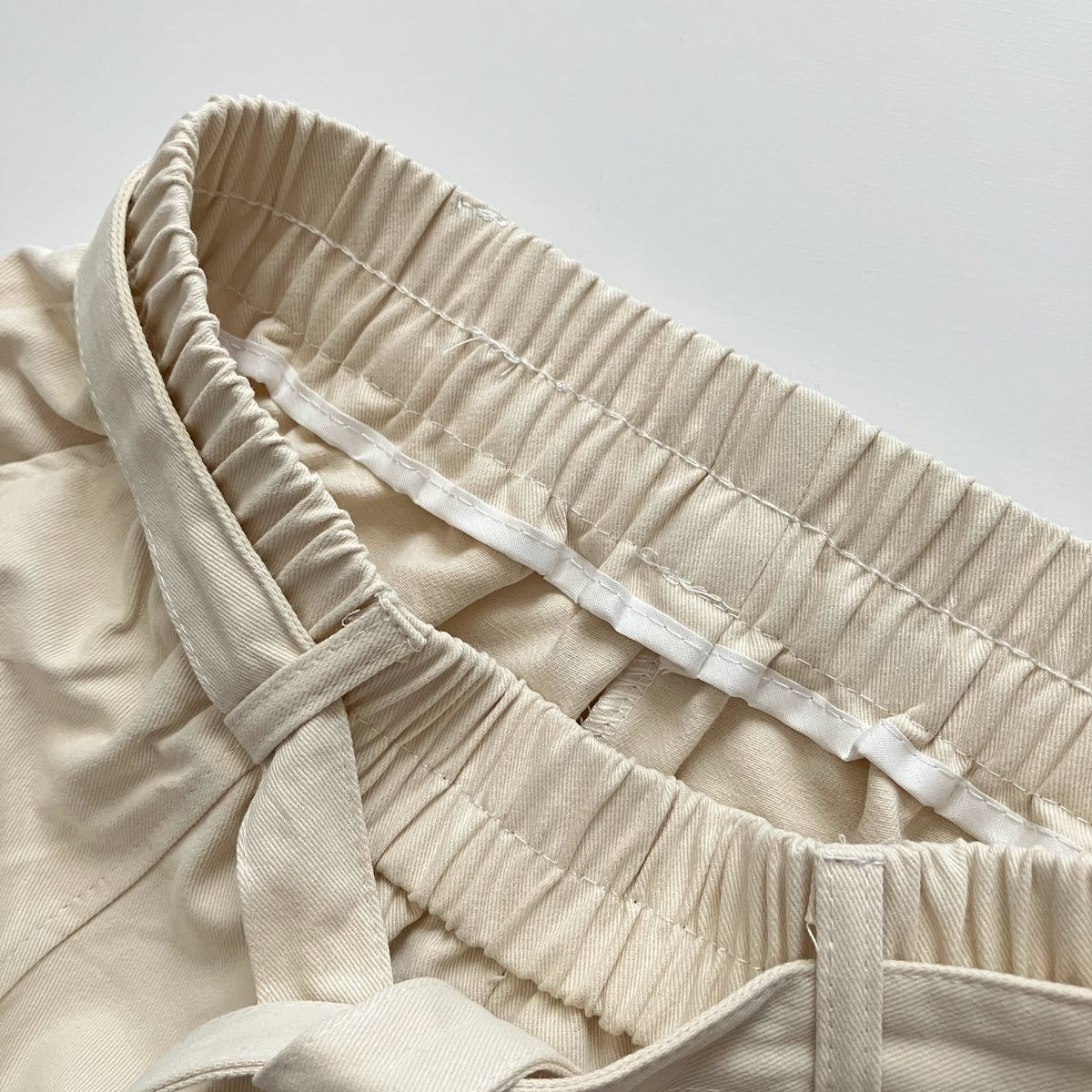 ウエストはゴム仕様で楽ちん。ベルトデザインがアクセントになり、ラフになりすぎずコーデを引き締めてくれます。