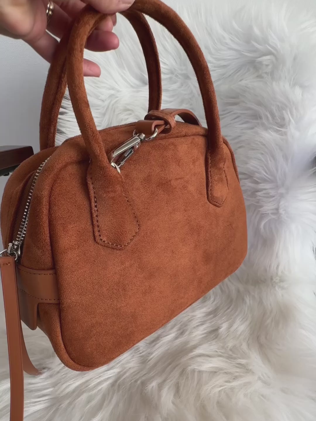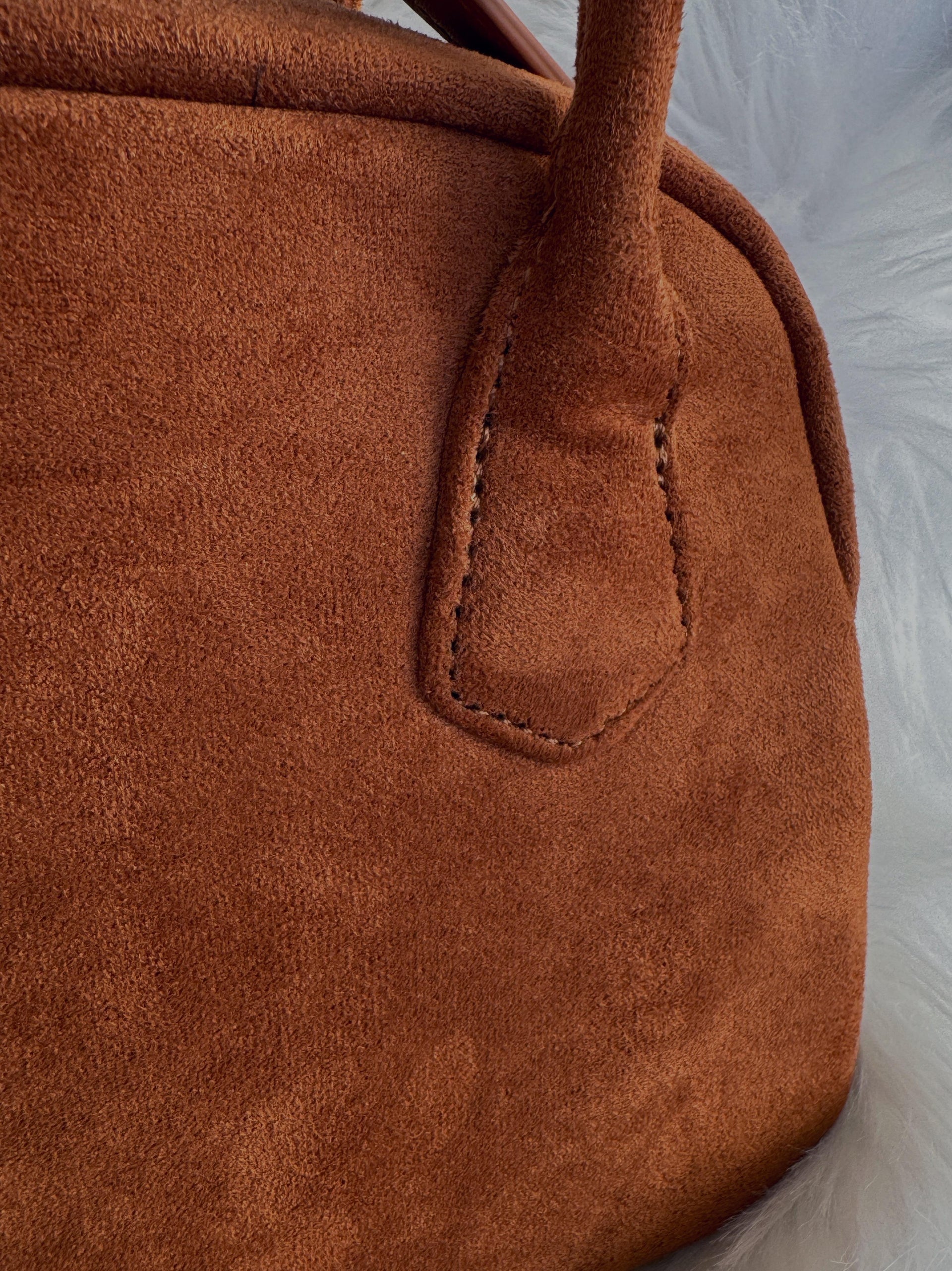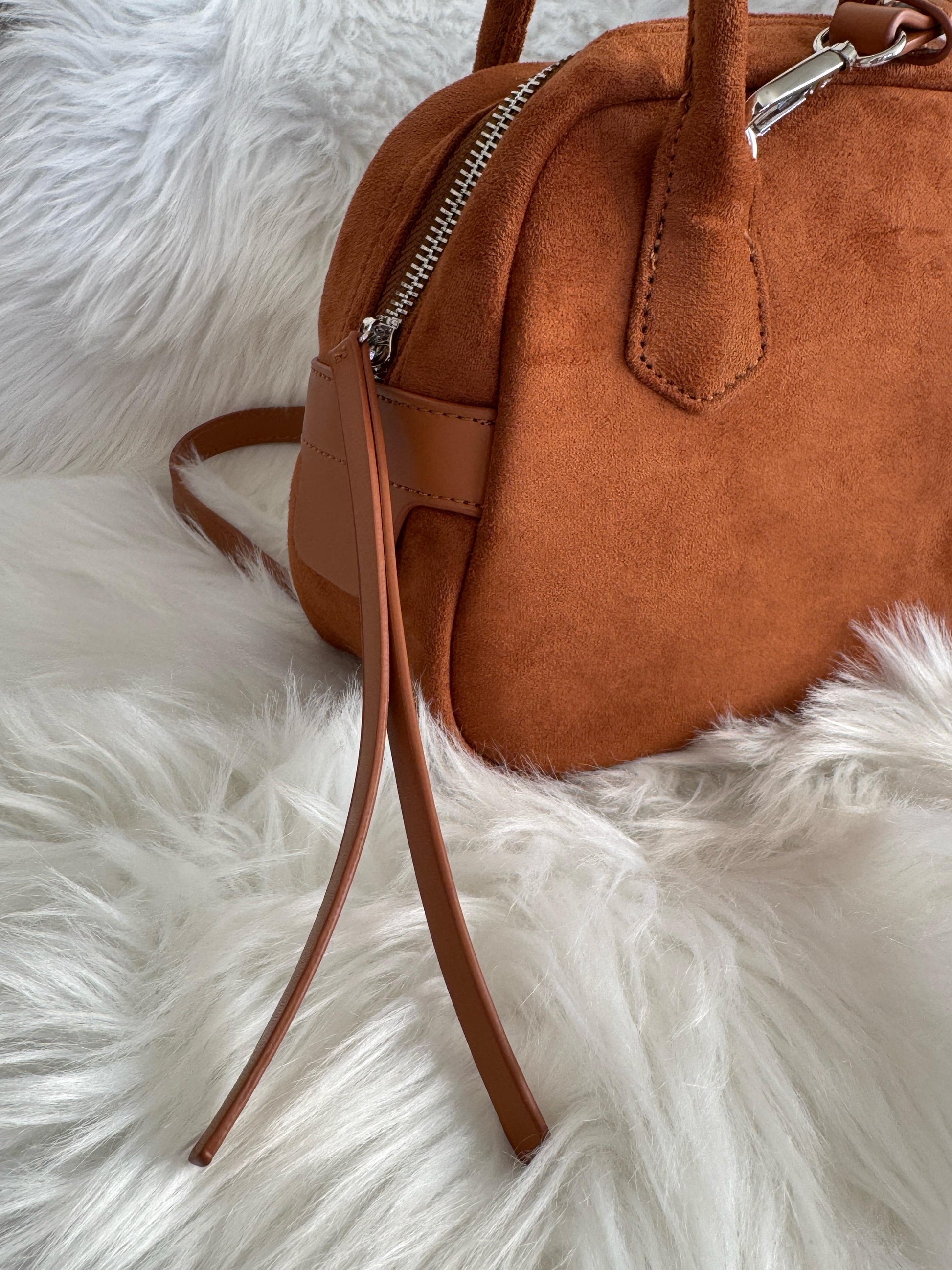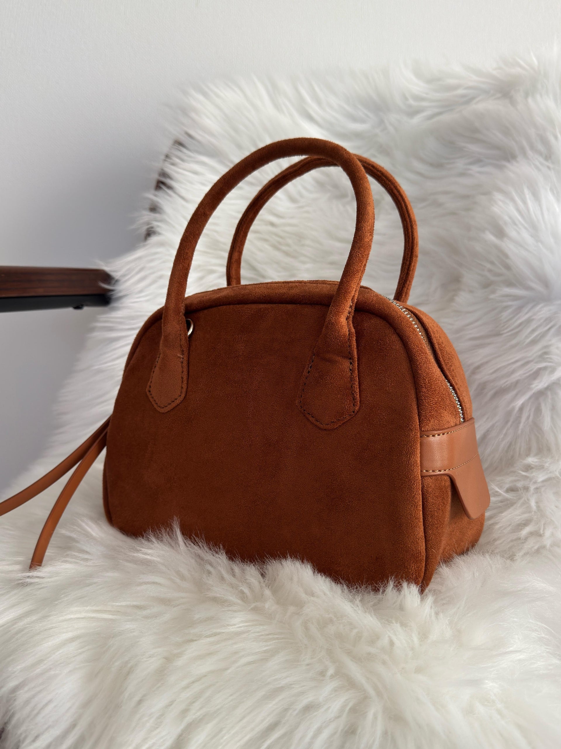 ころんとした丸みのあるフォルムが愛らしい、ブラウニーカラーのミニバッグ♡