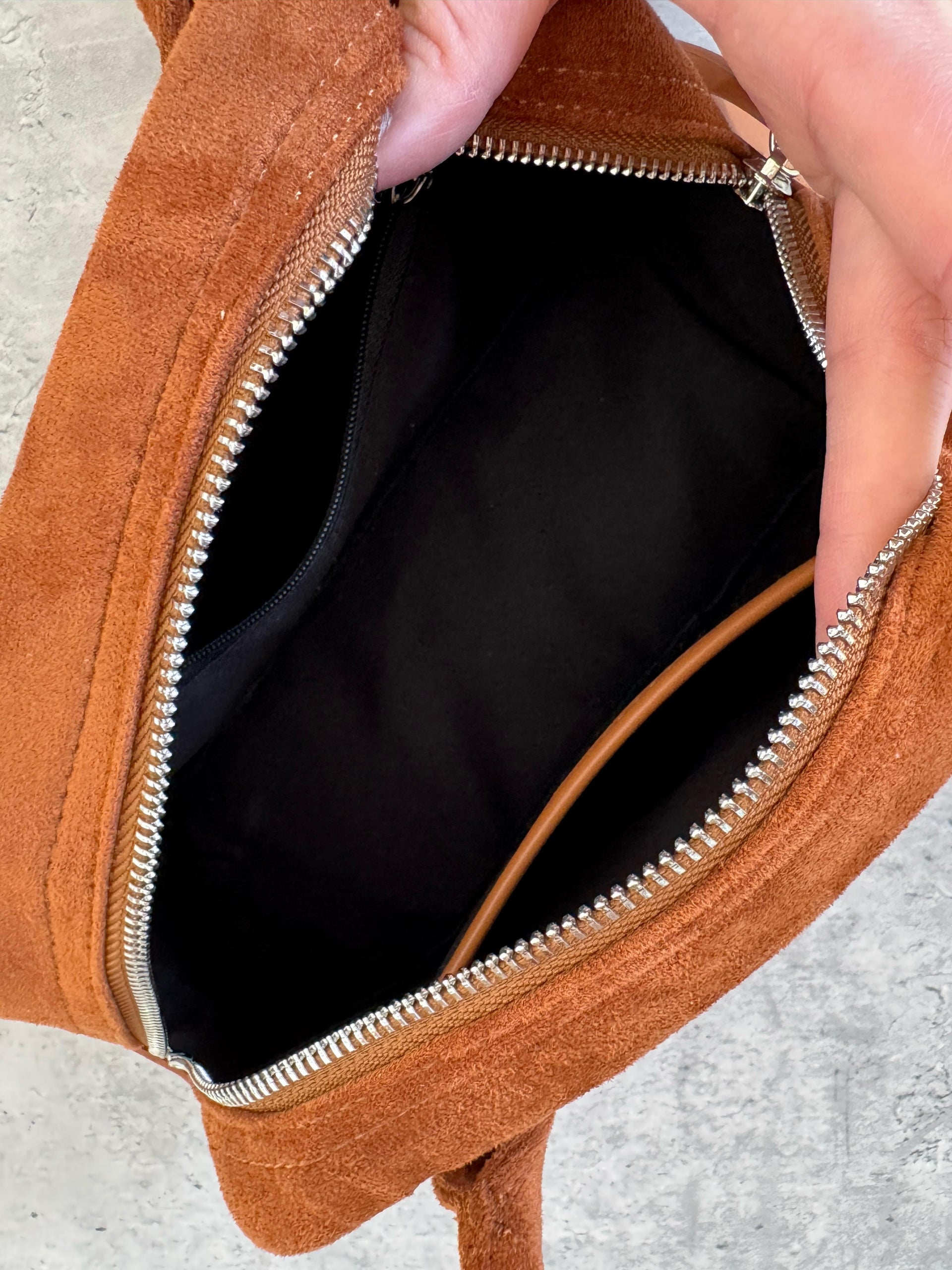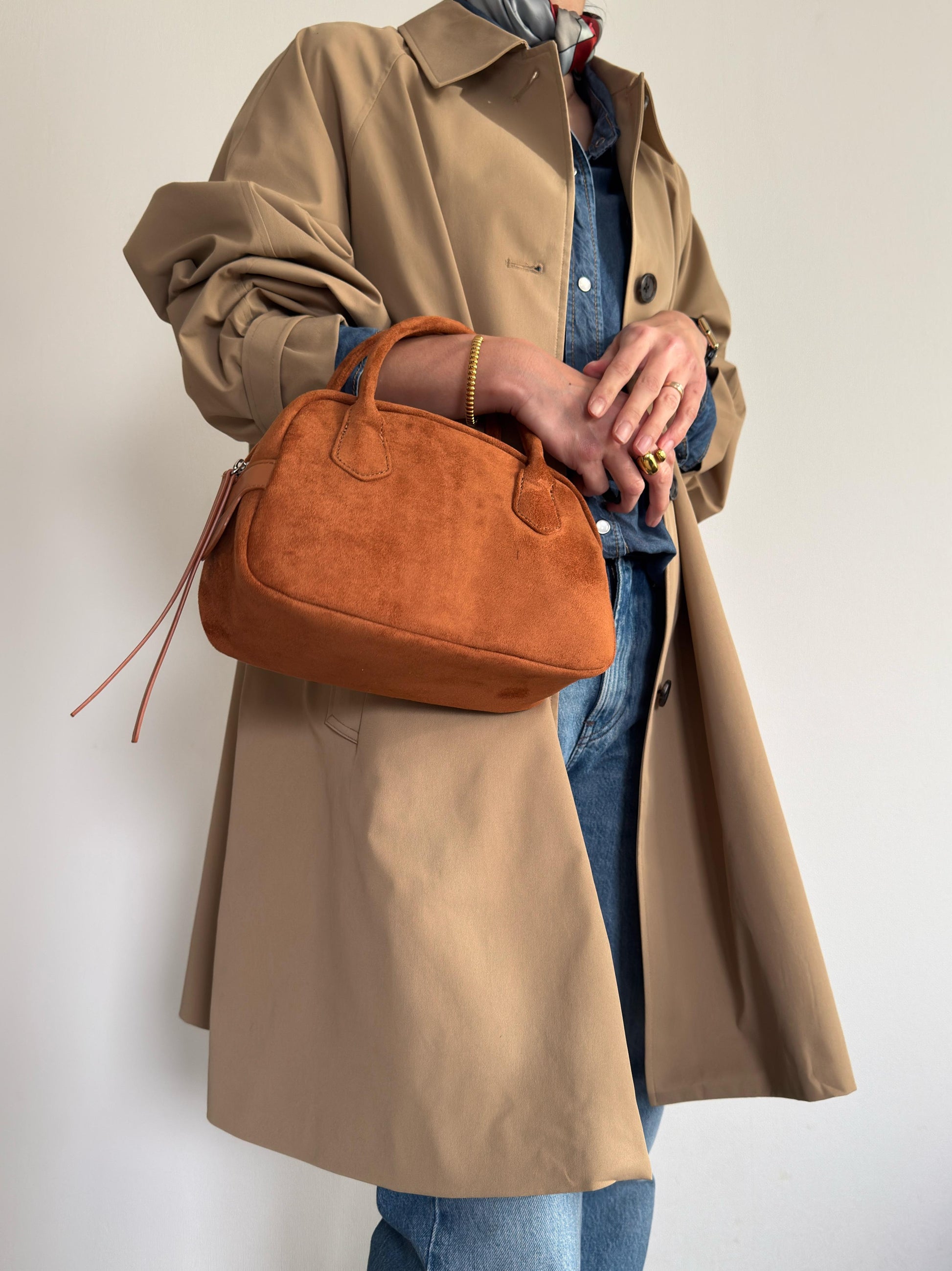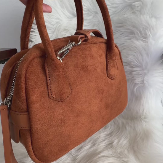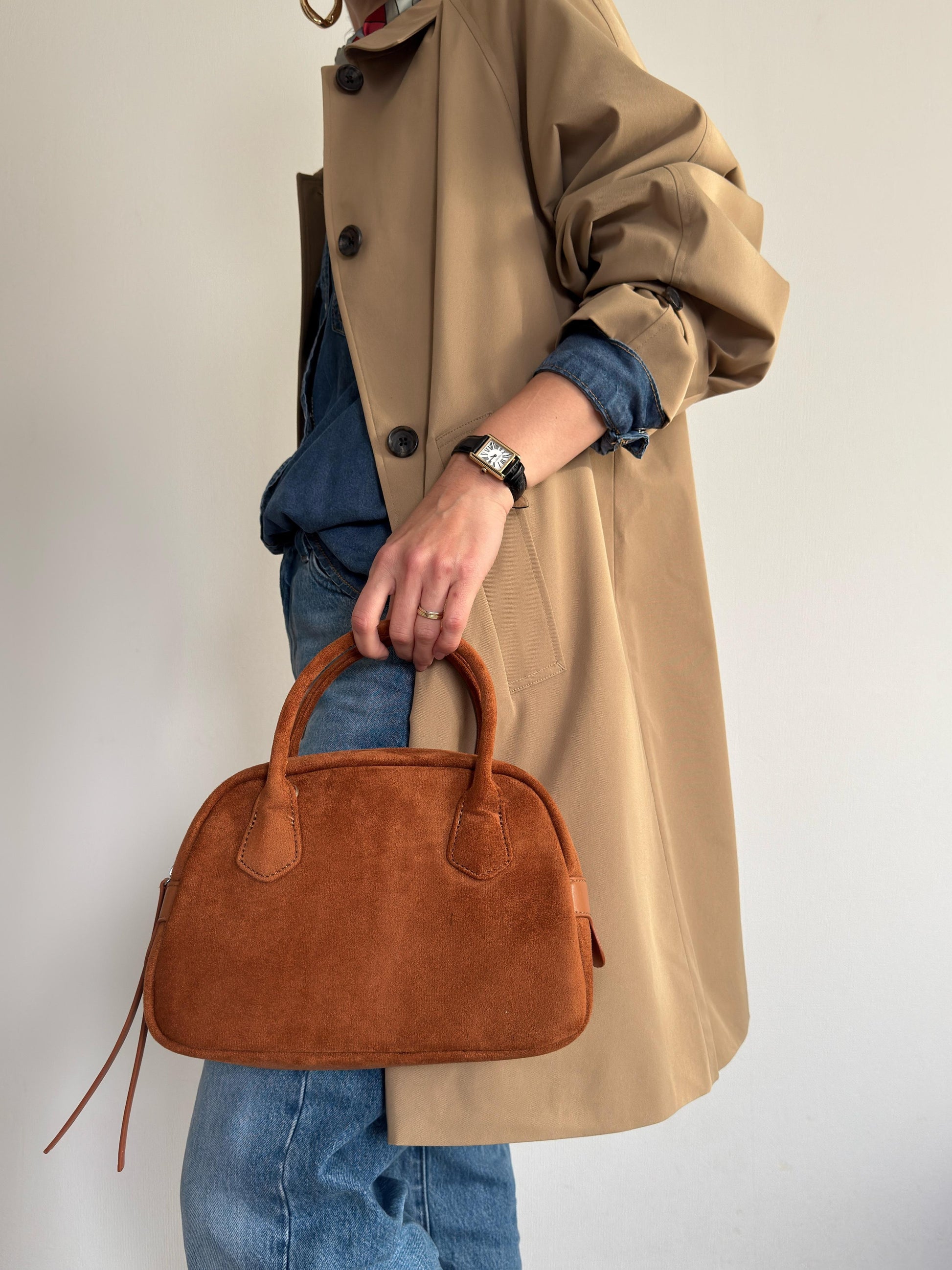 ころんとした丸みのあるフォルムが愛らしい、ブラウニーカラーのミニバッグ♡
