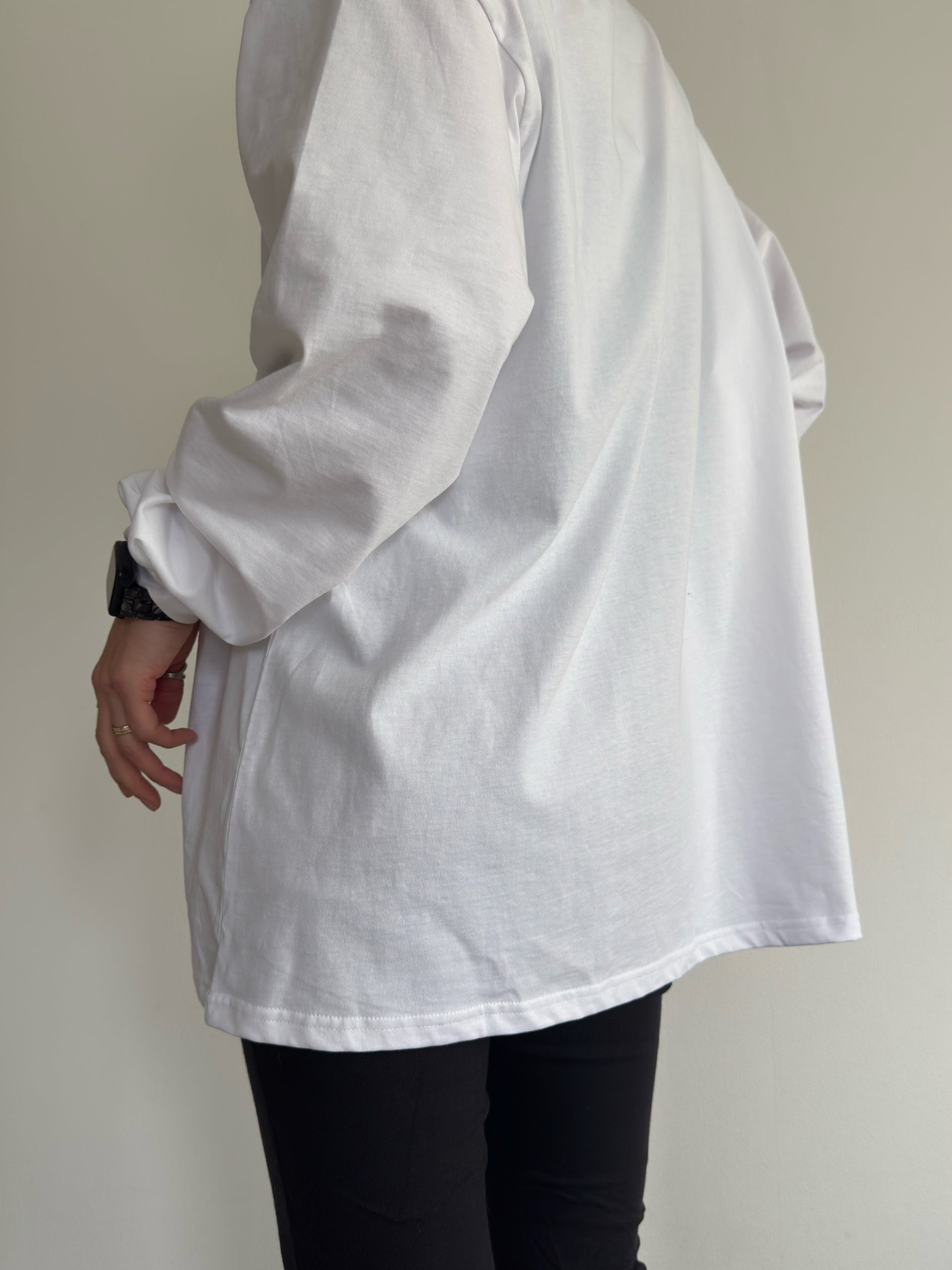 ゆったりとしたシルエットで体型カバーをしてくれるリラックス感のある着心地のロングTシャツ。