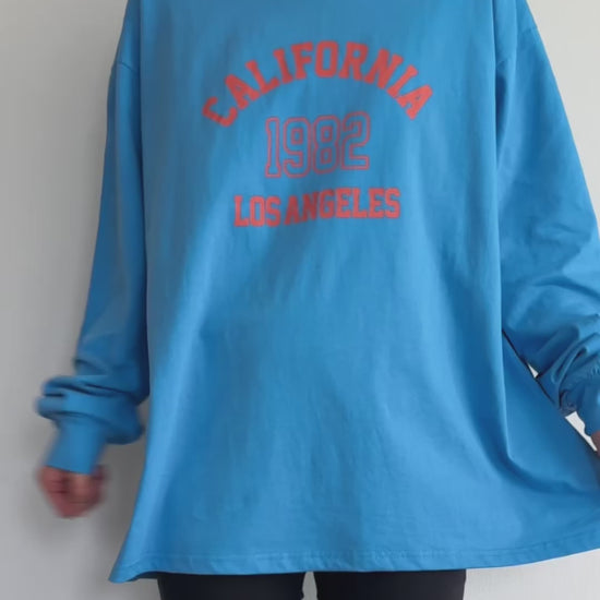 ヴィンテージ風のロゴが映える、こなれ感のあるロングTシャツ