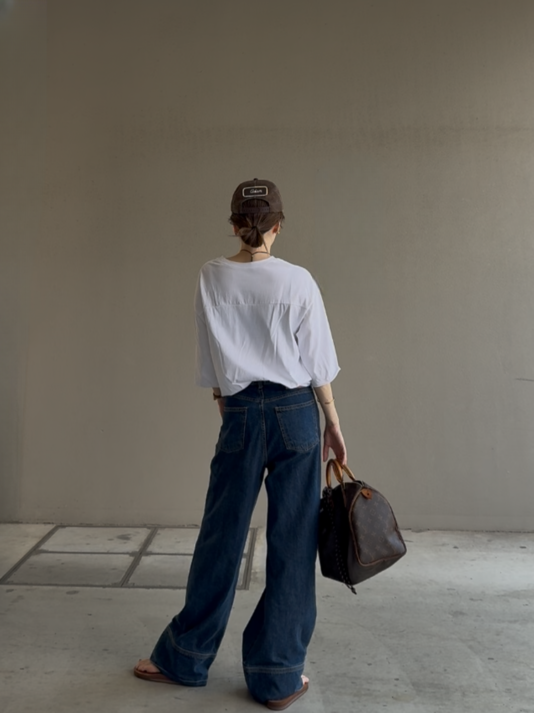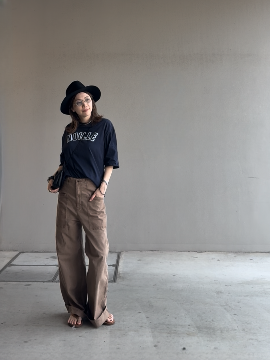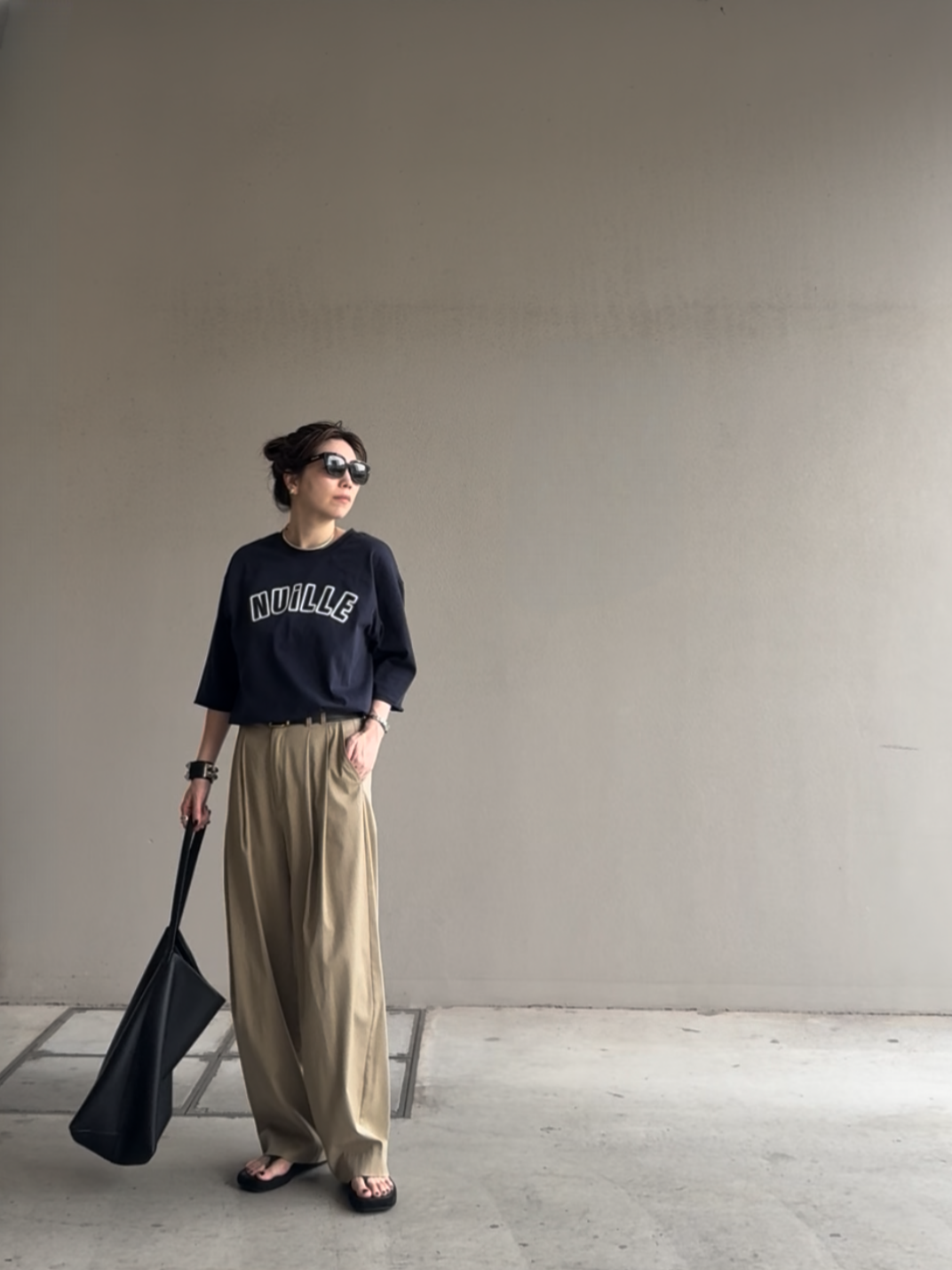 またメンズライクになりすぎないよう、インでもアウトでもバランスが取れるような身幅と着丈に。