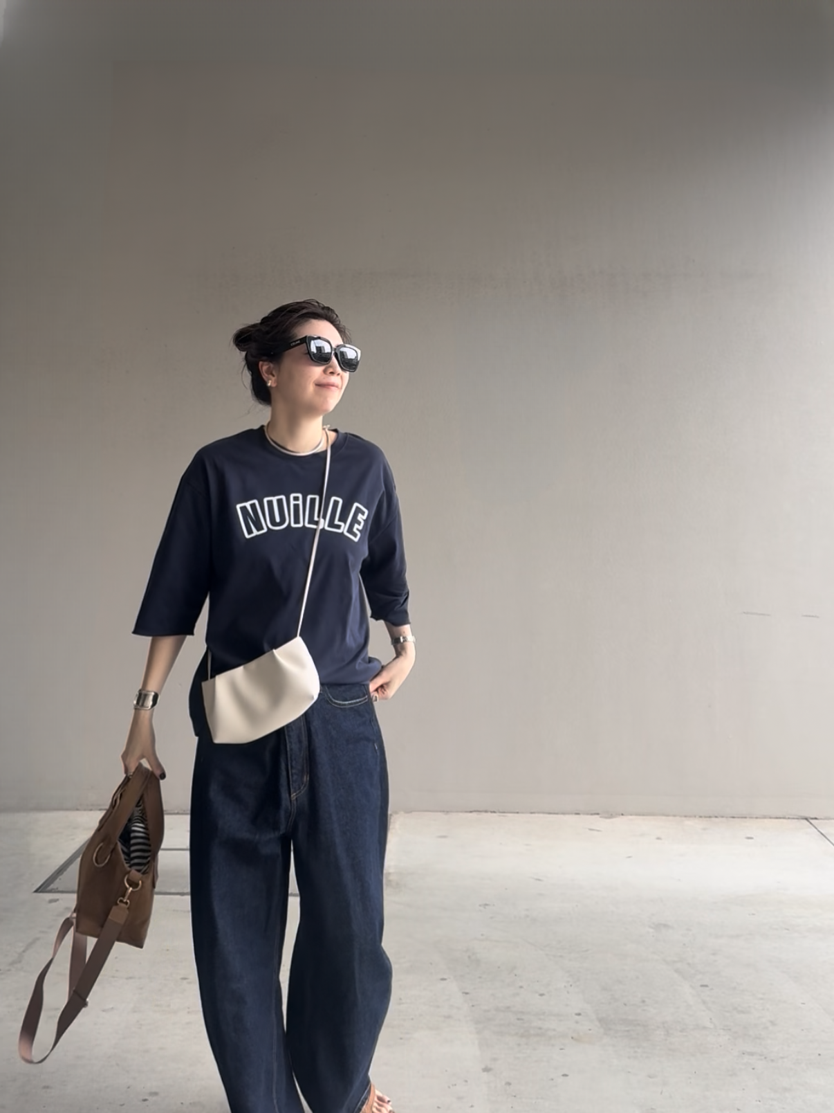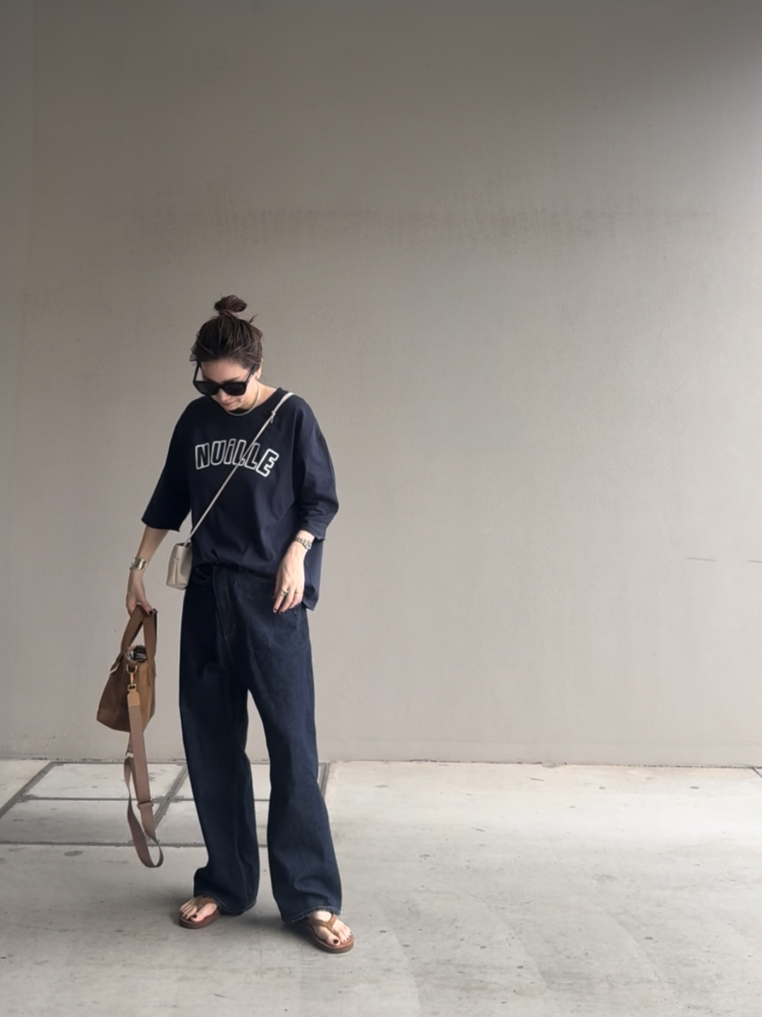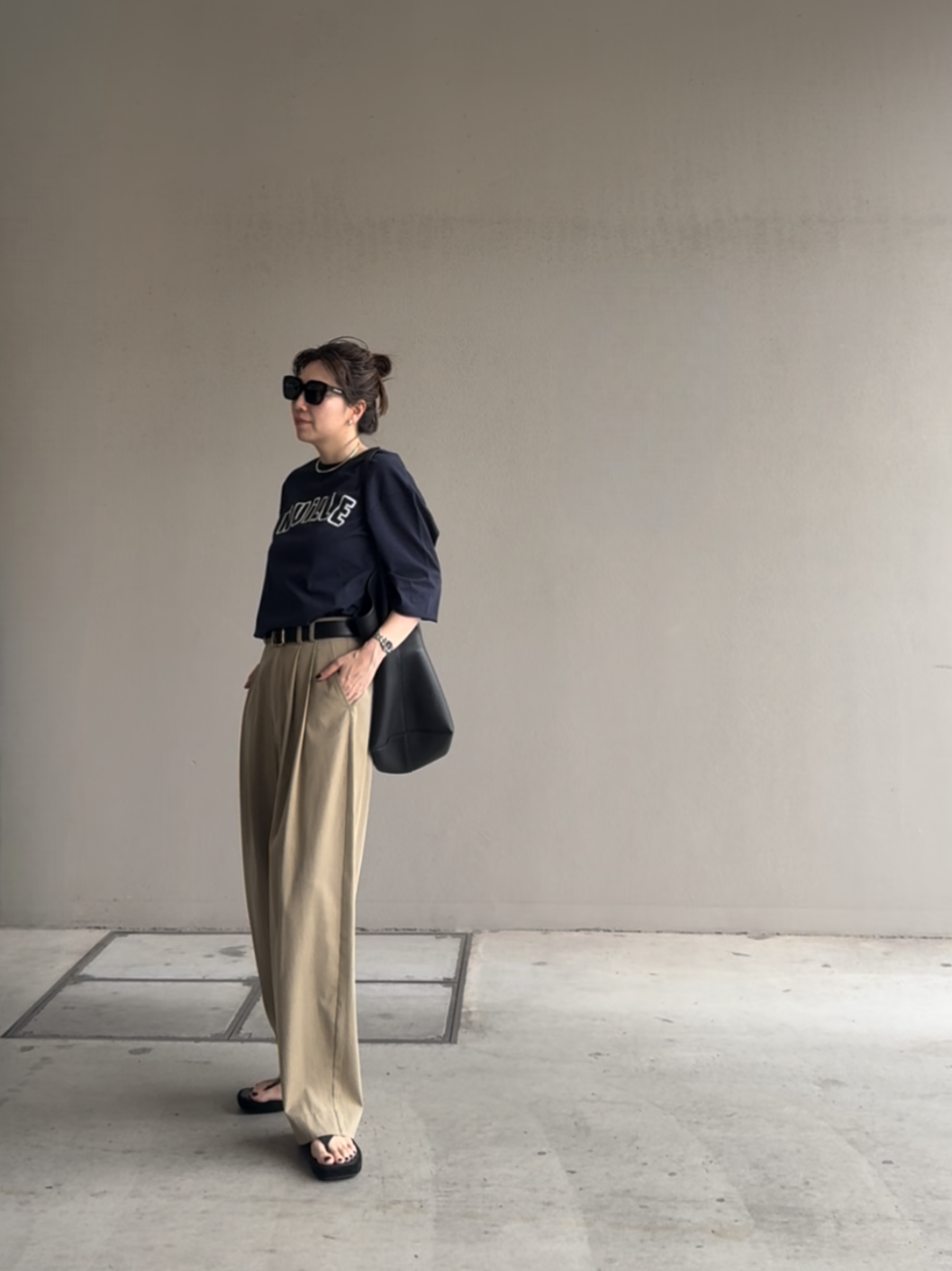 ネイビーにはオフホワイトのロゴで爽やかに。