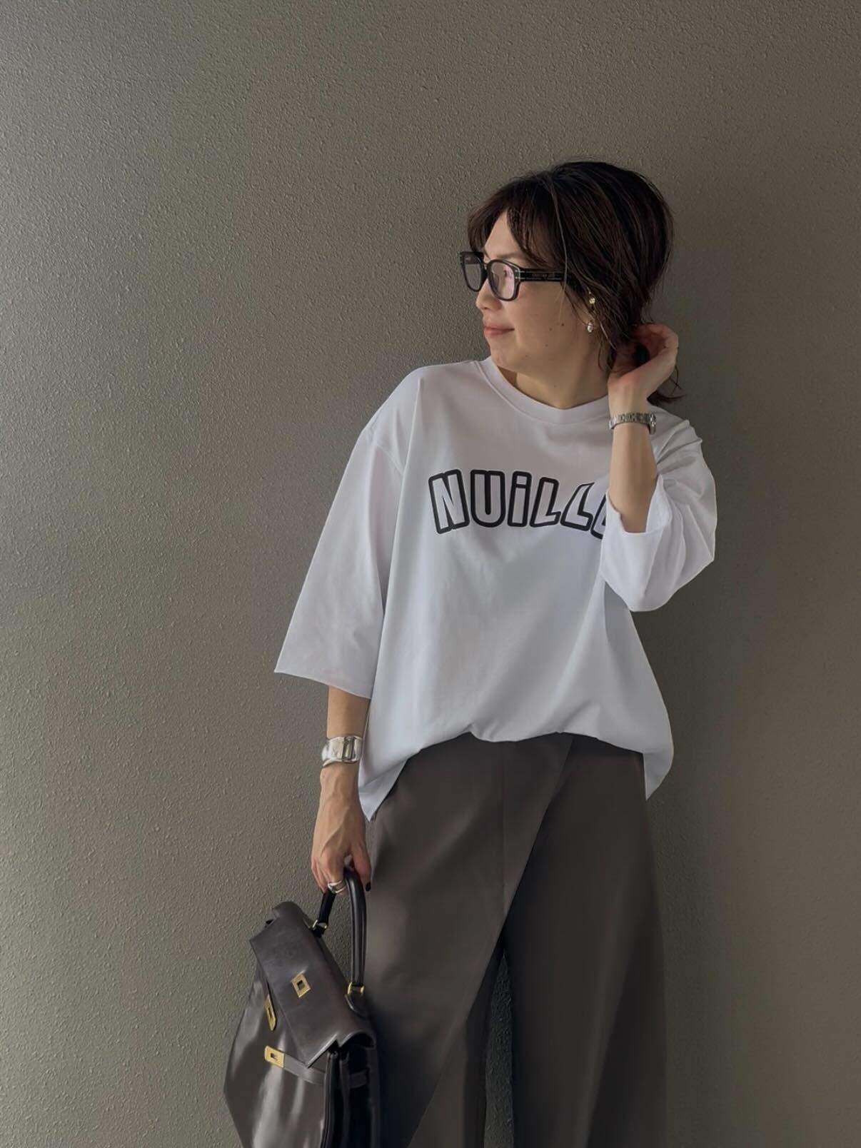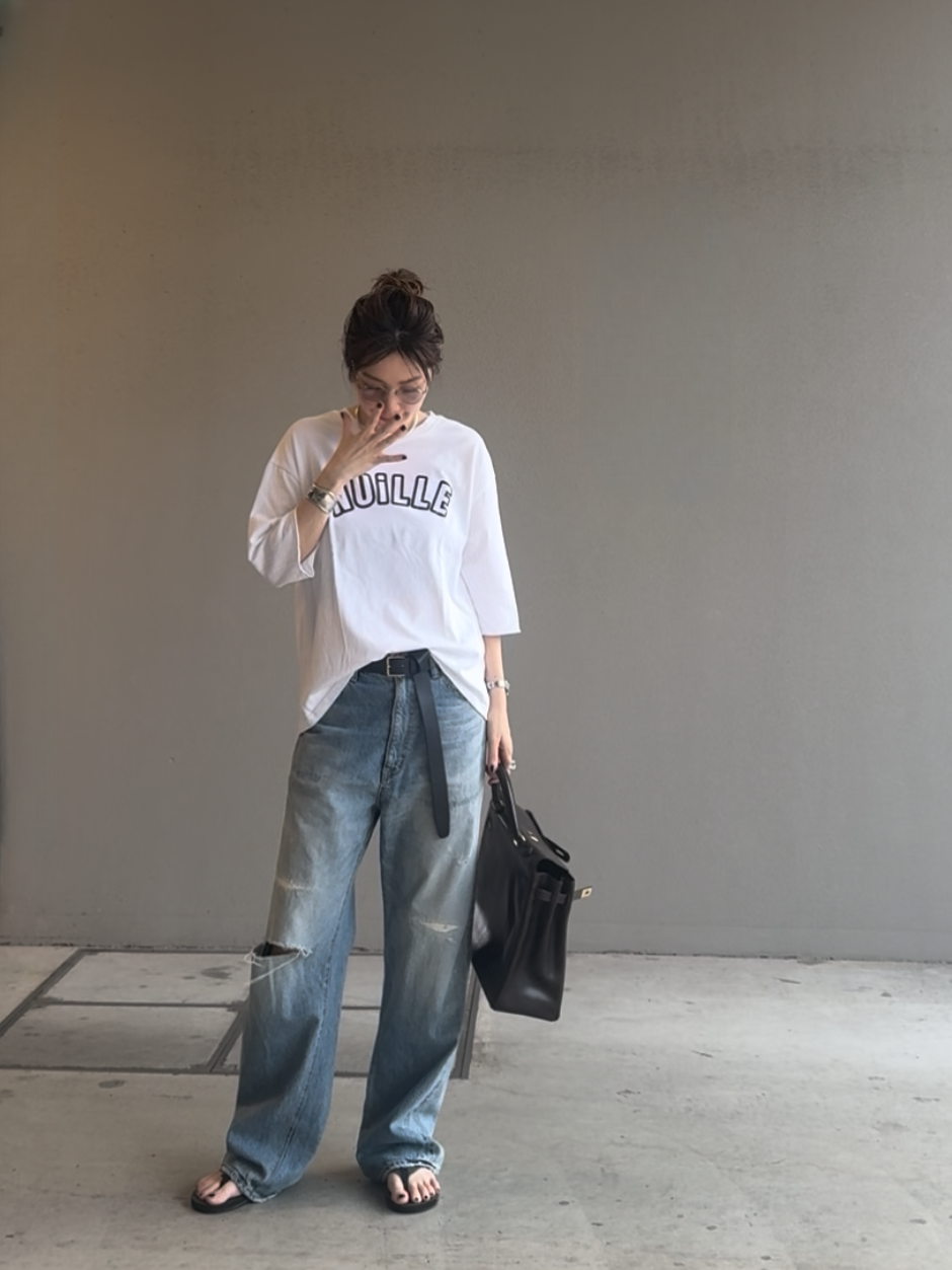 フットボールTの特徴である長めの袖は、肩周りがゴツく見えないようにシルエットとサイズ感にこだわりました。