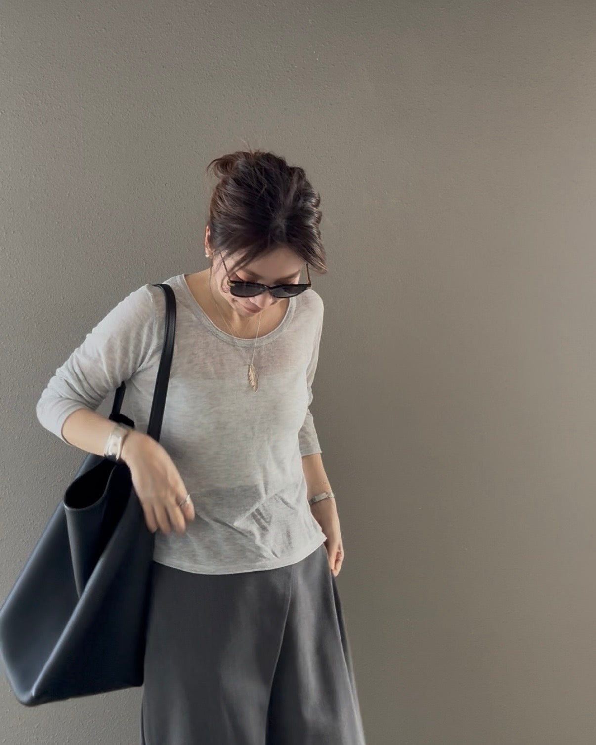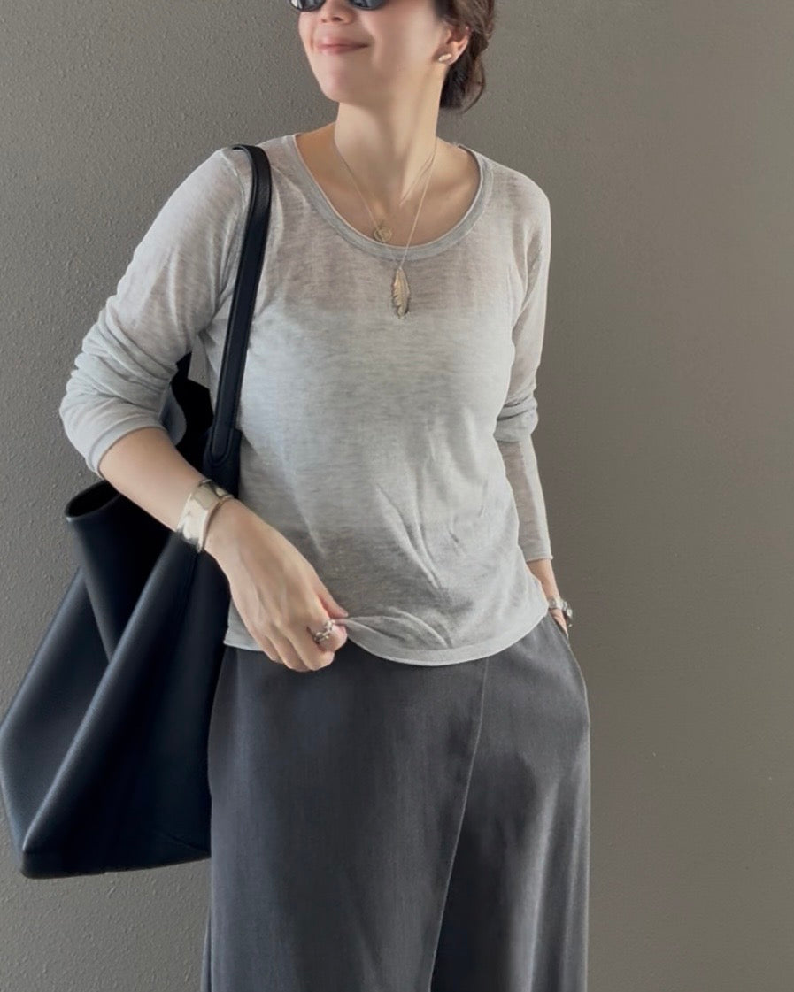 明るすぎず秋にも使いやすい色味をチョイスしました。ヴィンテージカーキのようなトープのようなニュアンスブラウンと通年使いやすいグレーの2色展開です。