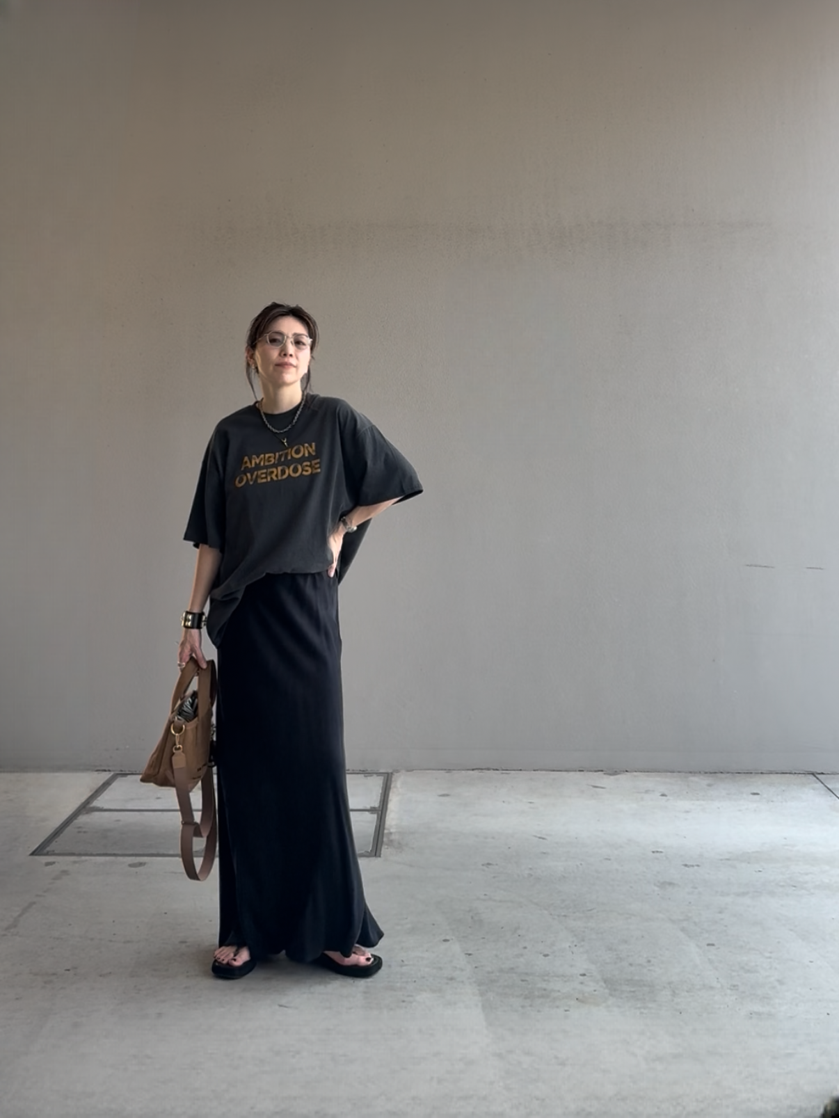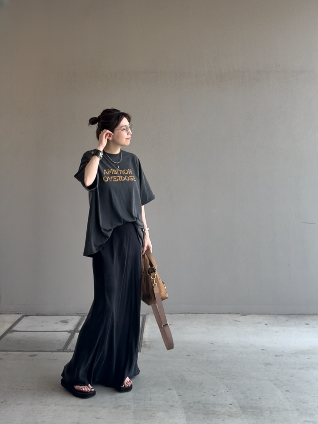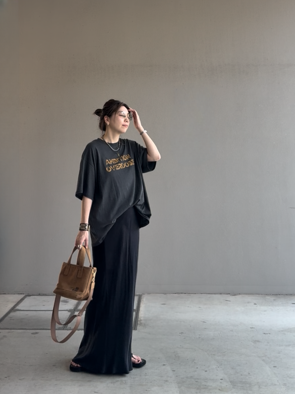 落ち感がある生地のためオーバーサイズながら女性らしく華奢見えも叶います♪