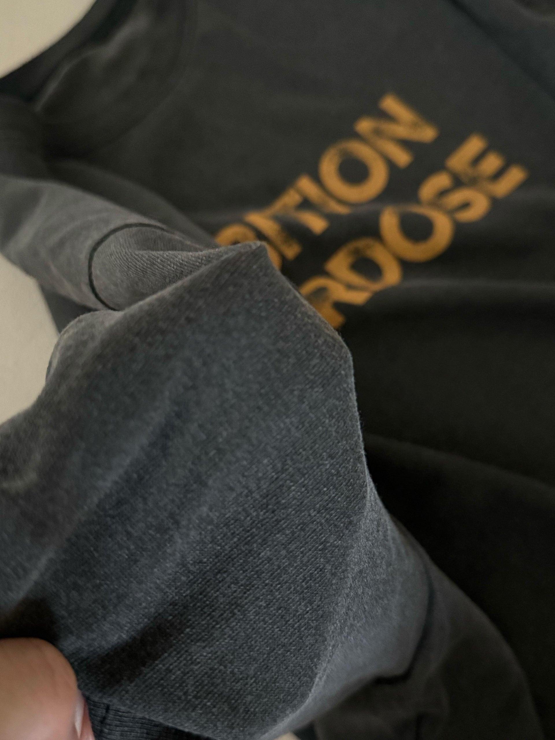 洗いのかかった風合いのスミクロ生地にイエローのロゴが大人カジュアルにぴったり。
