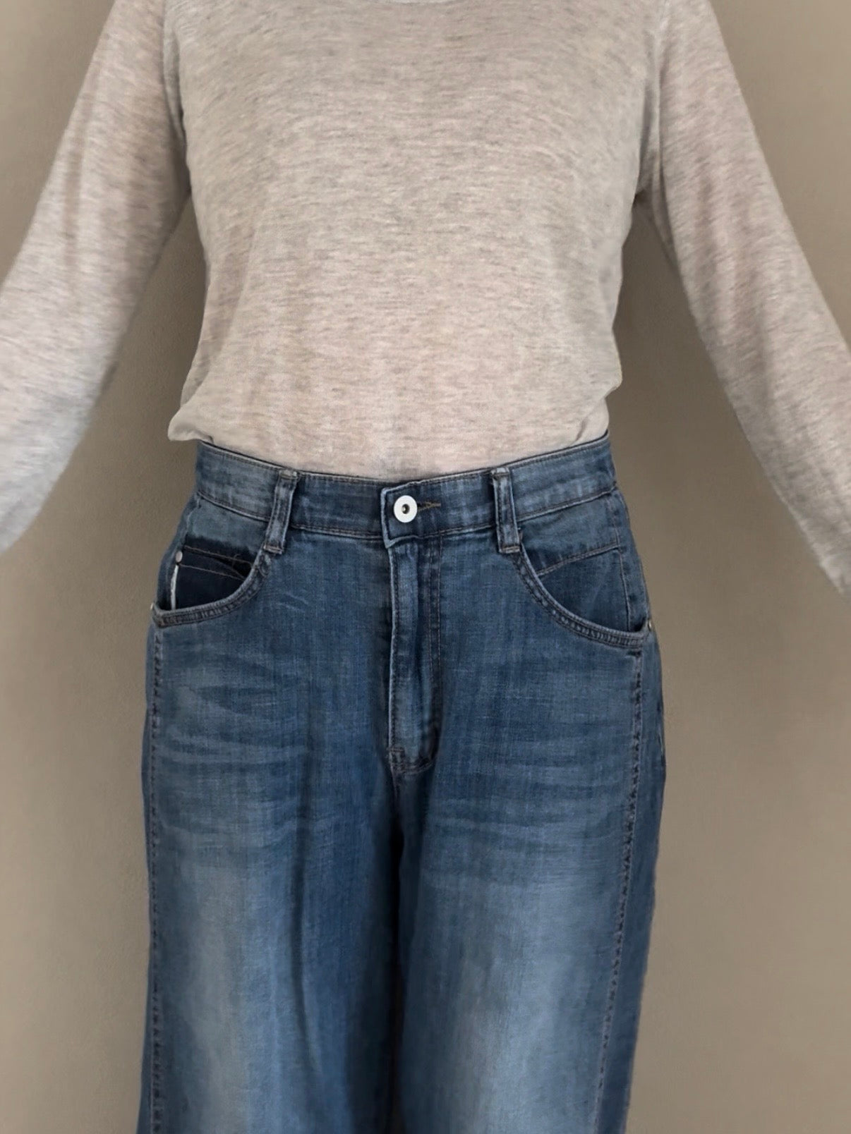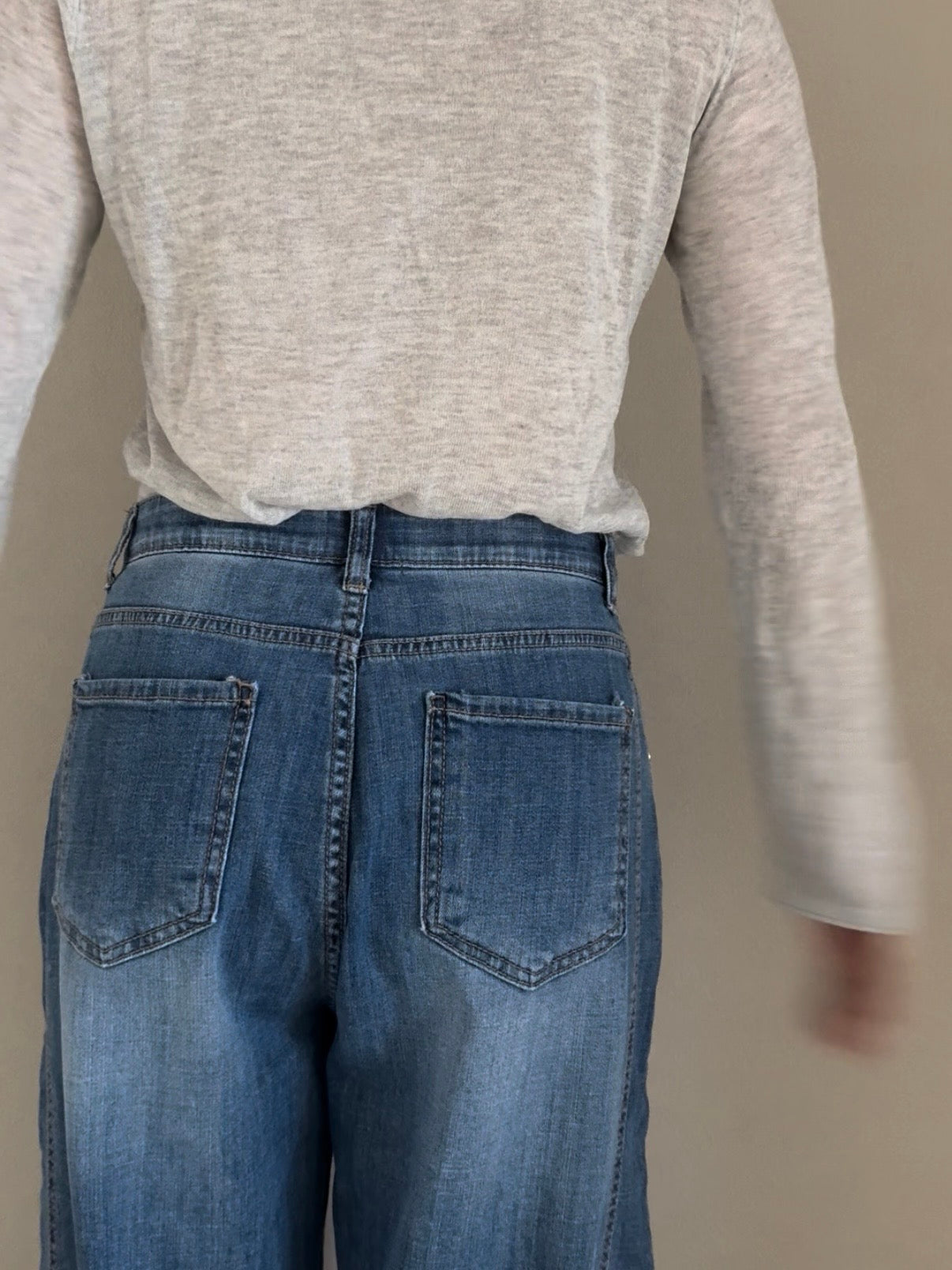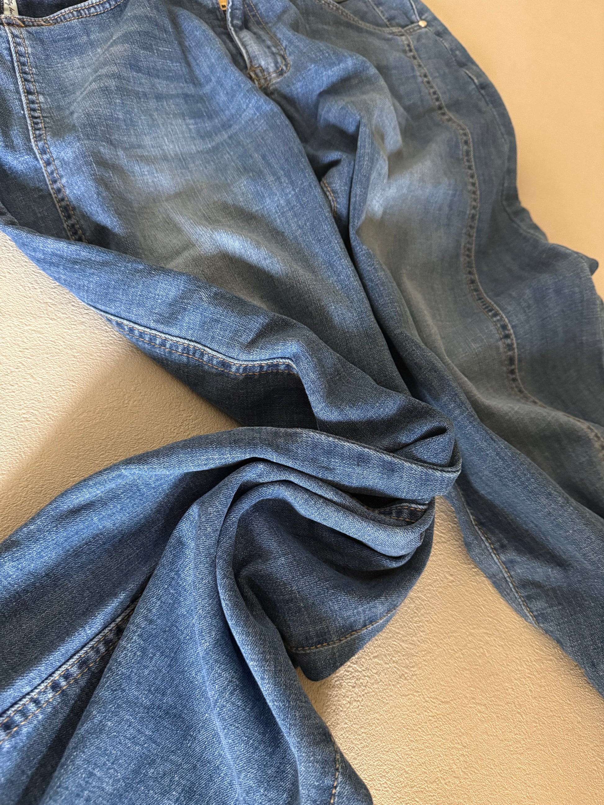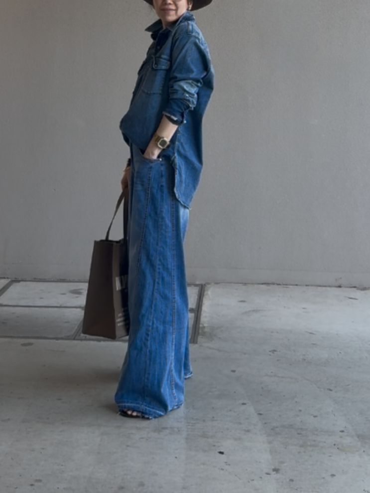 ストレッチの効いた柔らかな生地は、デニム特有の硬さを感じさせず、