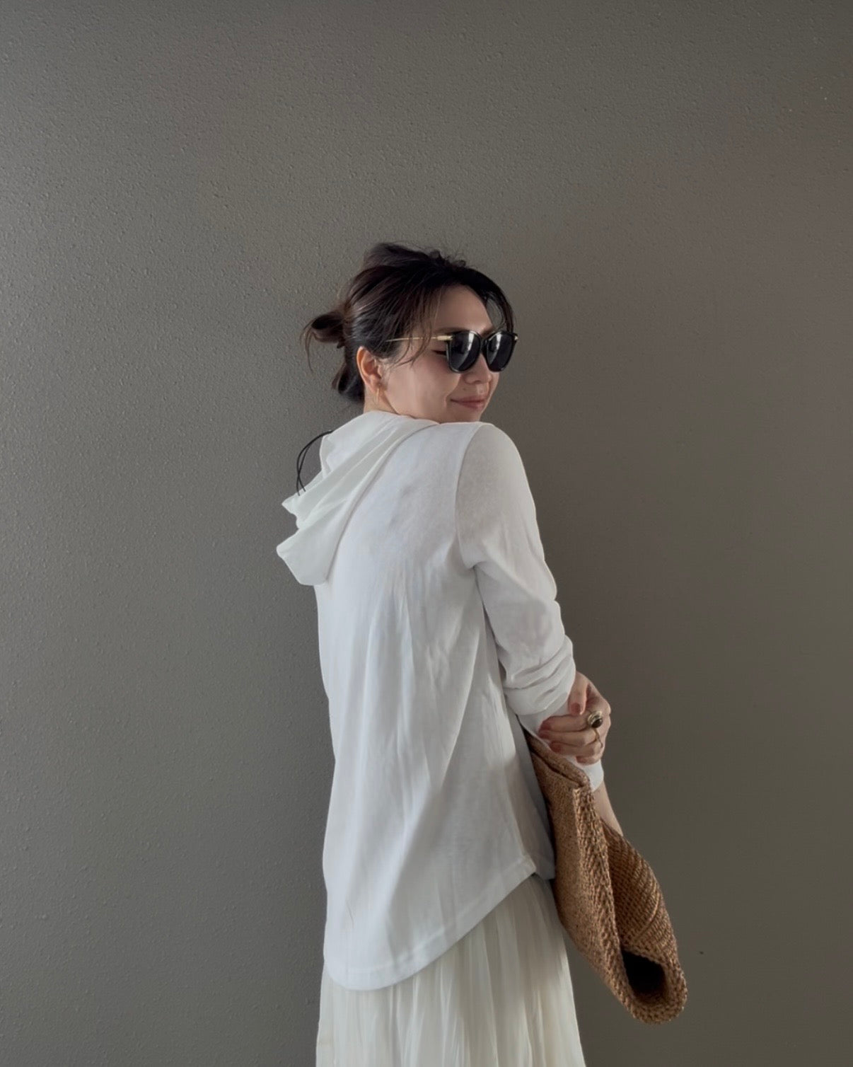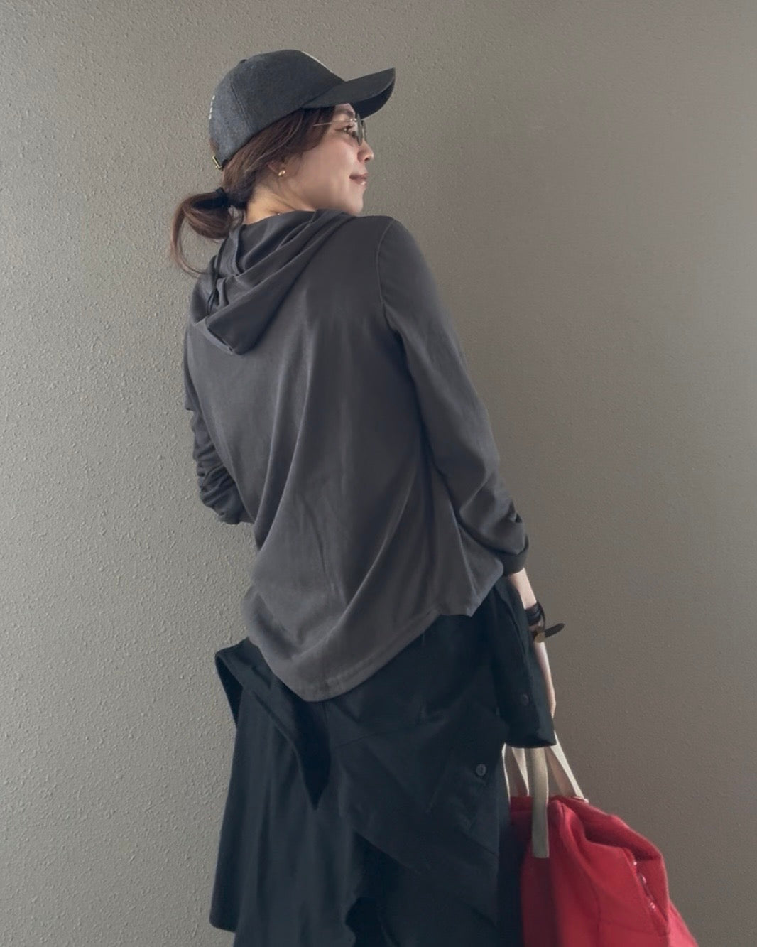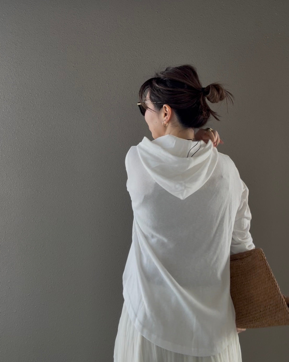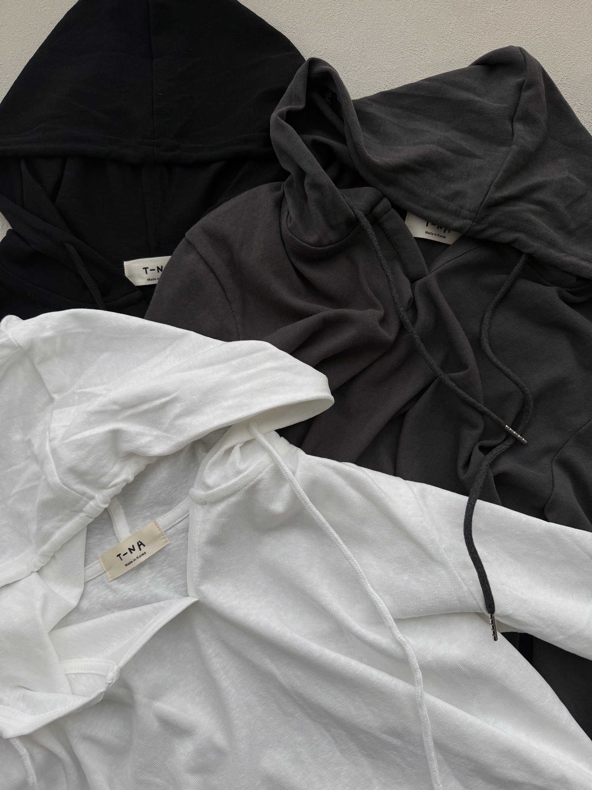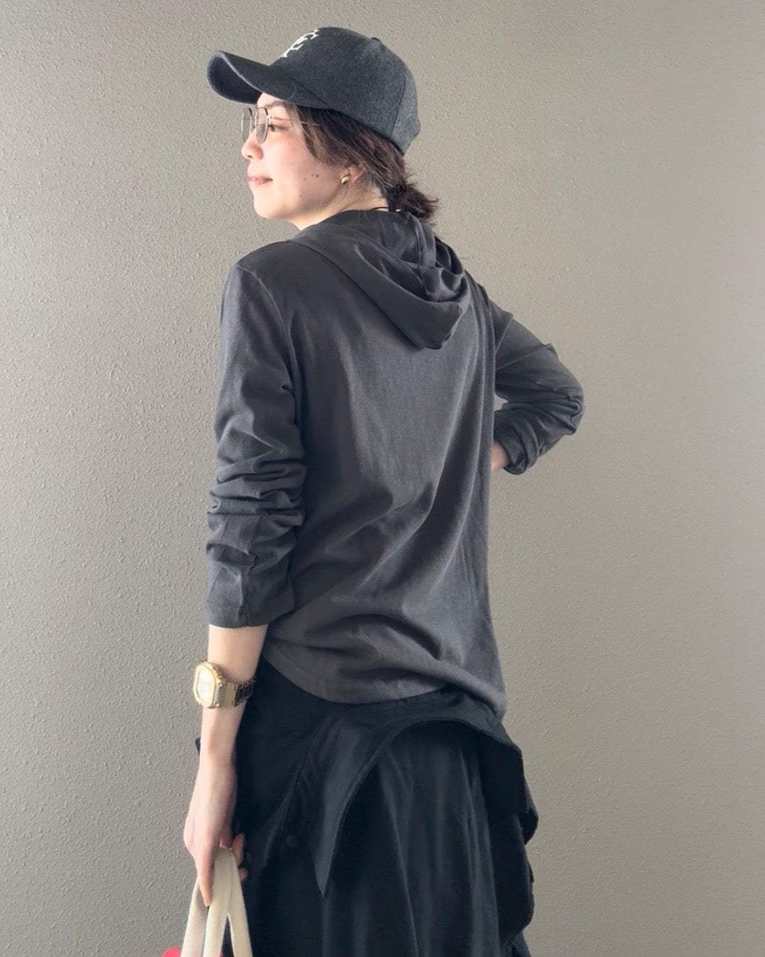 フードはあえて紐を外して、よりミニマルに着るのがおすすめ。