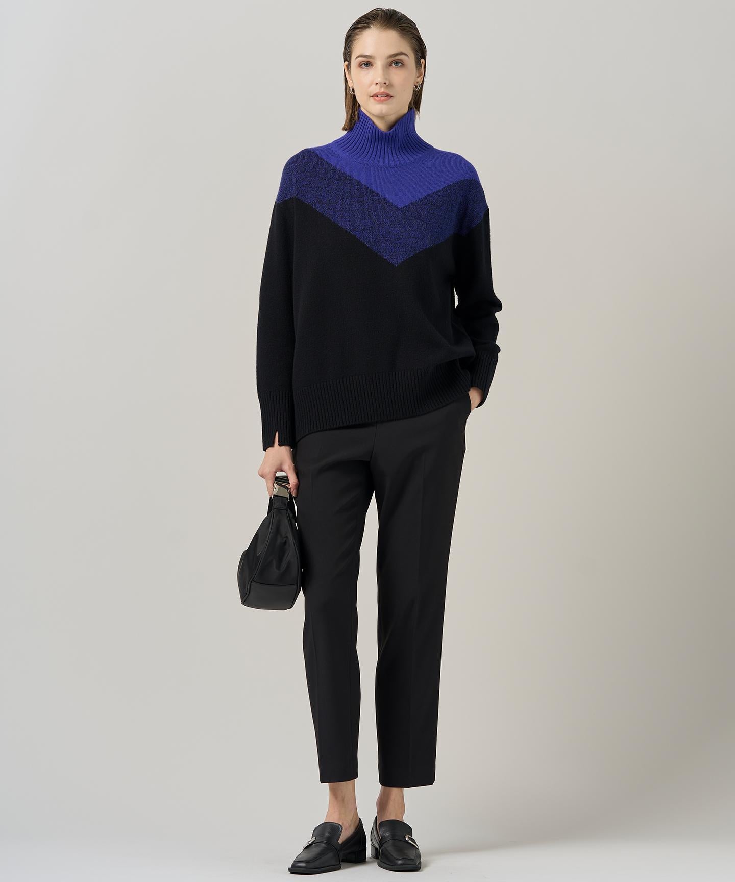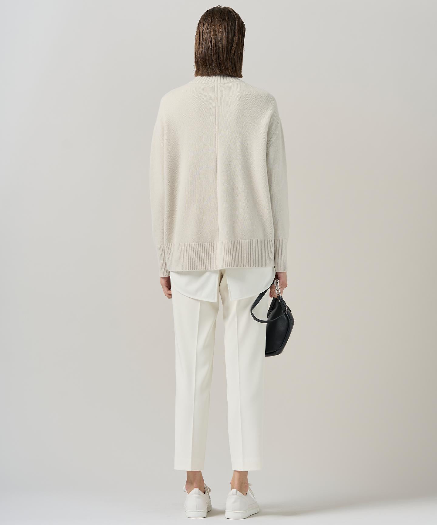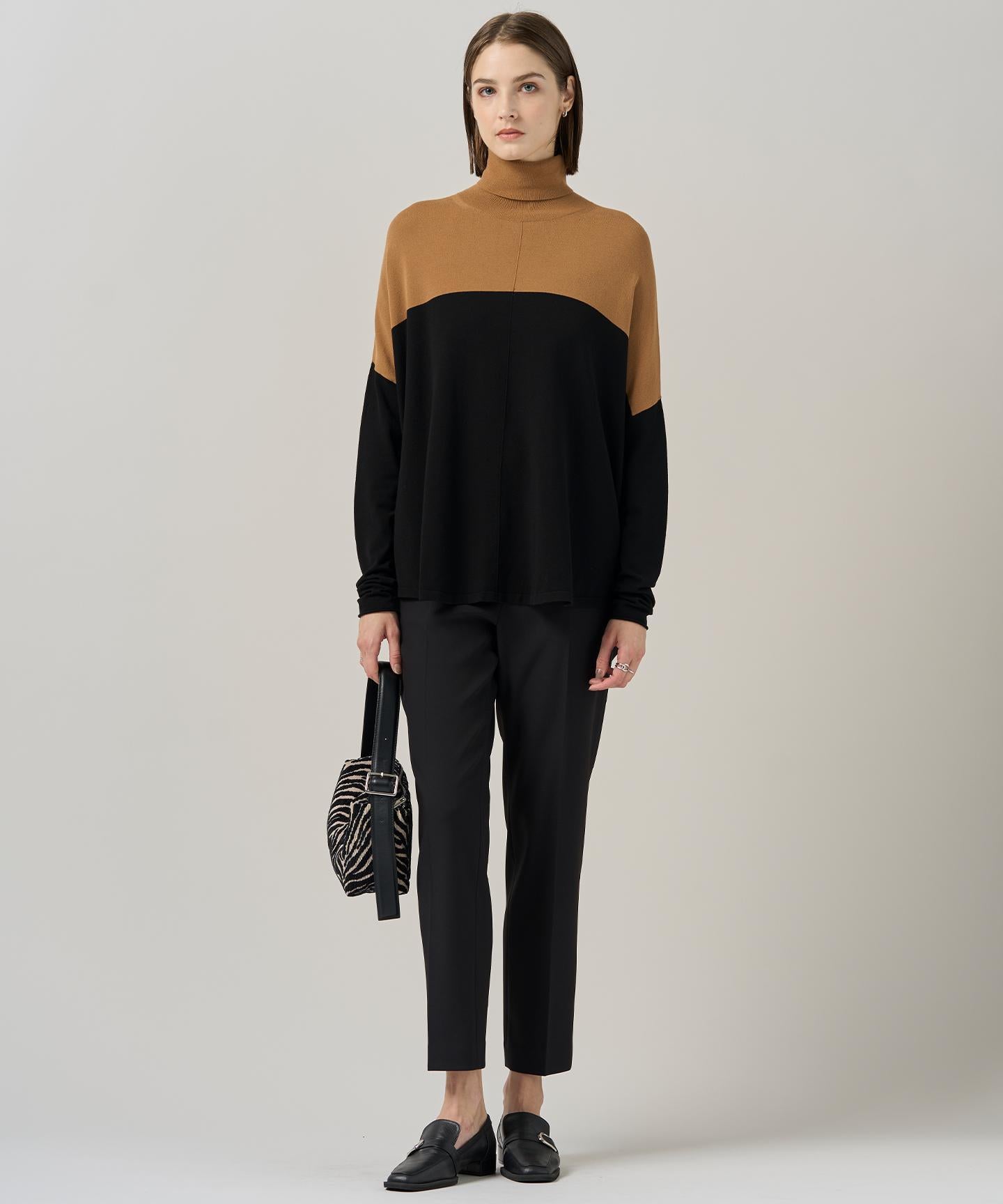 ■素材東レの透け防止タイプのポリエステルを使用した二重織ストレッチ素材です。トリアセテート混にしているため光沢と適度な落ち感があり、ソフトな着心地もこの素材の特徴です。裏起毛を施すことにより、温かく肌あたりの良いタッチを表現した素材に仕上げています。