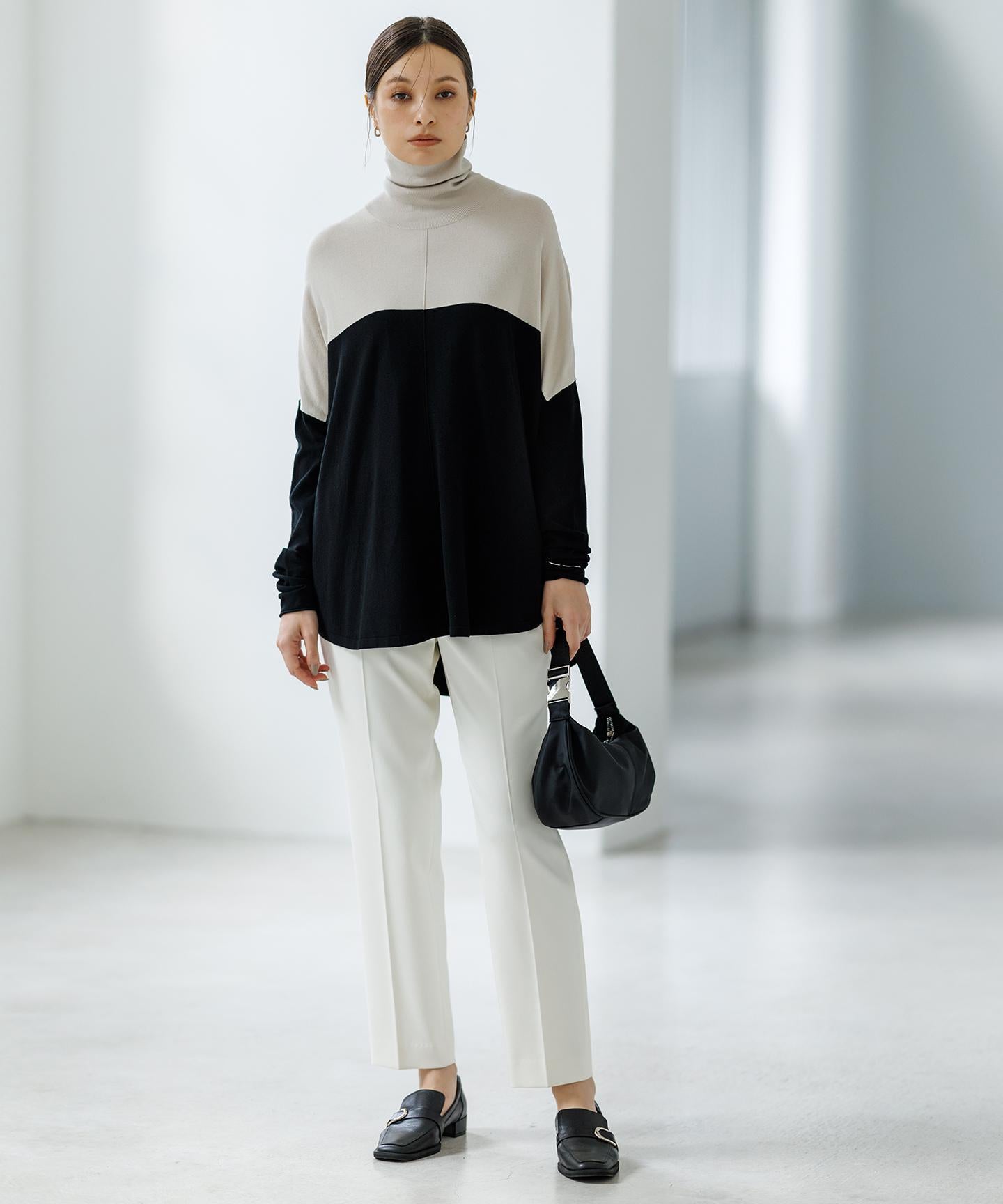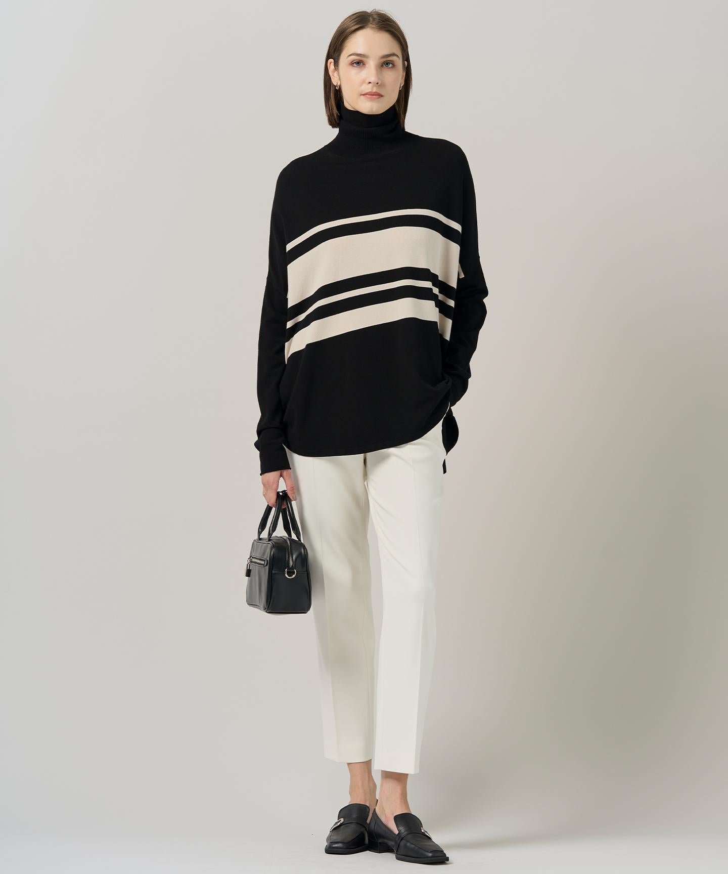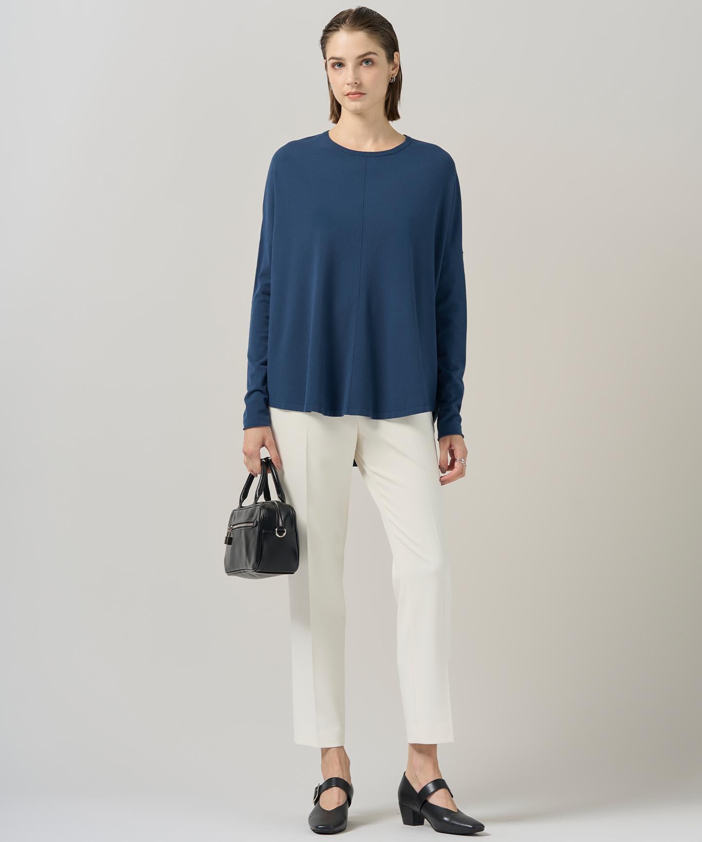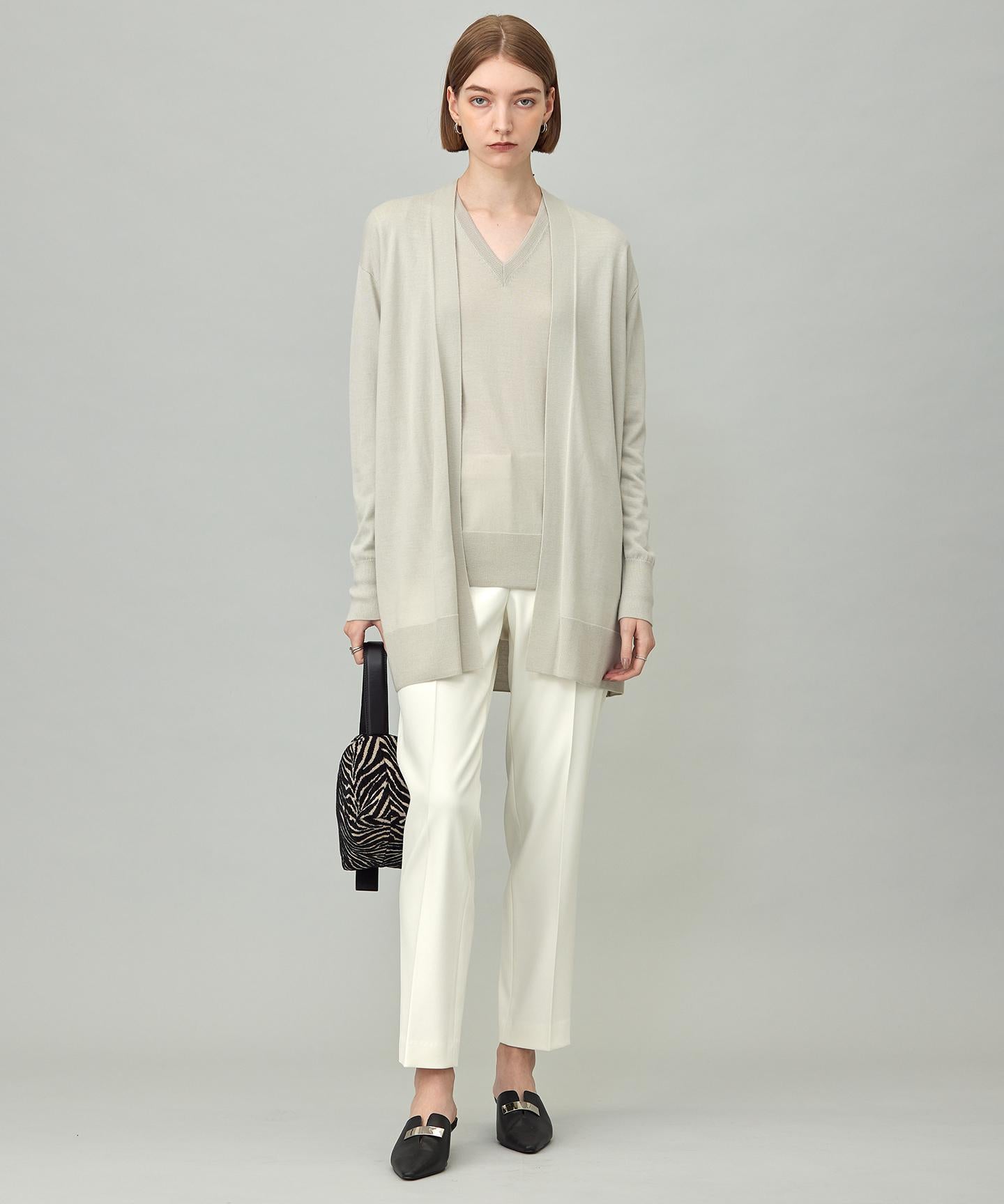 ■デザインキレイめで使いやすいスティックパンツです。センタープレス入りで、縦のラインが強調され、脚長効果や美脚効果も期待できます。ウエスト部分はゴム内蔵のスマートバック仕様で、ラクな履き心地なのも嬉しいポイント。トップスを選ばず、カジュアルからビジネスまで幅広いシーンで活躍する万能アイテムです。オフホワイトのみパワーネットを使用し、透けにくい仕様にしています。