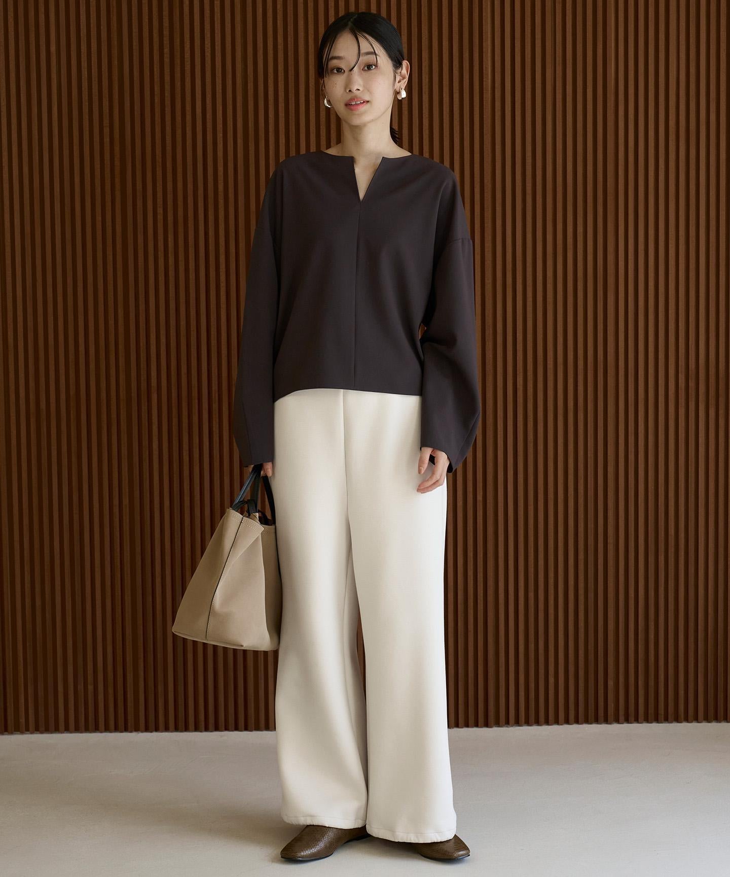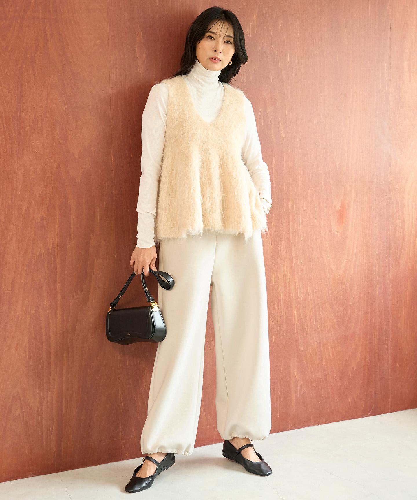 ■デザインリラックス感とキレイ見えが叶う大人のイージーパンツ。程よいゆとりをもたせたワイドストレートシルエットで、体のラインを拾わないデザインです。ウエストはオールゴム仕様で、前ウエストはフラット見えにすることで、おなか周りがすっきりと見せます。裾にはドロストゴム入りで、シーンにあわせて着こなしのアレンジが可能です。軽くてしわになりにくく、ストレッチ性があるため、とてもラクなはき心地です。