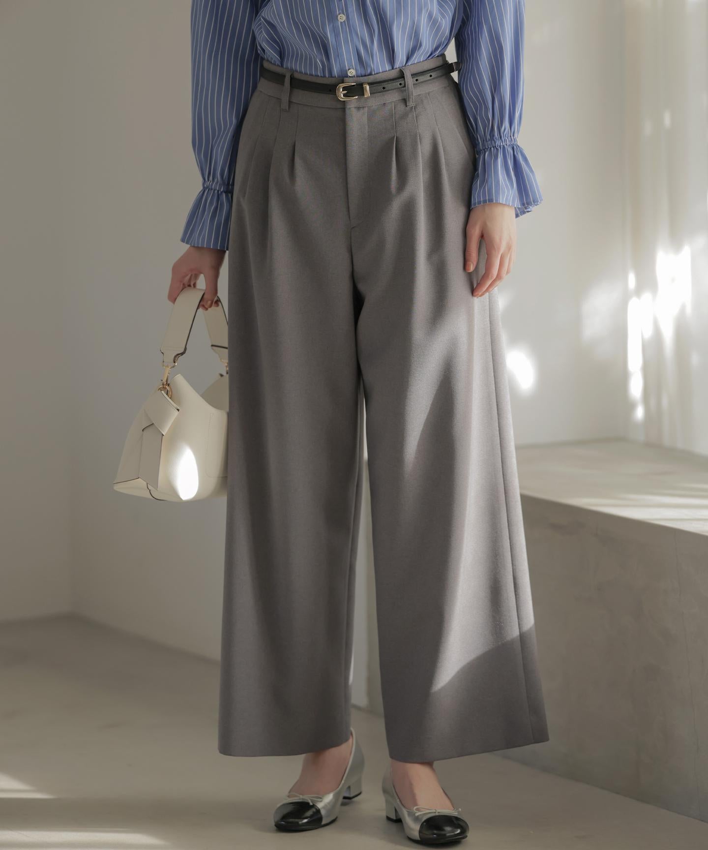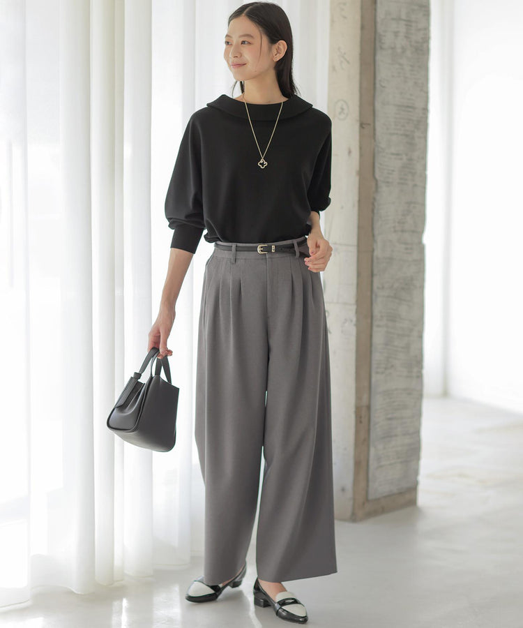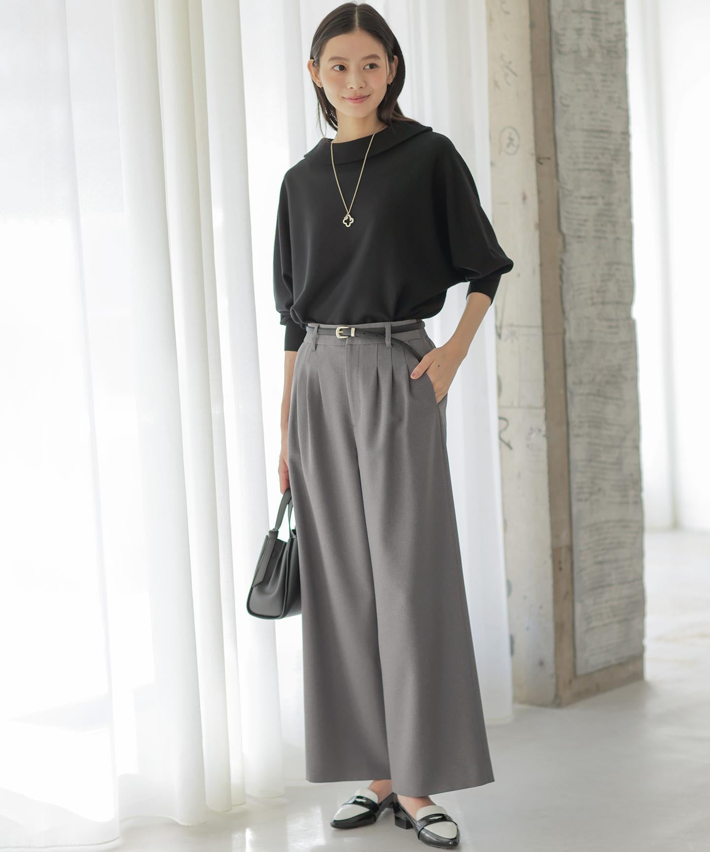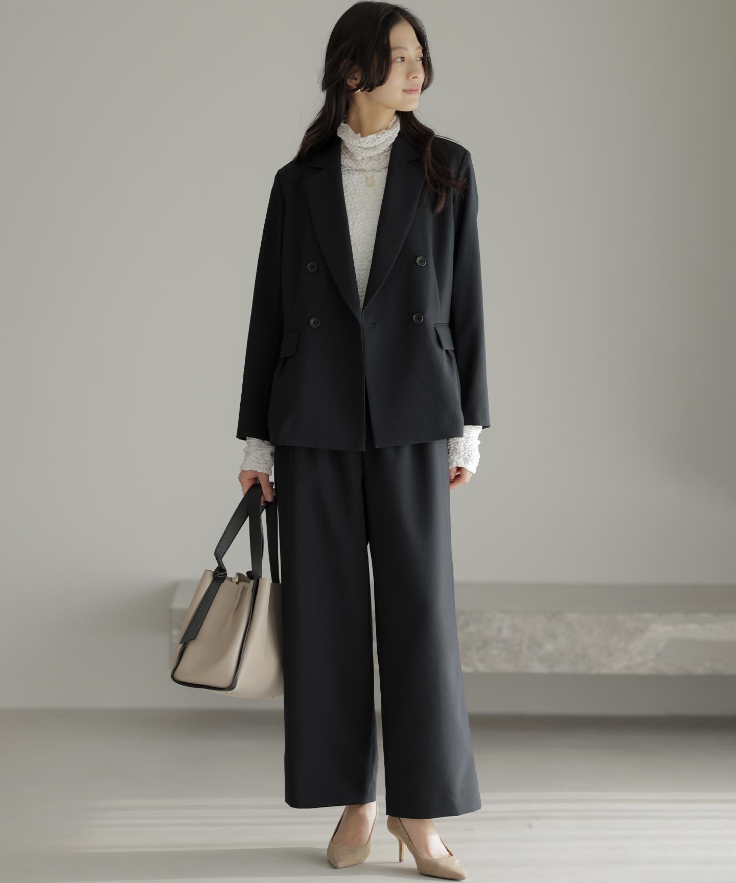 \\同素材ジャケットとセットアップ着用可能/はき心地の良さと大人のキレイめスタイルを叶える『シュッと見え』ワイドパンツ