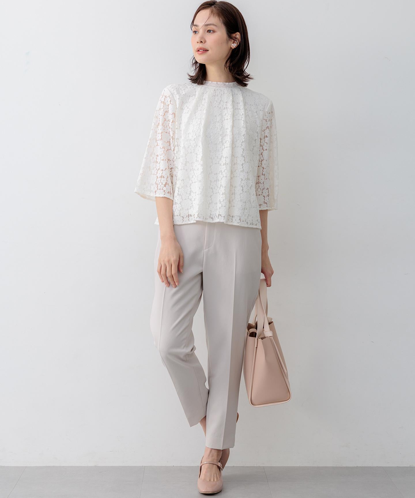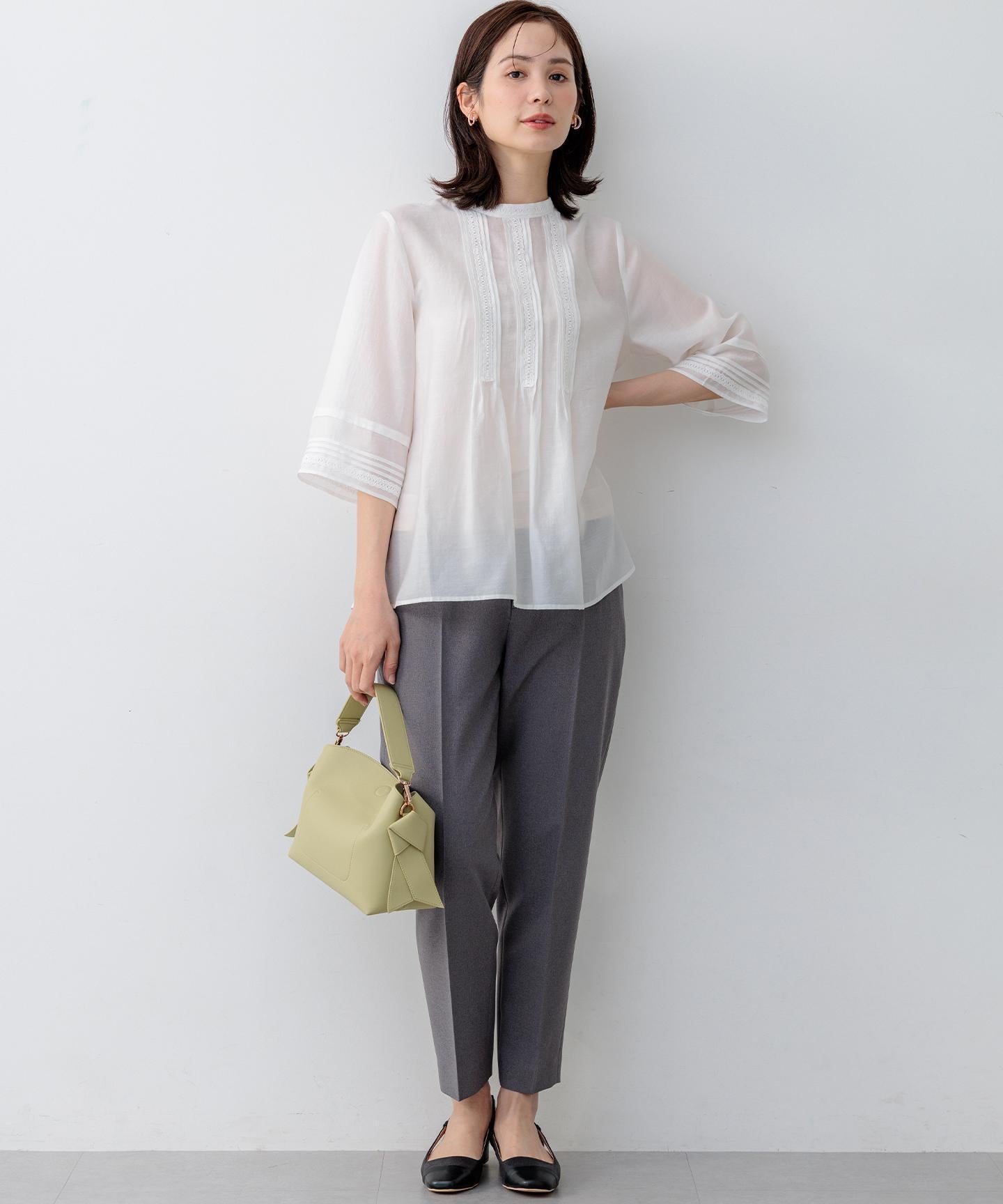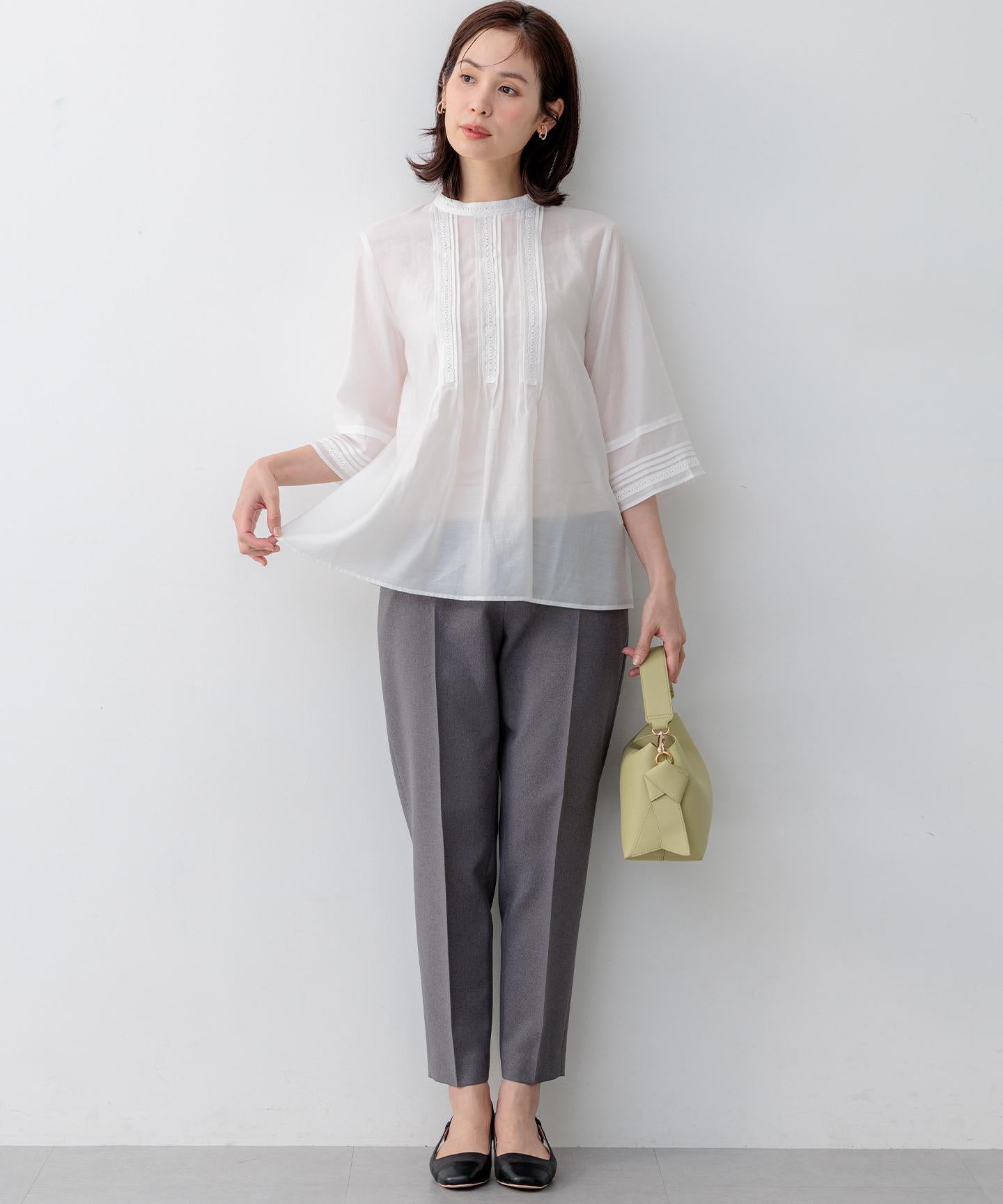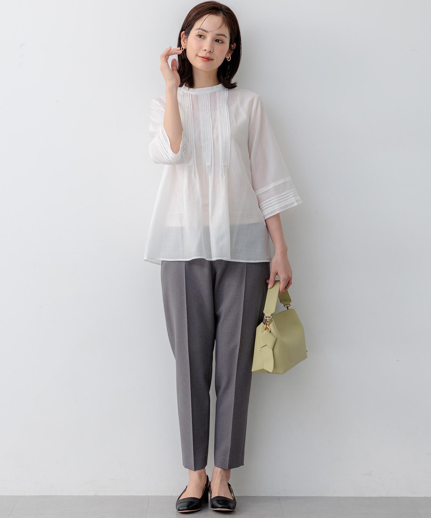【スタッフコメント】▼身長158cm|着用サイズM (通常着用サイズM)見えても素敵なウエスト後ろのゴムの仕様は、フィット感もあり着心地の良さも底上げしてくれている優れものです。大人のキレイみえが叶う今期一押しのパンツです!