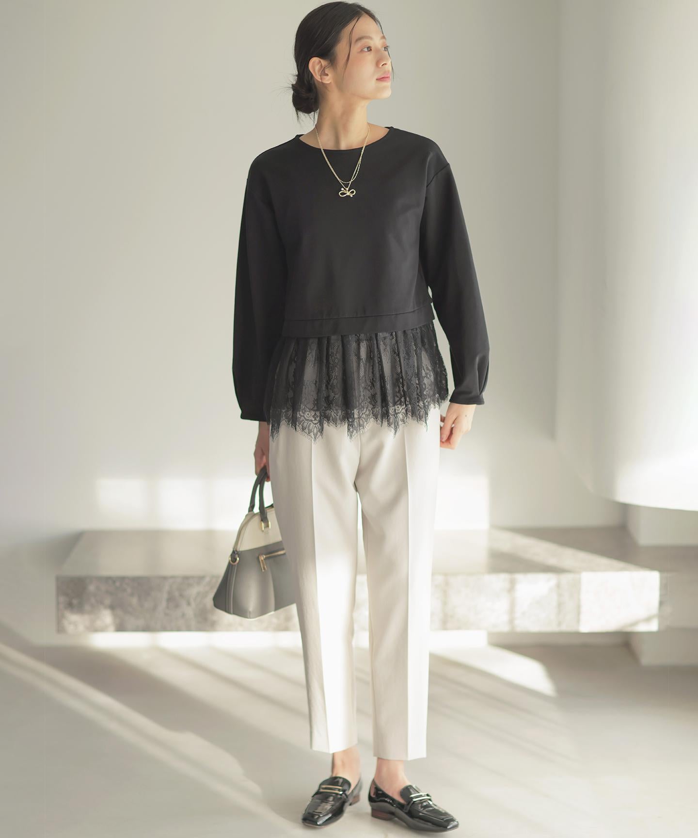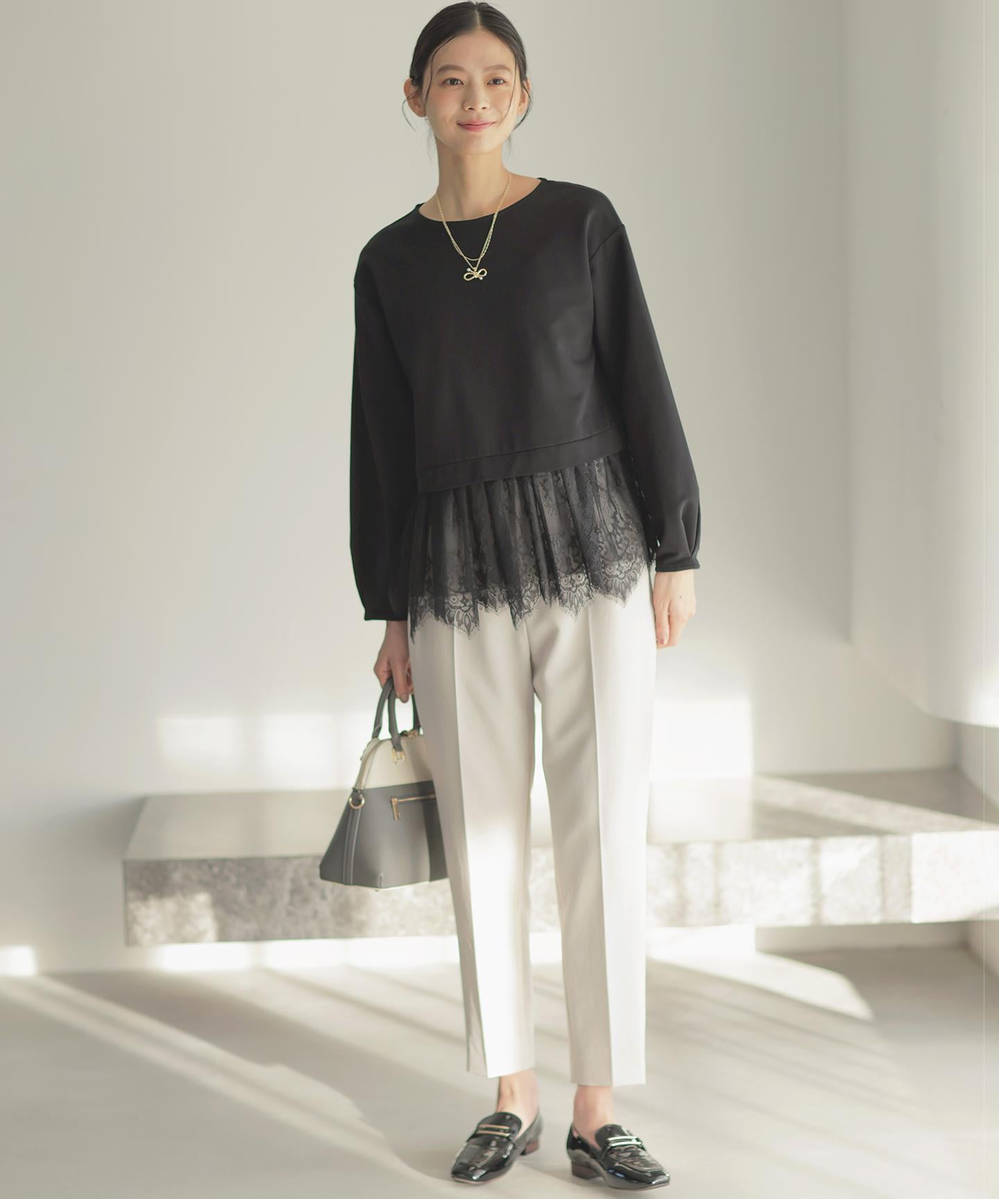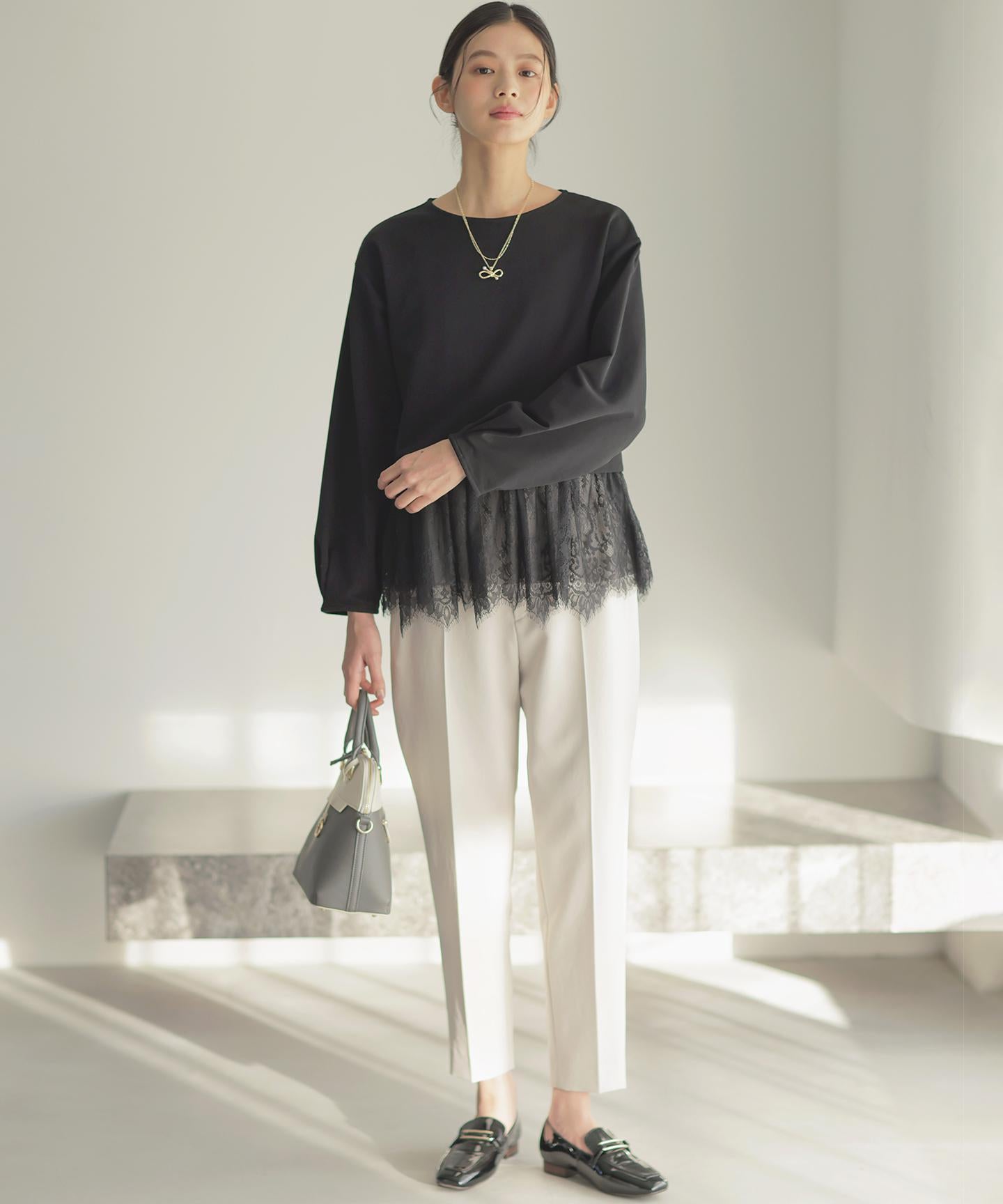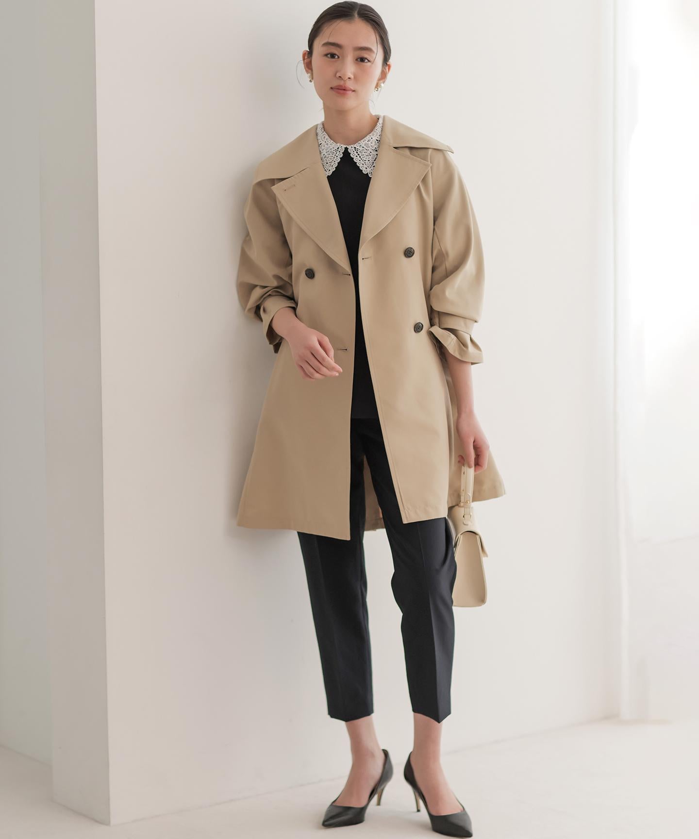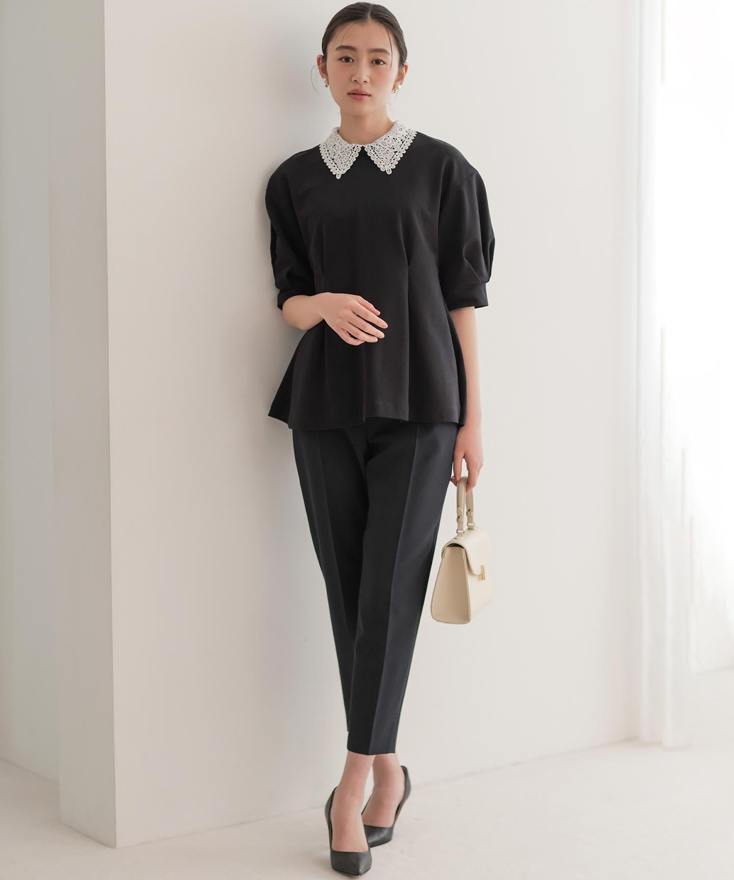 【スタッフコメント】▼身長158cm|着用サイズM (通常着用サイズM)見えても素敵なウエスト後ろのゴムの仕様は、フィット感もあり着心地の良さも底上げしてくれている優れものです。大人のキレイみえが叶う今期一押しのパンツです!