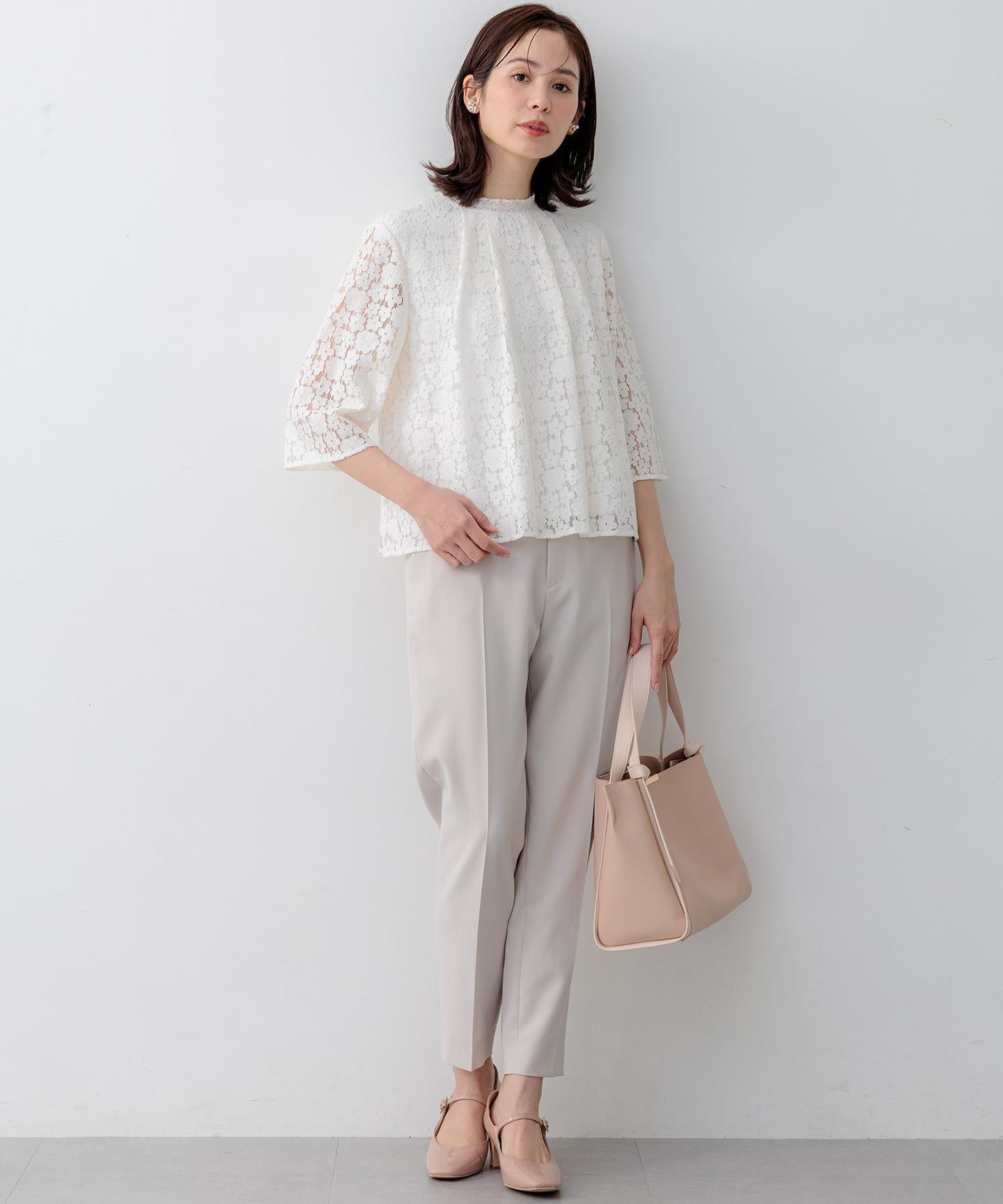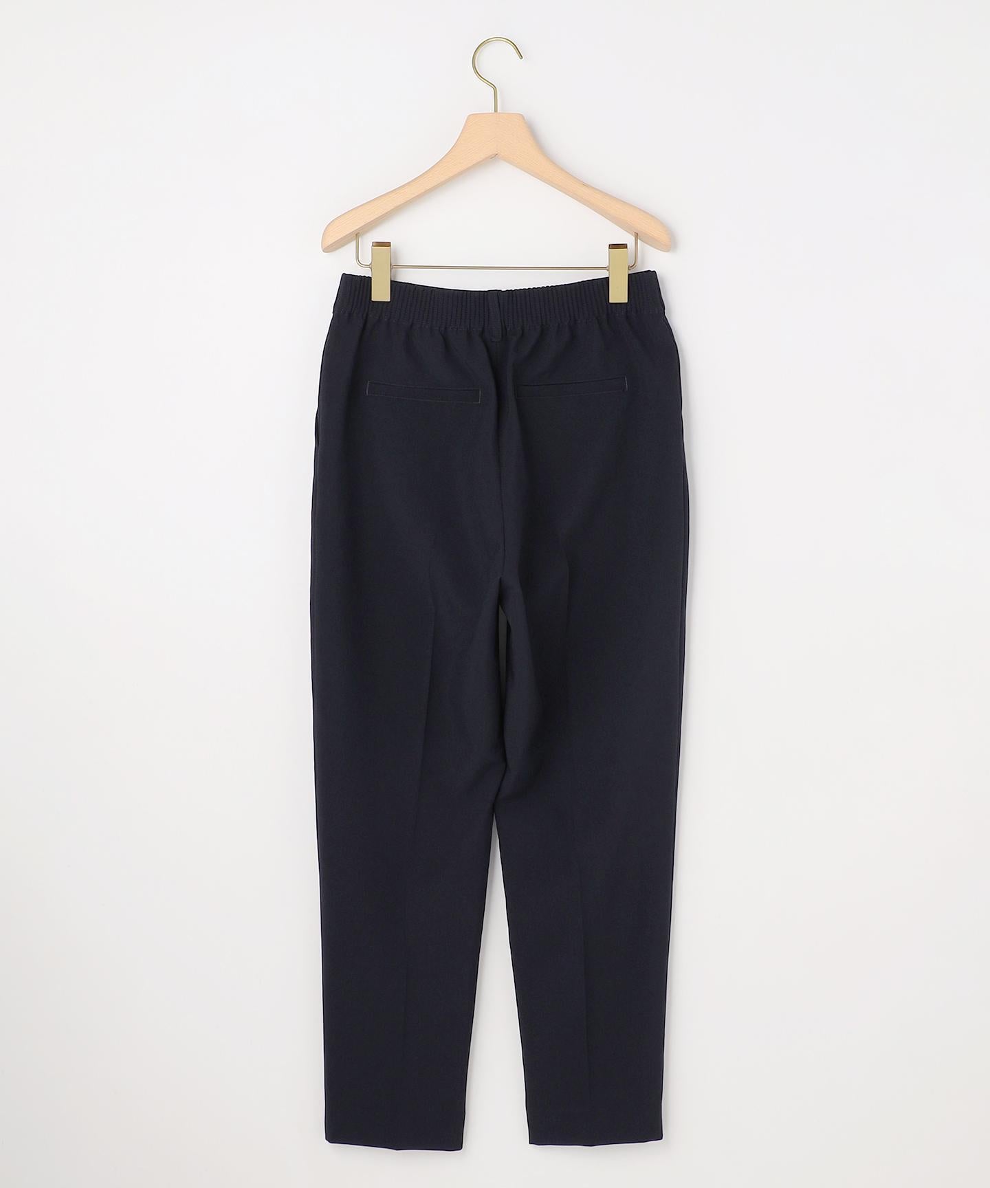 ■デザイン・どんなシーンでも大活躍のテーパードパンツは、こだわりのサイズ感で美しいシルエットを追及しました。・後ろのゴムは特殊な刺繍ステッチでまるでリブの様な仕上がりはボトムスをインした時にもデザインポイントになります。・イージーなはき心地ながらも、前開きファスナー仕様ですっきりとした印象です。・♯002サンドベージュ系 総裏 ♯003グレー系・075ネイビー系 裏なし