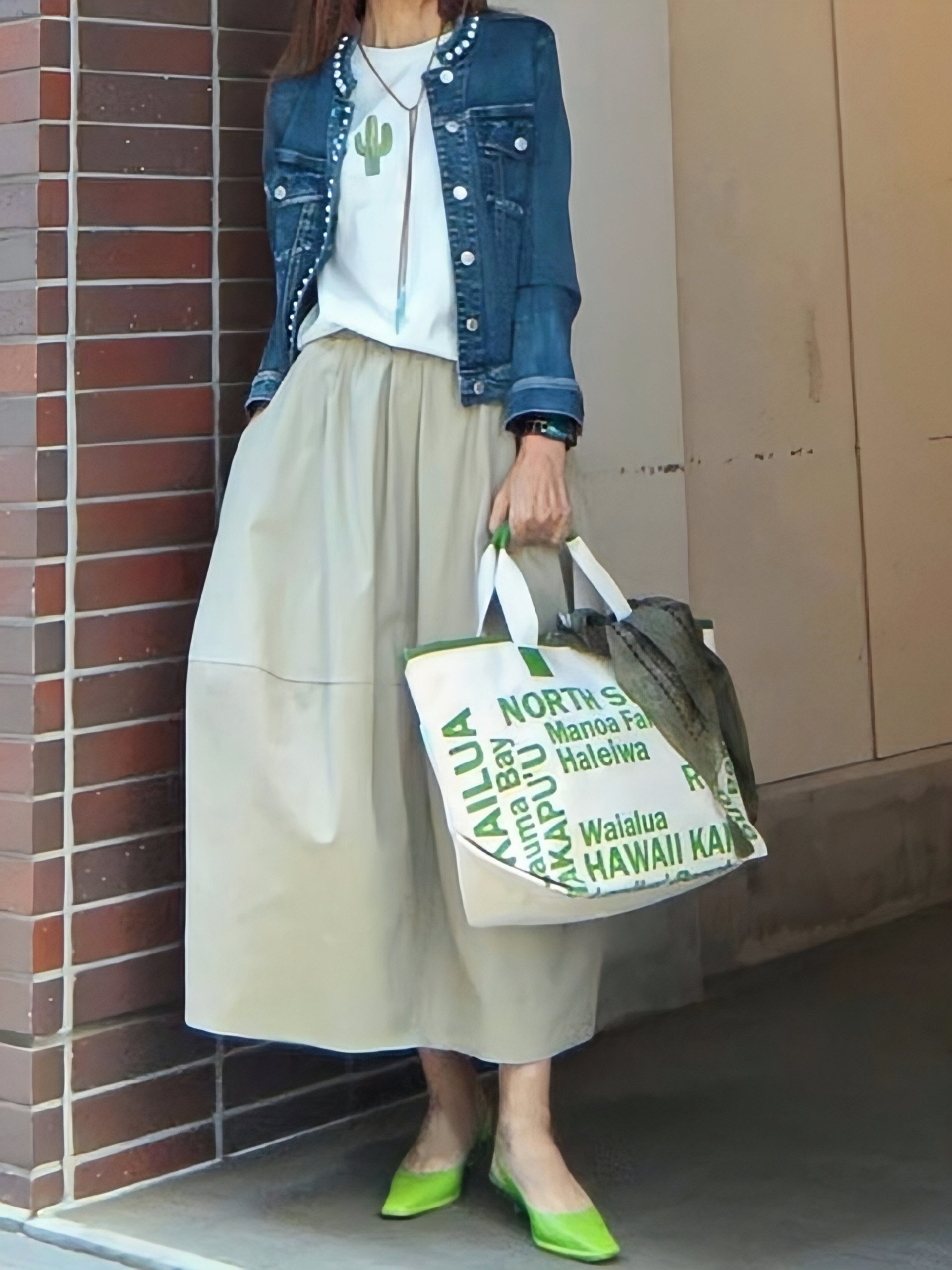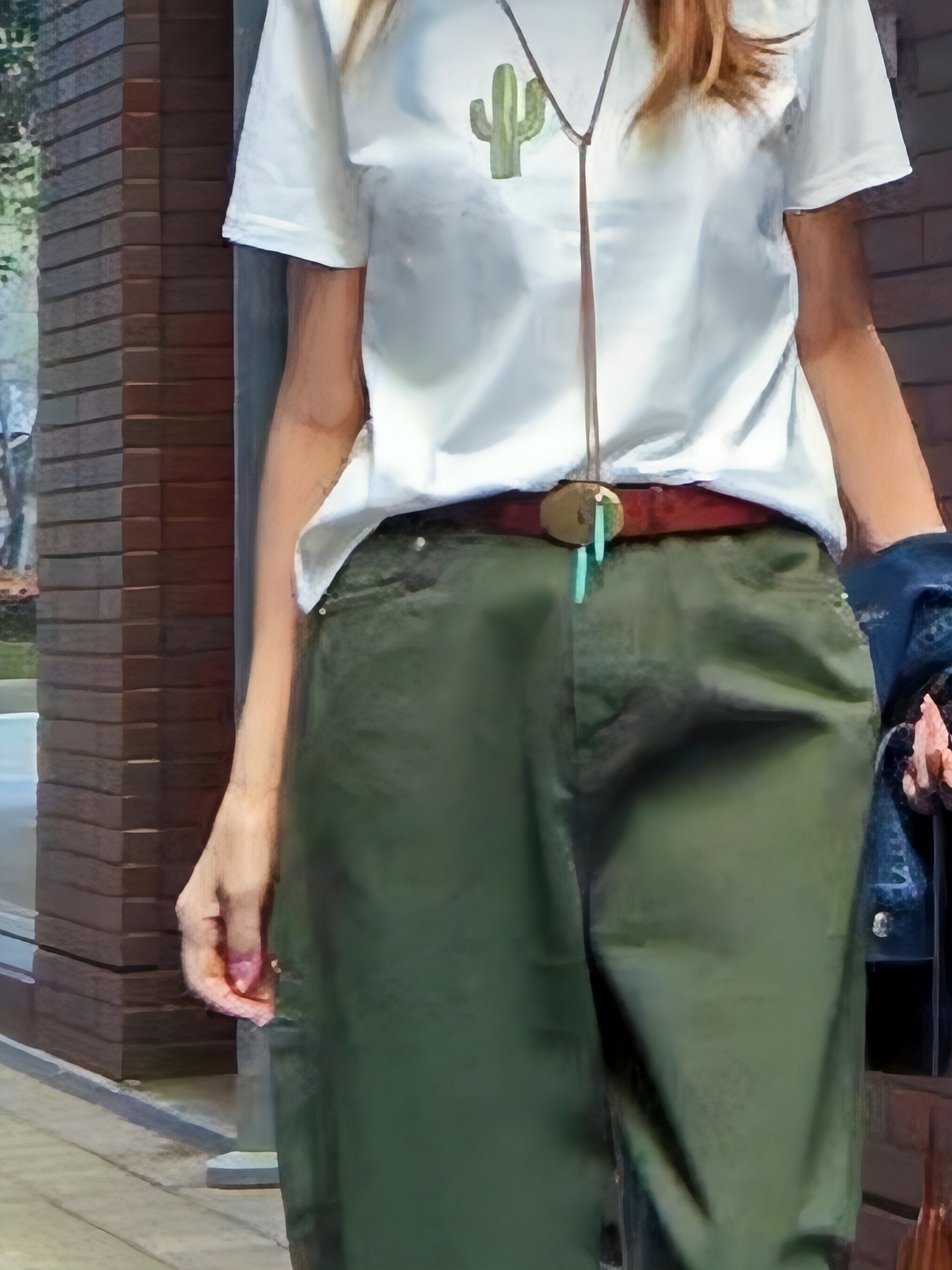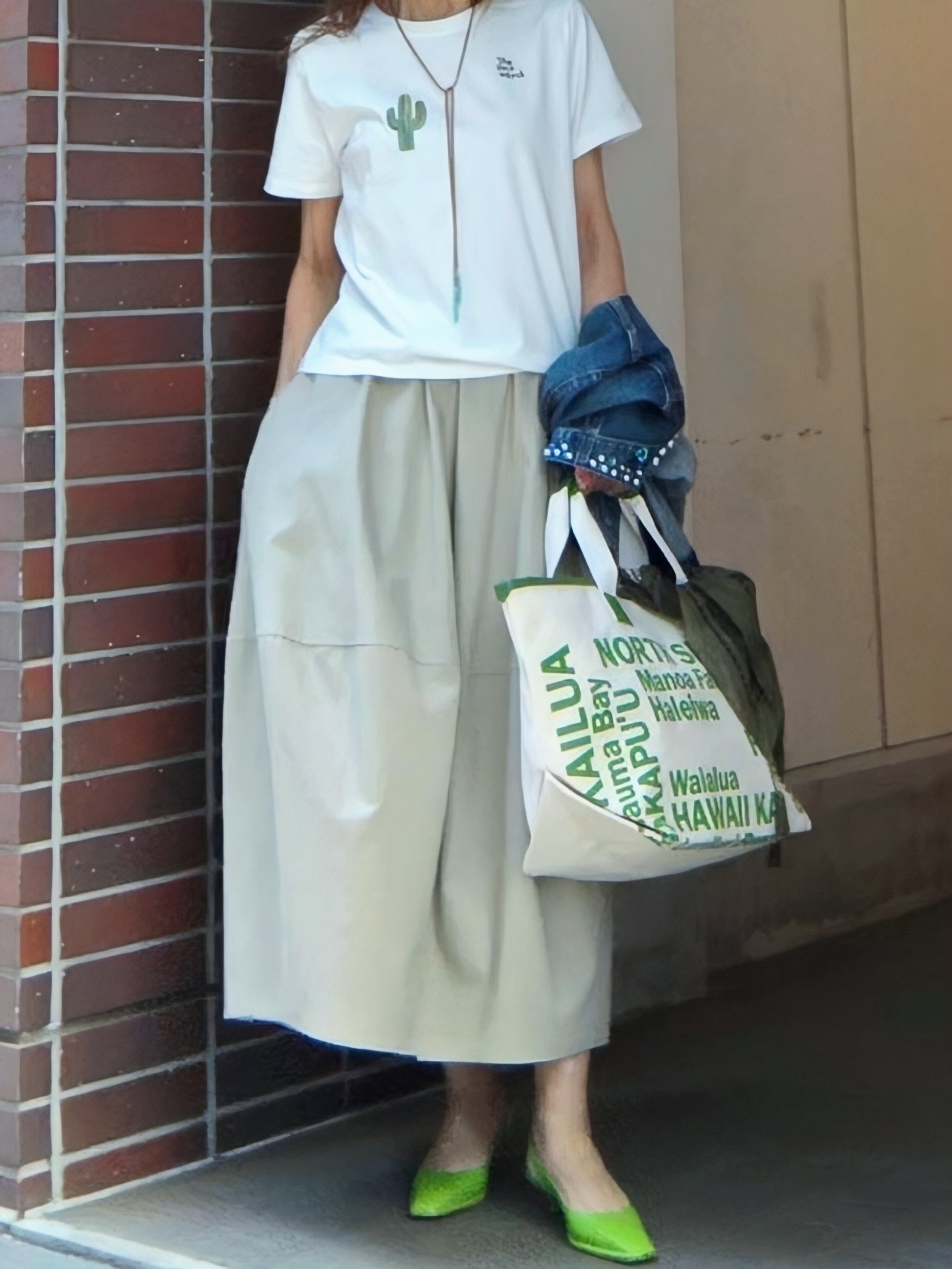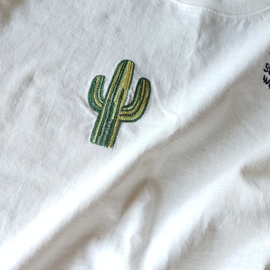 人気のサボテンモチーフが刺繍によって施され、収縮性の高いリブ仕様の襟元は型崩れしづらい…細部に凝ったお作りのTシャツ