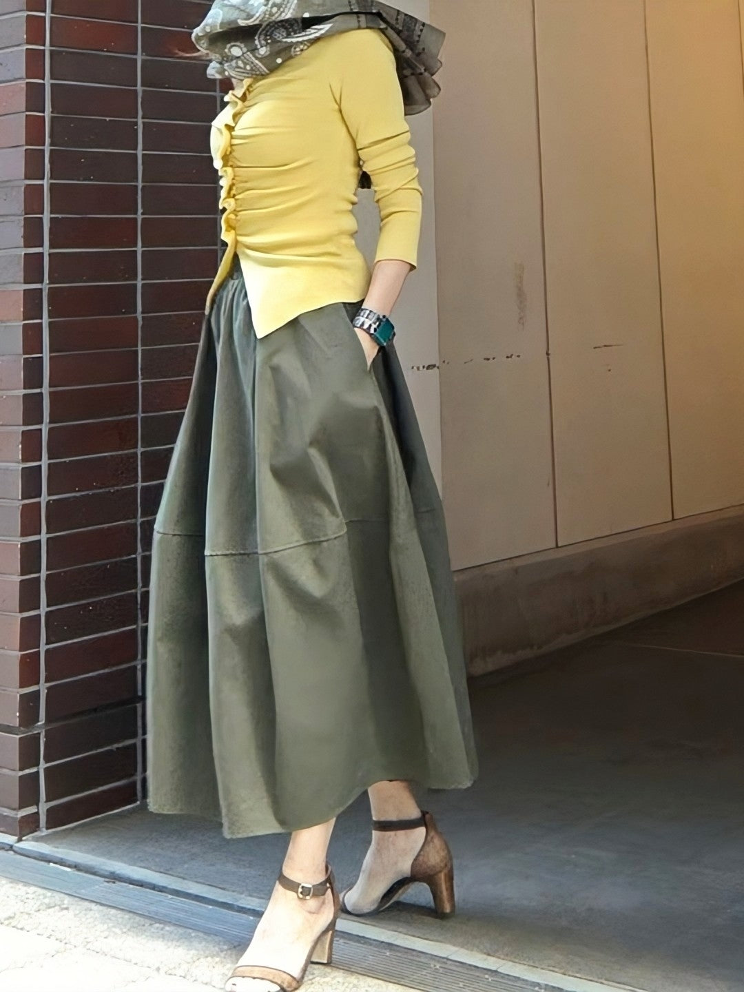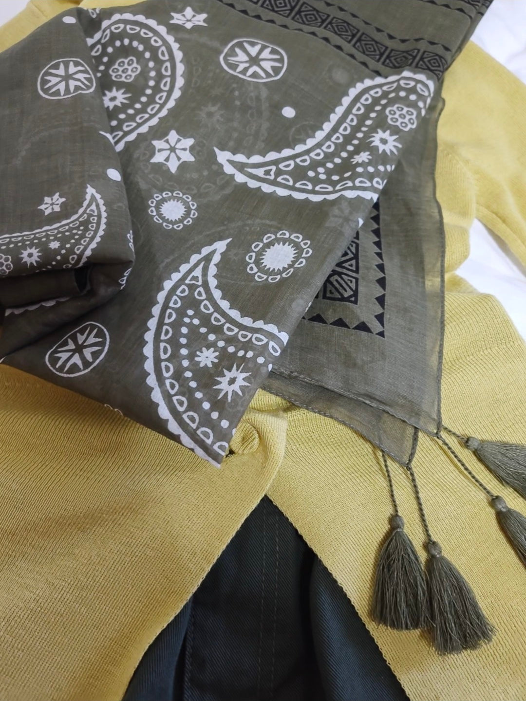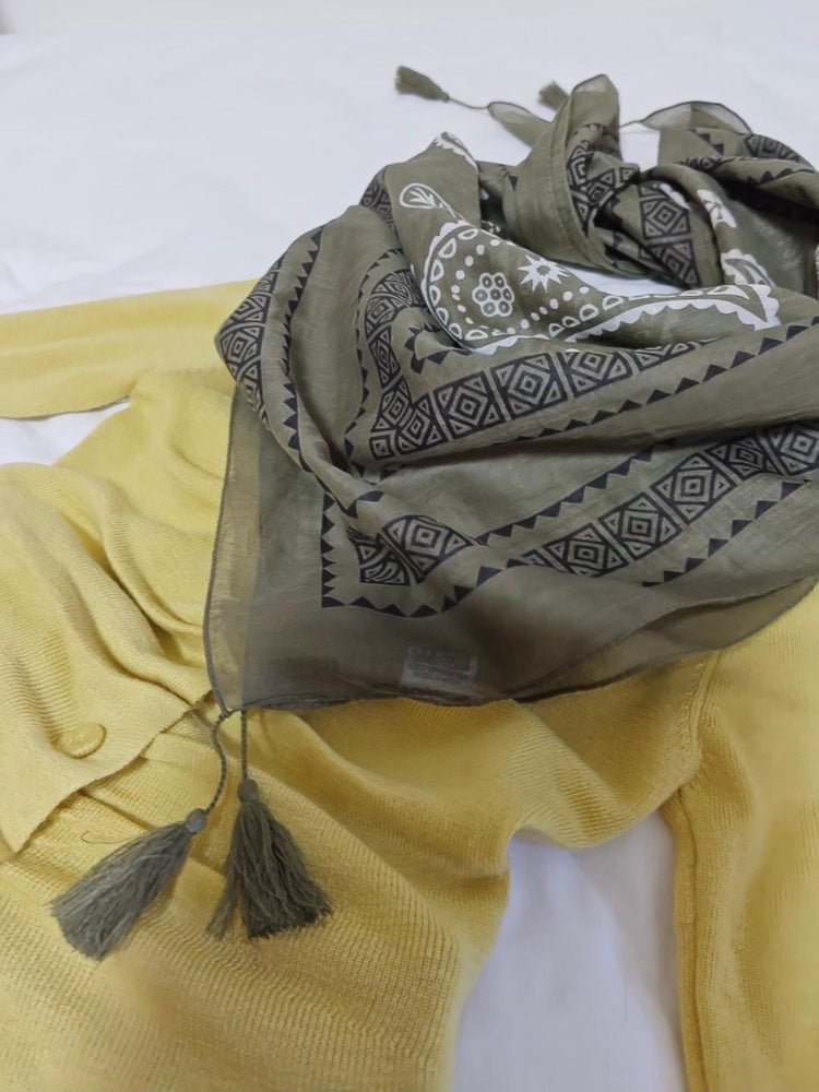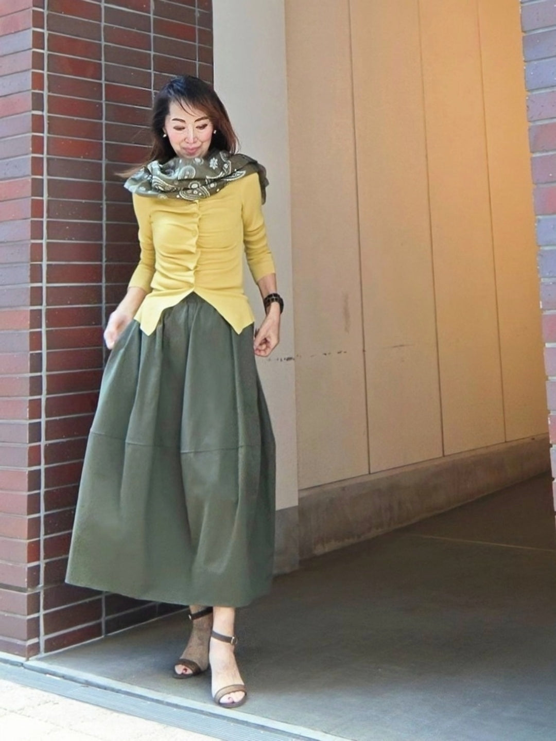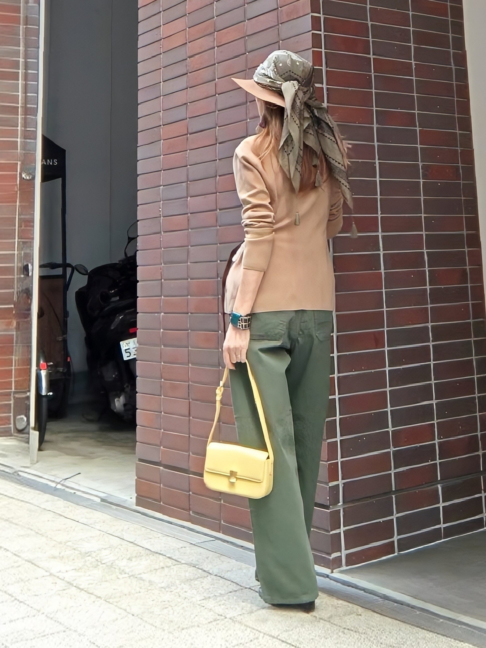 カーキカラーも素敵で何気なく手に持つだけで雰囲気が出るスカーフです♡