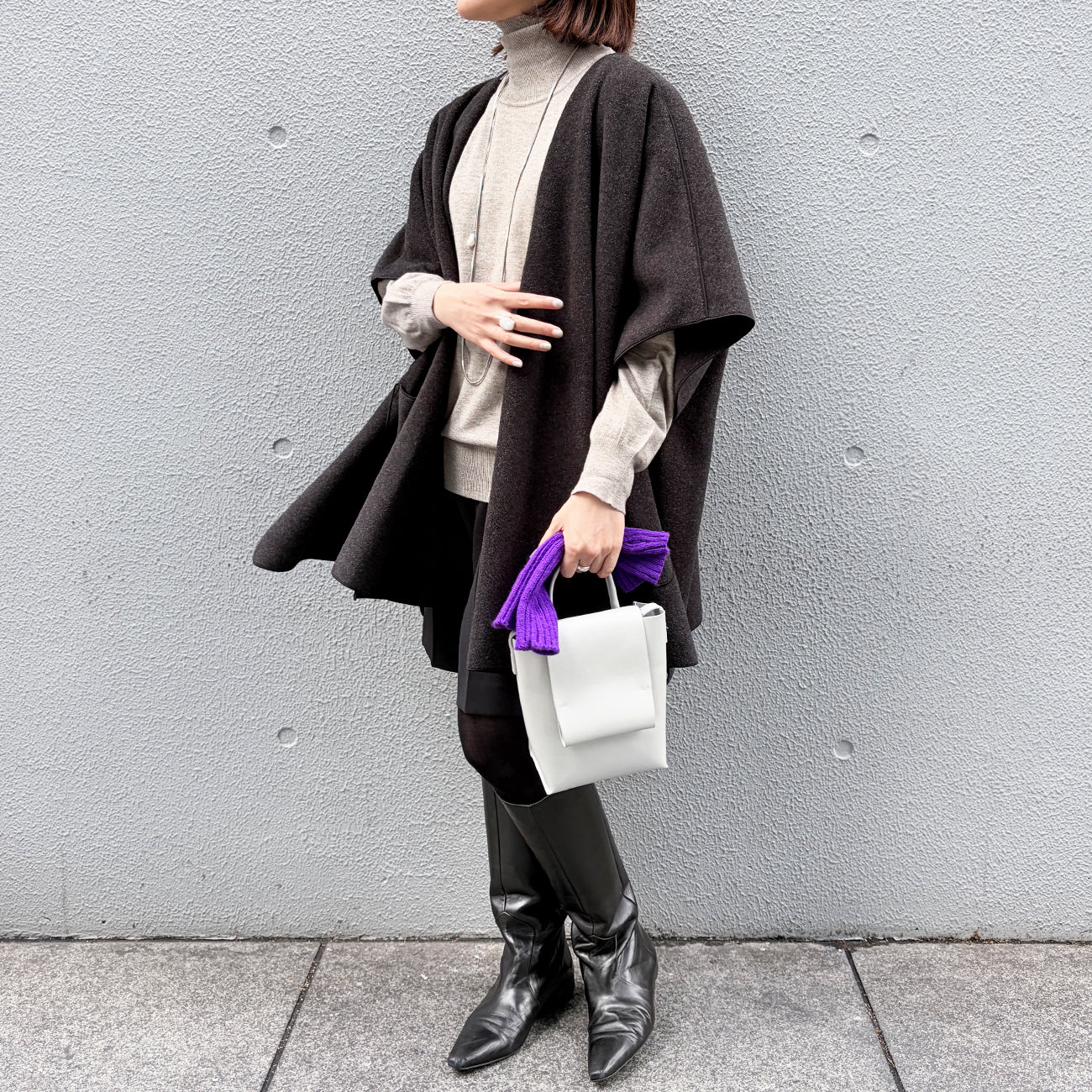 ロングブーツやショートブーツを合わせると、秋冬らしいバランスの取れた着こなしがおすすめです。