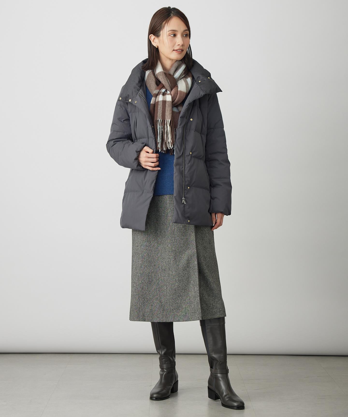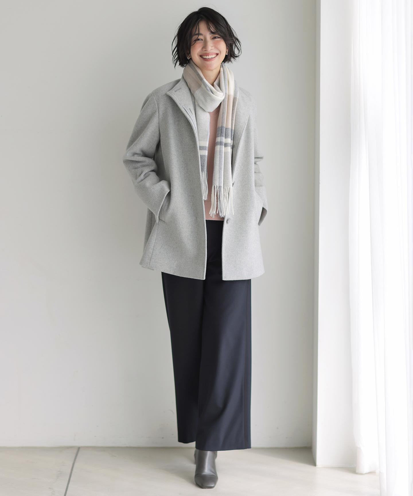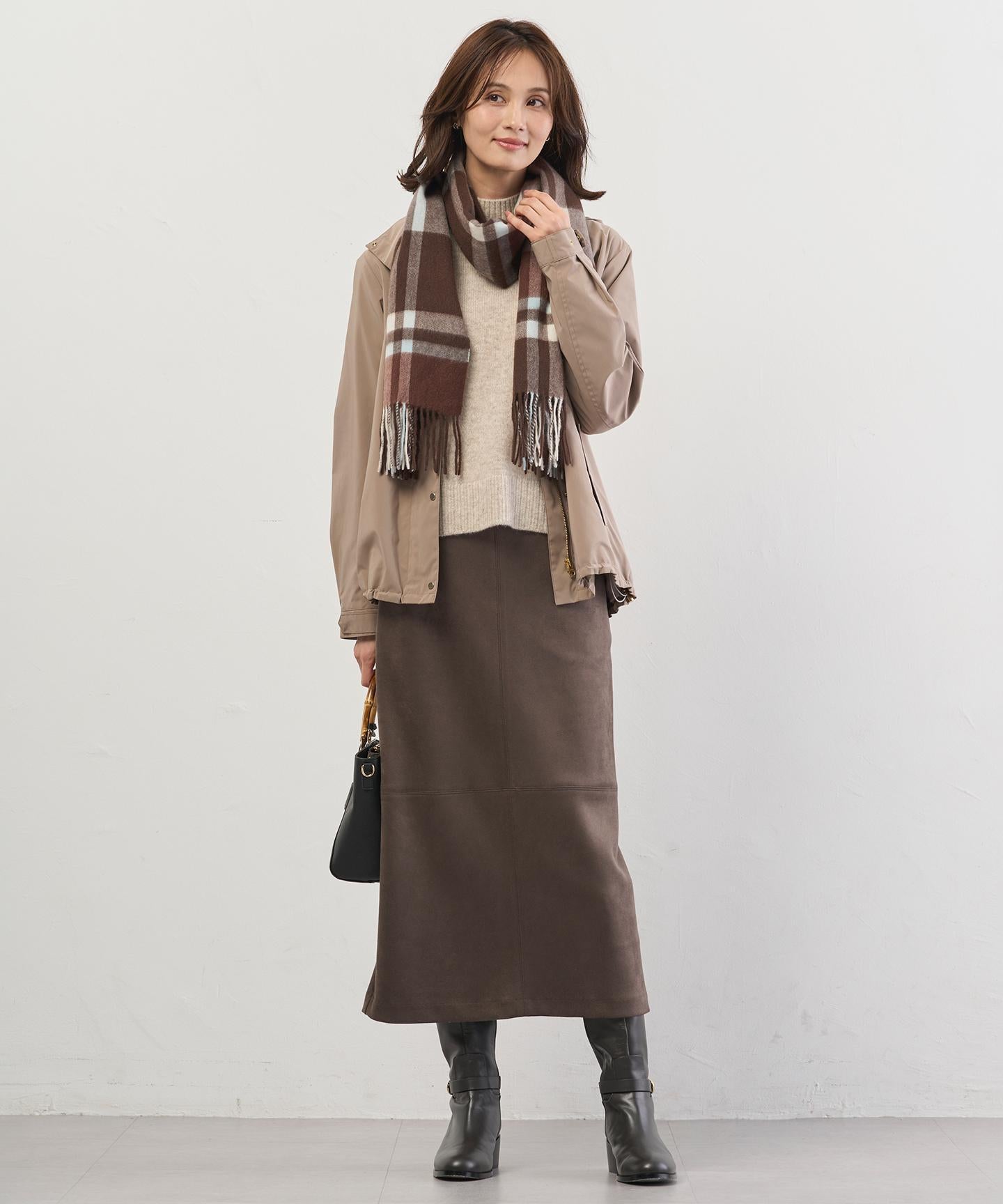 オフとグレー系をベースに、ライトイエローを差し色にした大人なイエローチェック。オフ×ライトグレーが基調なので落ち着いた上品さがあり、顔映りを明るくします。エレガントな装いや明るいカラーのコートとの相性抜群です。