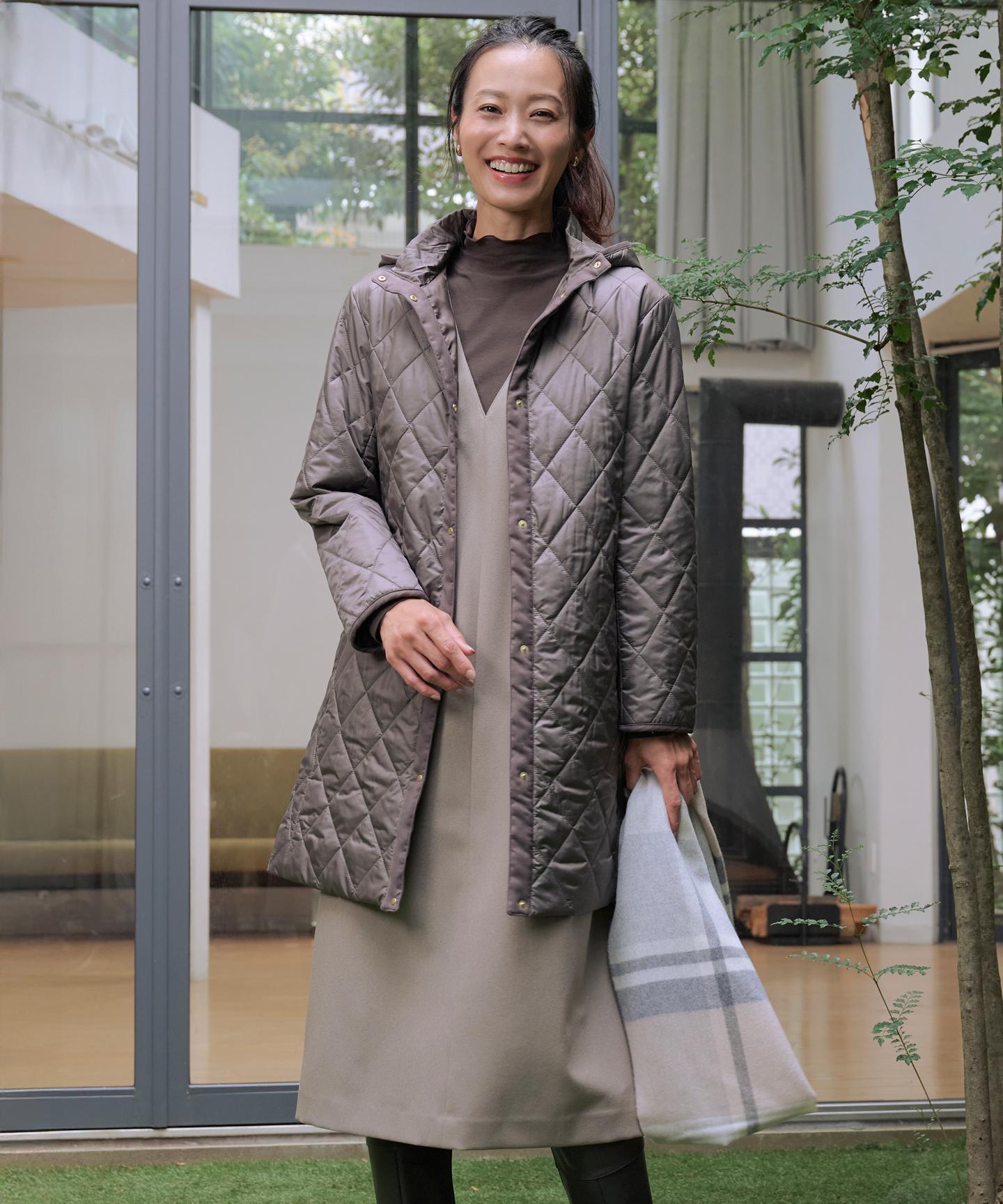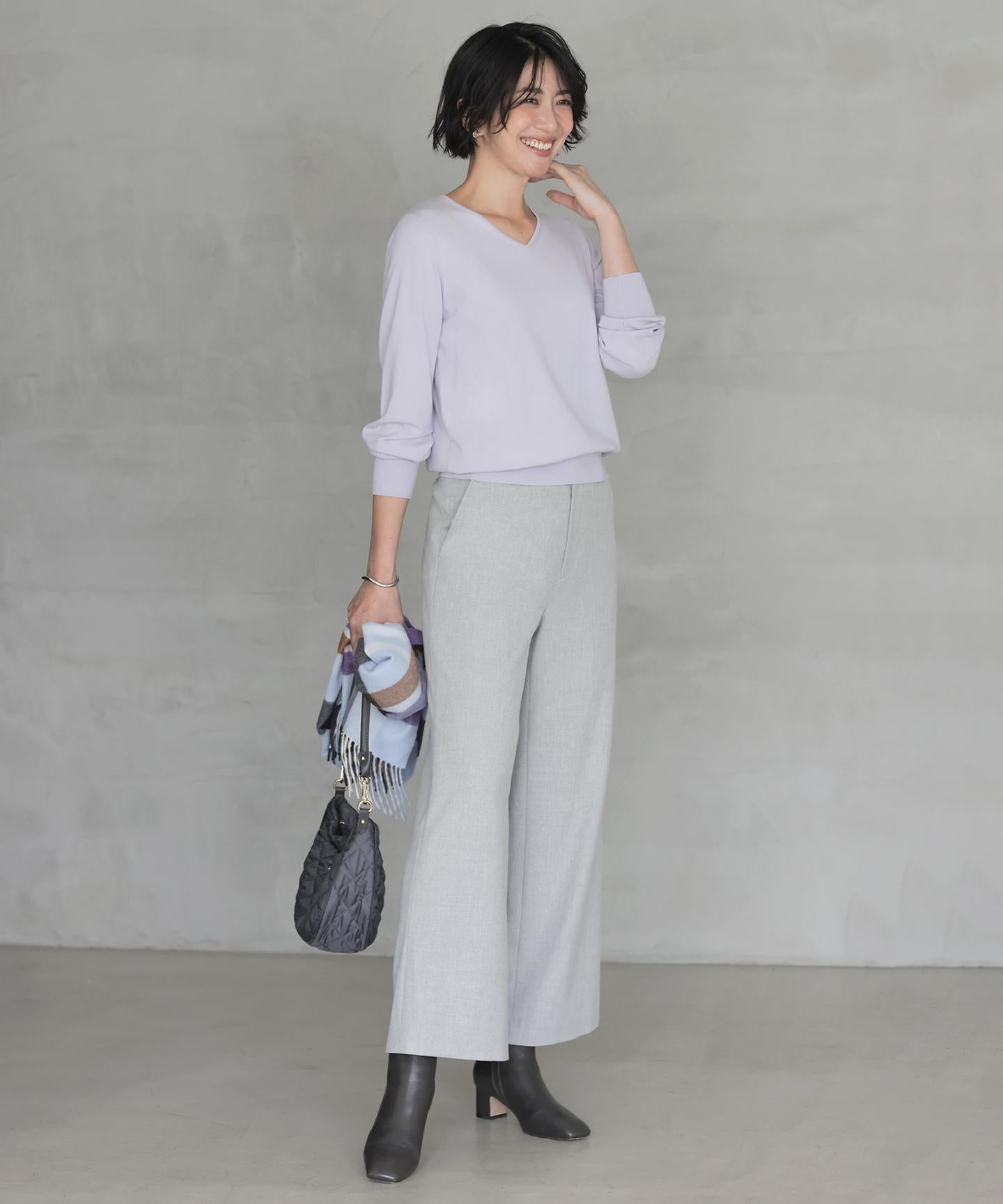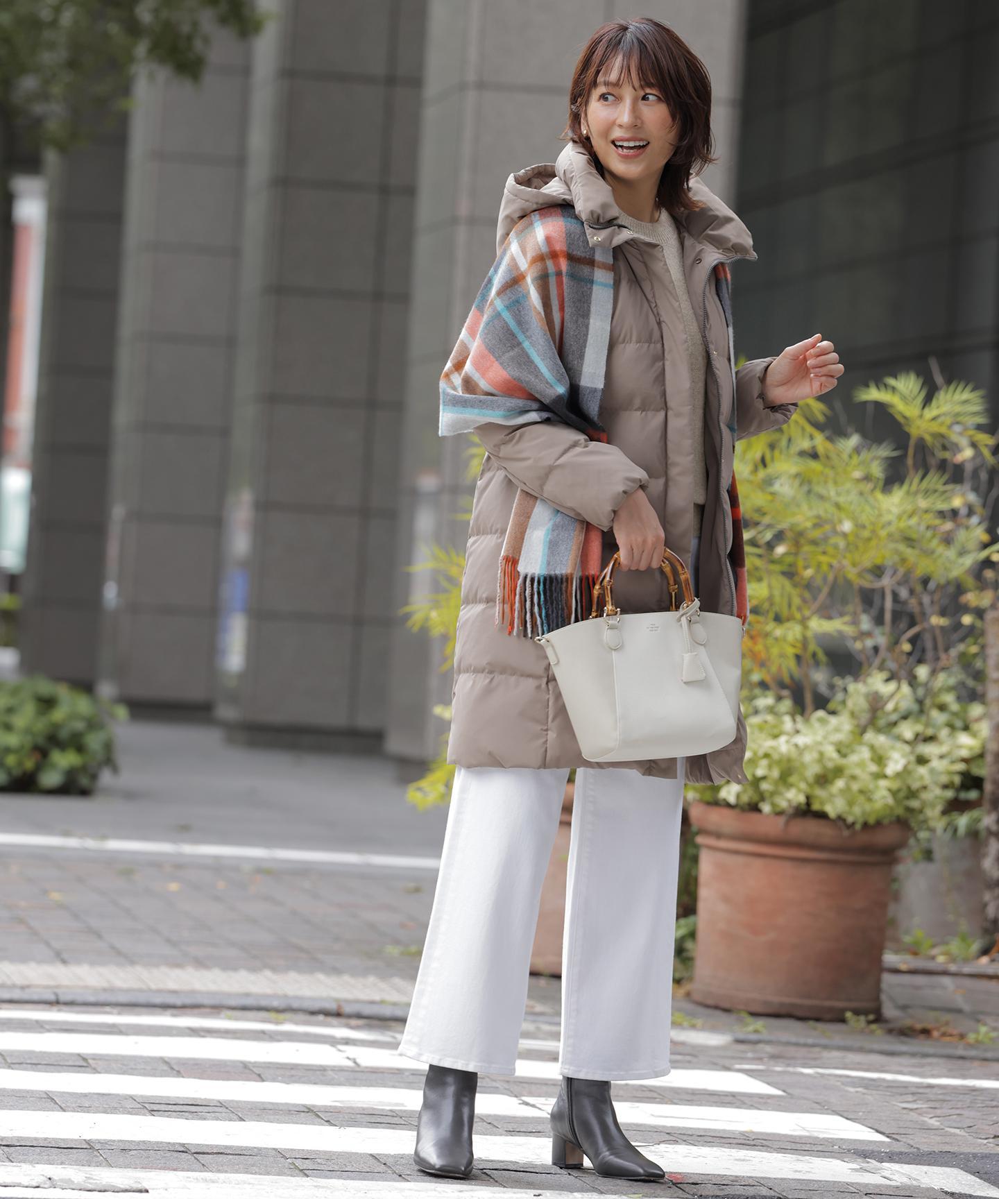 オフとグレー系をベースに、ライトイエローを差し色にした大人なイエローチェック。オフ×ライトグレーが基調なので落ち着いた上品さがあり、顔映りを明るくします。エレガントな装いや明るいカラーのコートとの相性抜群です。