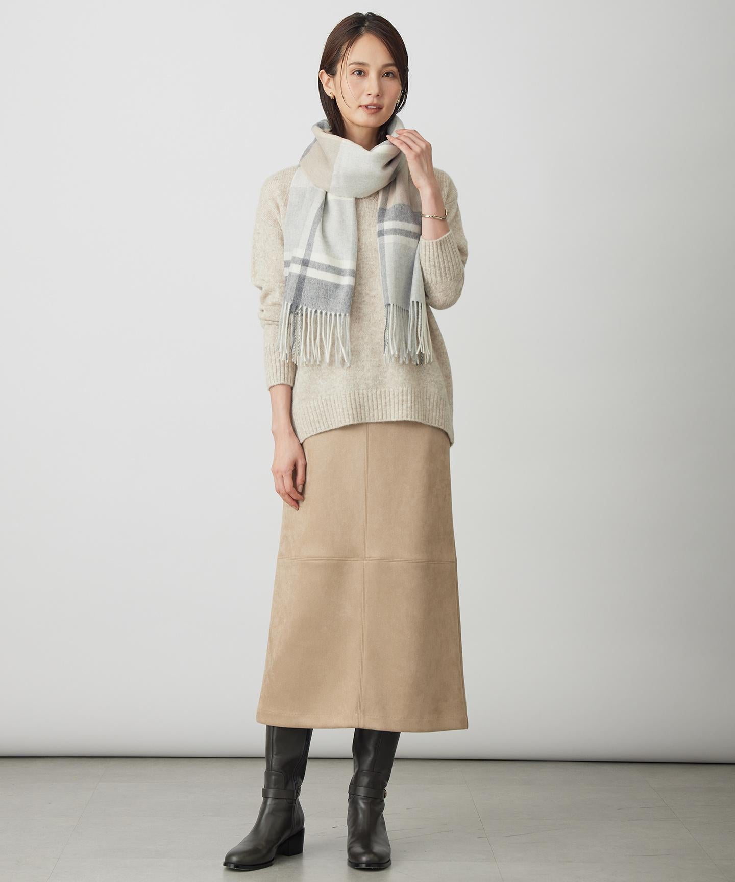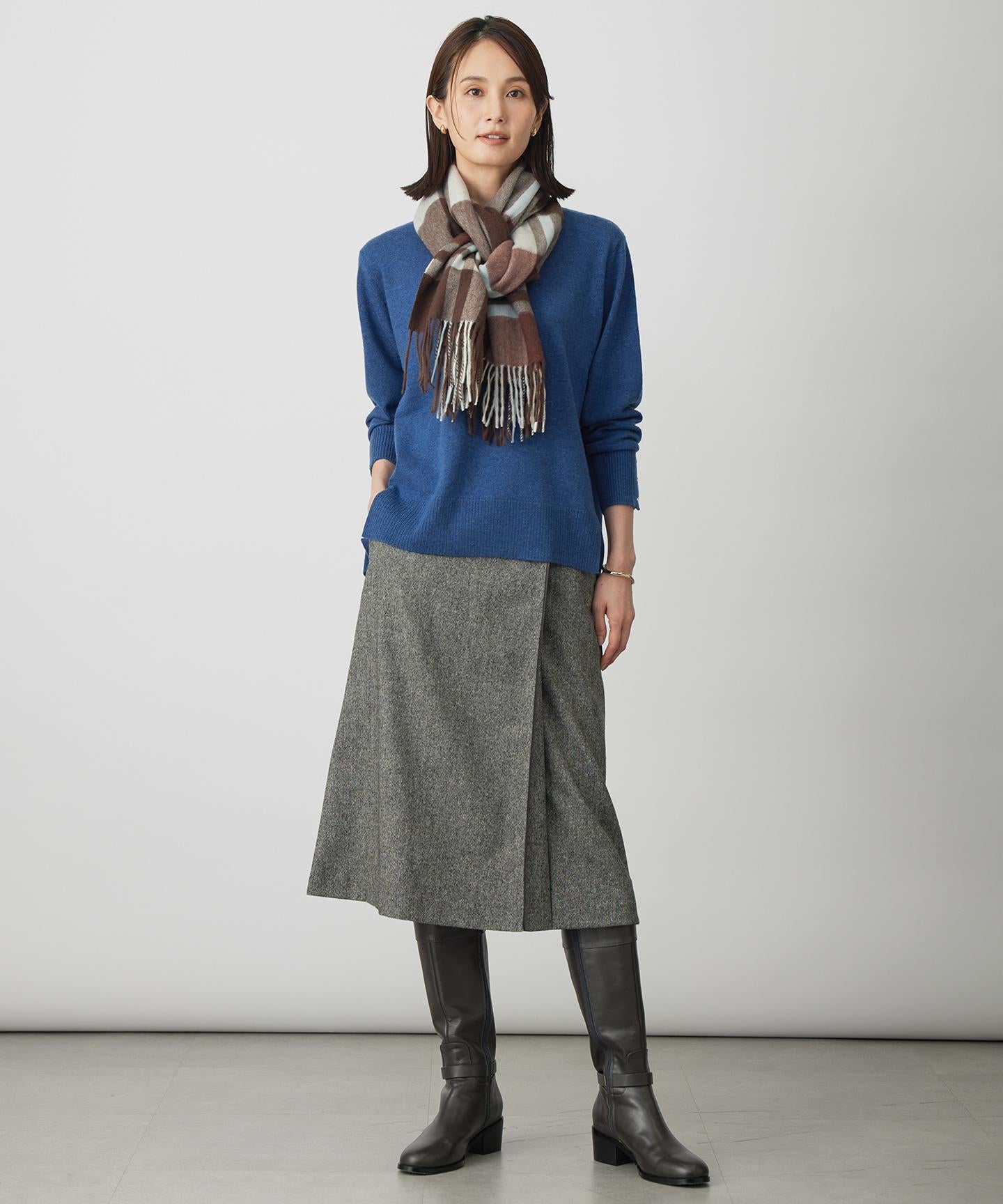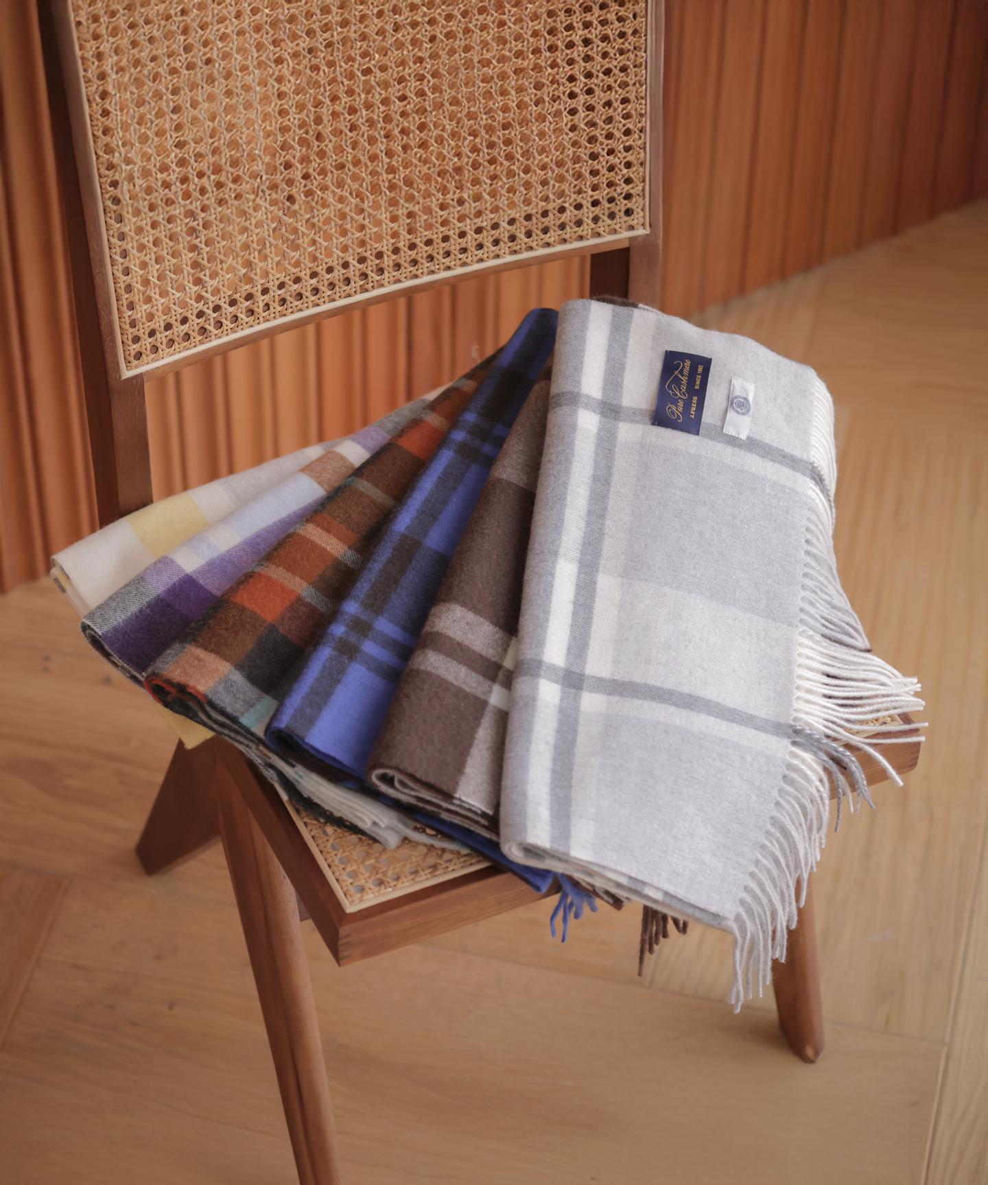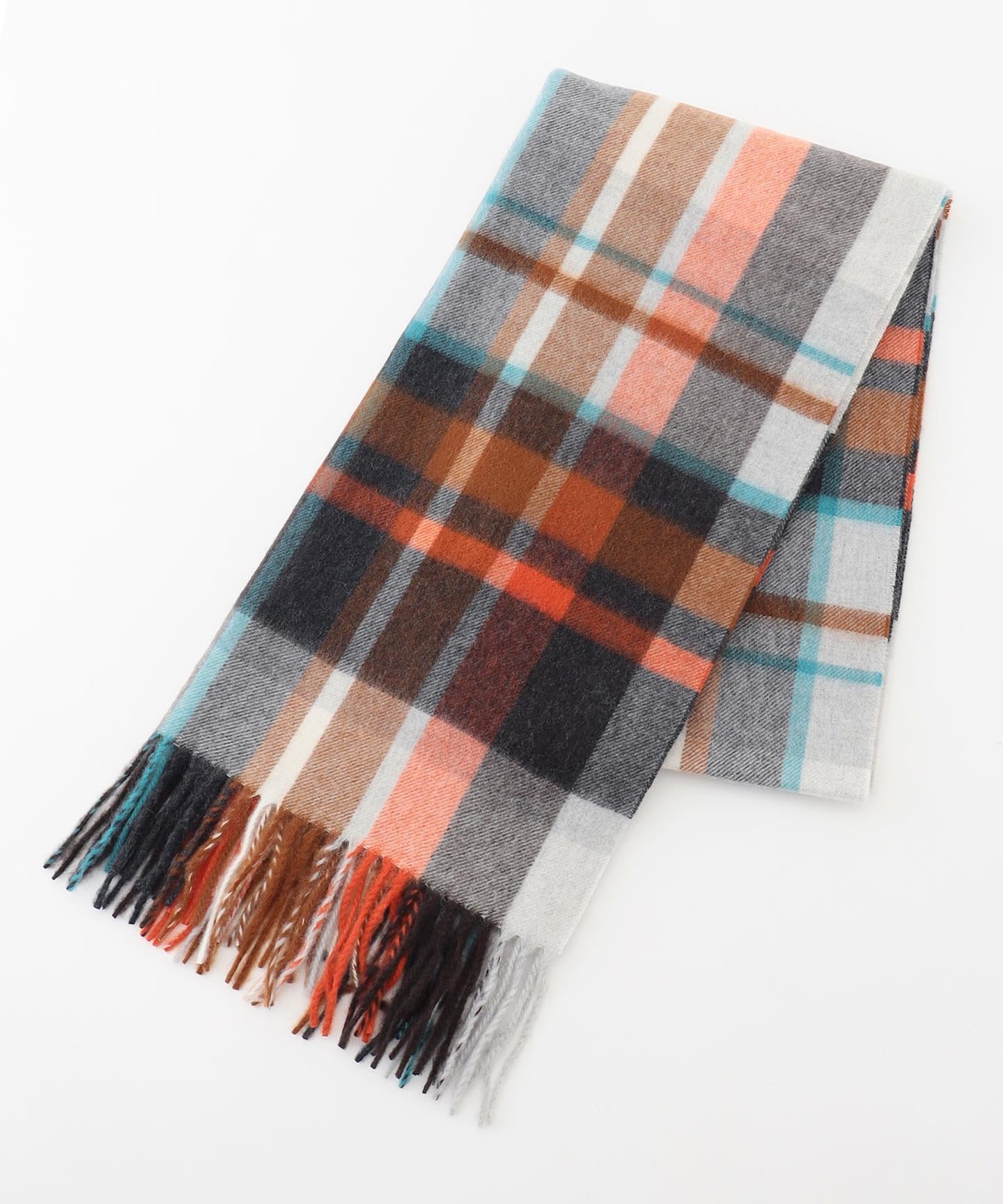 ■デザイン秋冬のコディネートのポイントになるチェックマフラー。今年らしいカラーとオリジナルチェックがスタイリングのポイントになり、巻くだけでおしゃれ度がアップします。ピュアカシミヤ100%の柔らかく上質な肌触りが魅力で、着け心地の良さも嬉しいポイントです。48cm幅の程よいサイズ感で首元にも巻きやすく、ストールとしてもお使いいただけます。他にはない完全オリジナルチェックの全6色展開で、きれいめからカジュアルなスタイリングまで幅広くお使い頂けます。カラーにより全く違った印象になりますので、お色違いでお持ち頂くと気分に合わせてコーディネートをお楽しみいただけます。