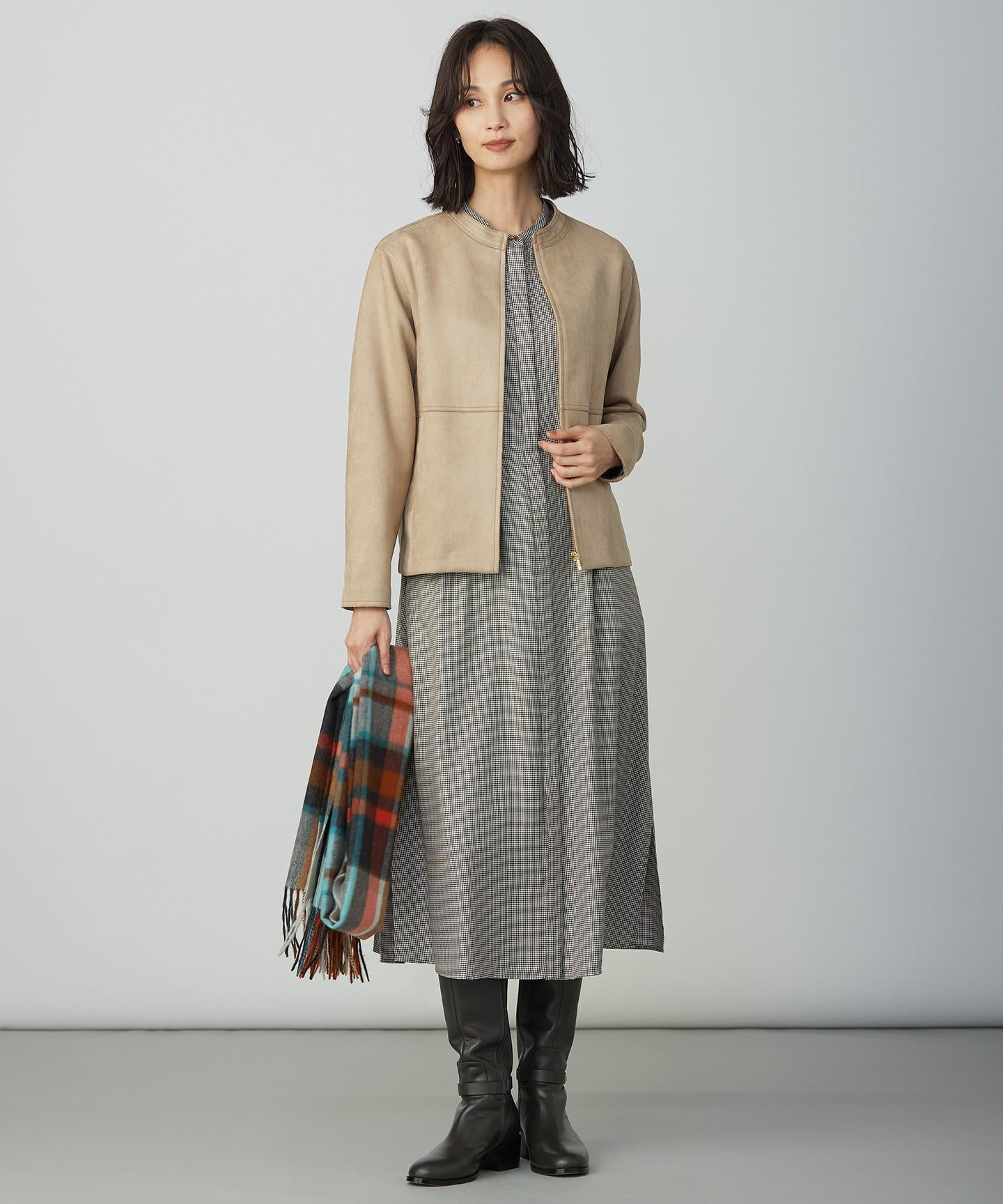 風合いの良いトップグレーとスモーキーモカピンクをコンビネーションした、シンプルで何にでも合わせやすい万能なチェック。大きめのブロックチェックで無地ライクにお使い頂けます。スモーキーモカピンクが女性らしい印象に。