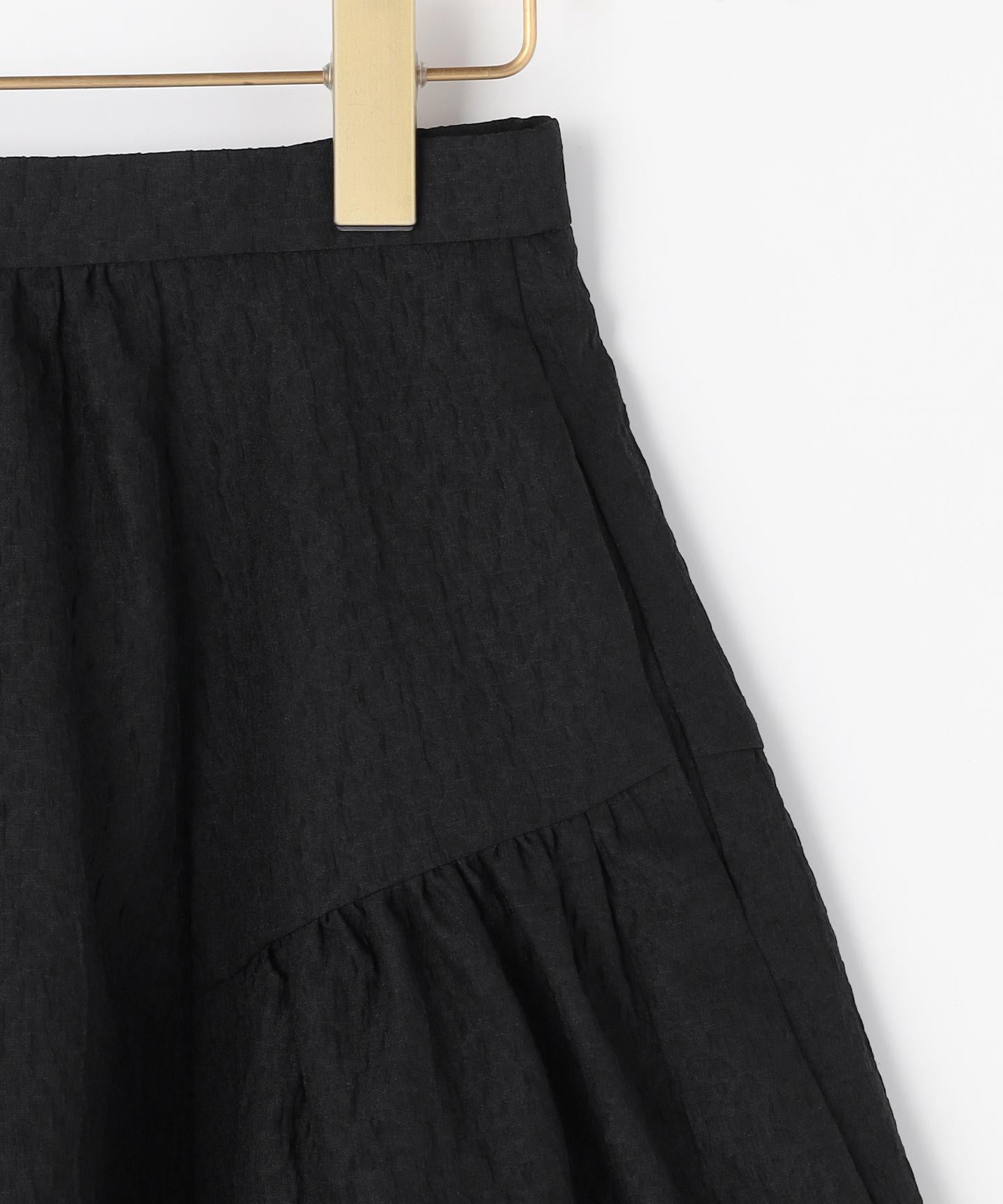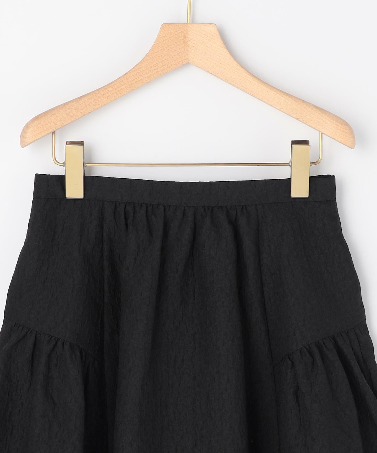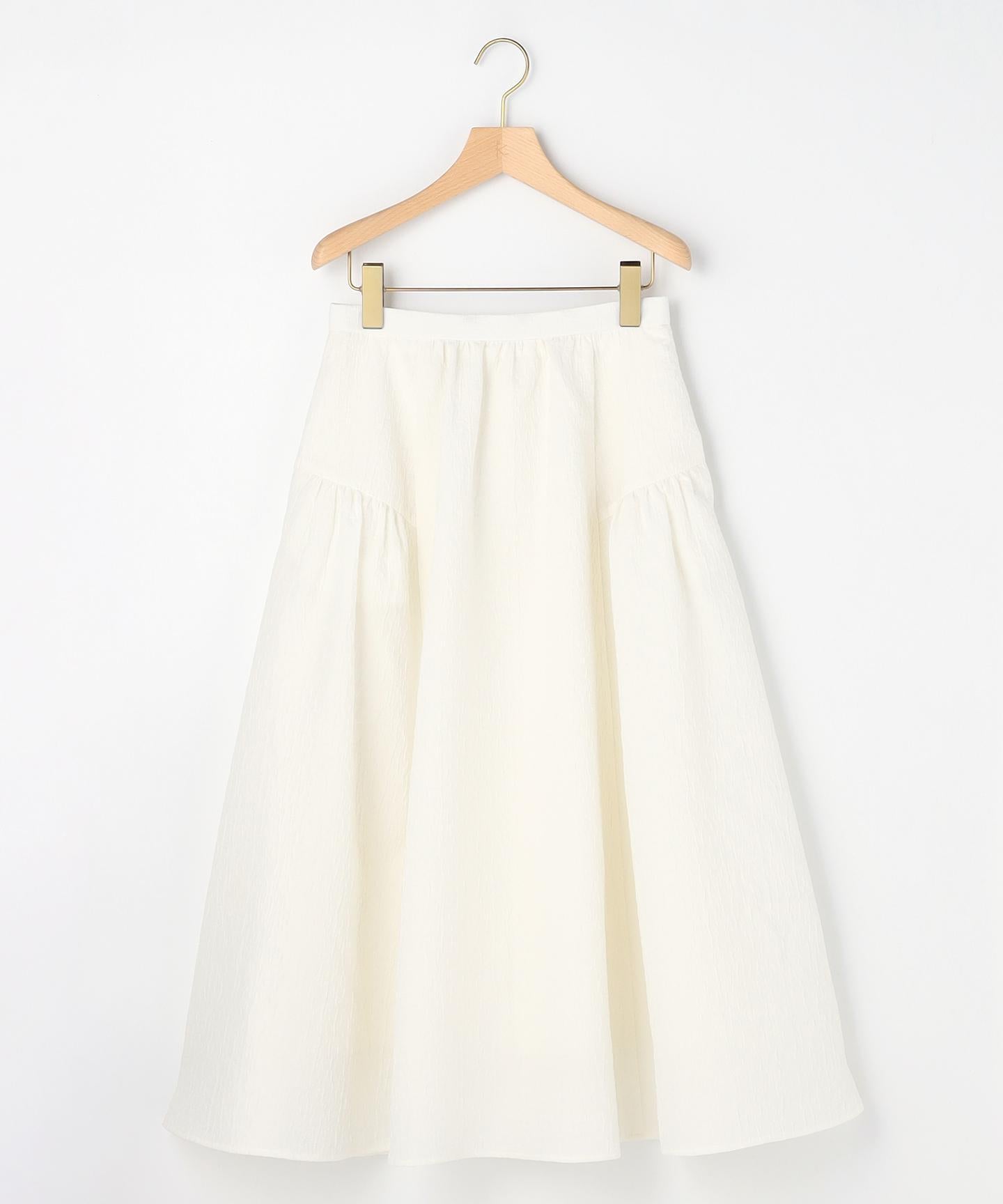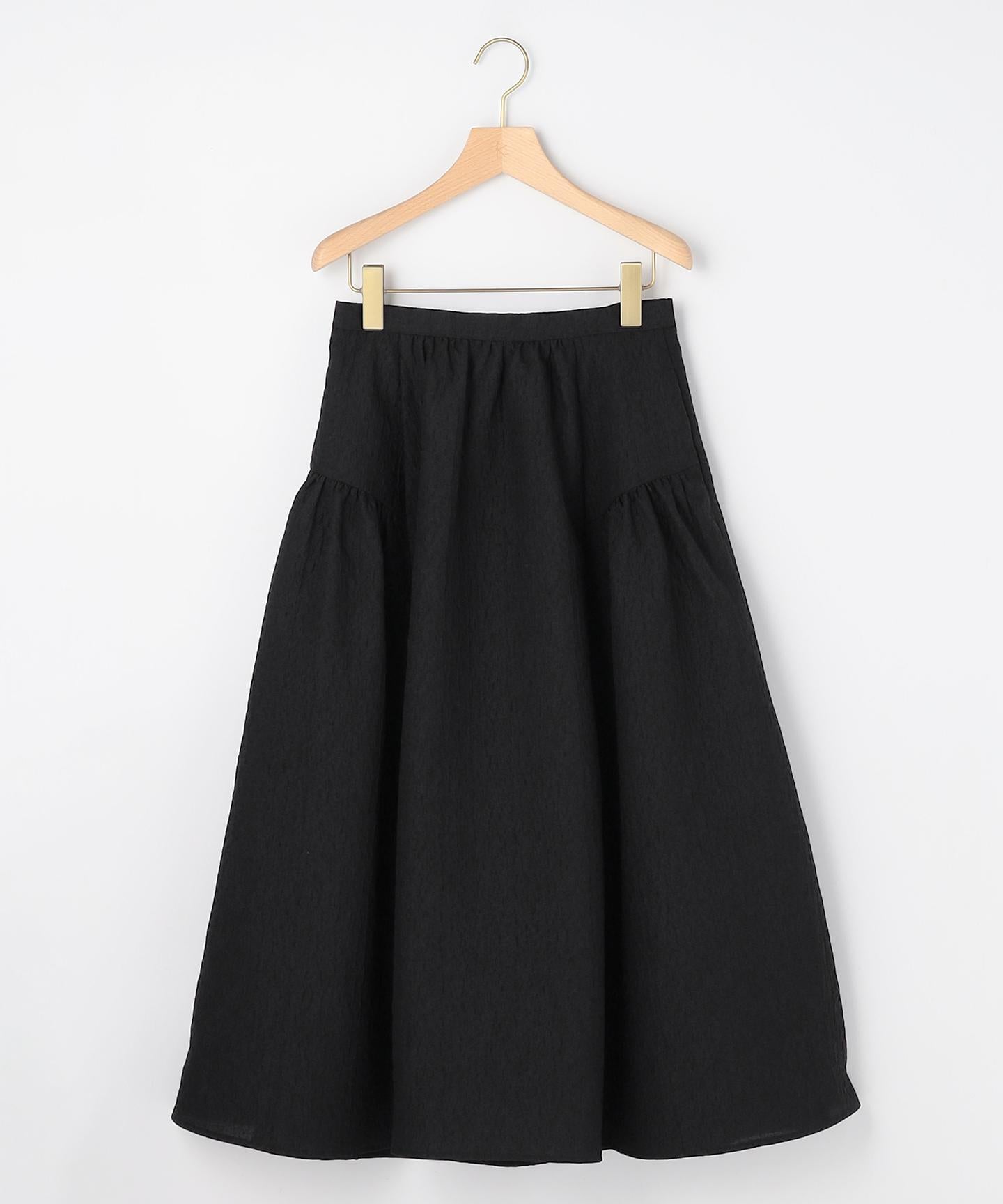 ■デザイン・切り替えギャザーデザインがアクセントになったふんわりとしたボリュームあるスカートです。・凹凸感あるジャカードの表情がトレンド感を増し、甘くなりすぎない大人な印象です。・後ウエストゴム使用でお腹回りも楽に着こなせます。・上品にもカジュアルにも着まわせるトレンドライクなスカートです。